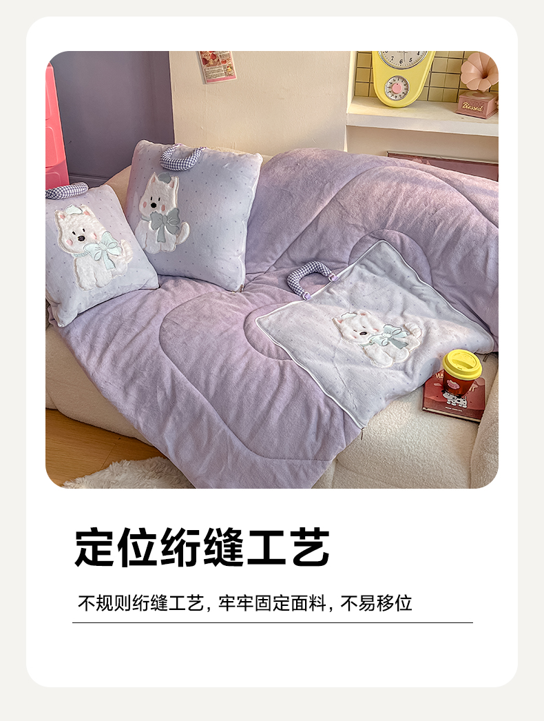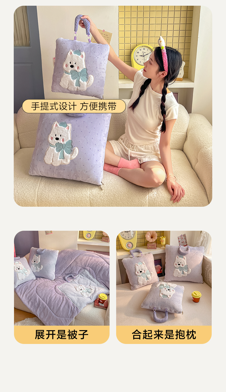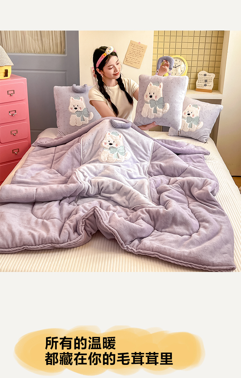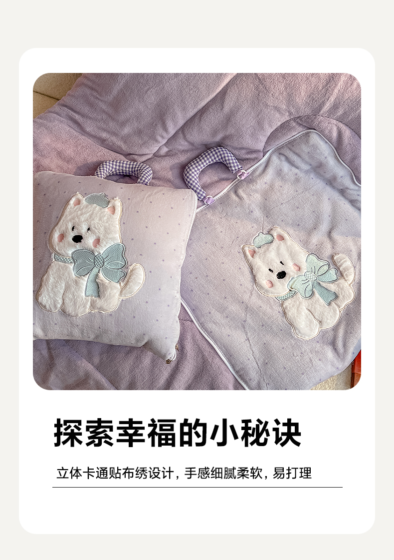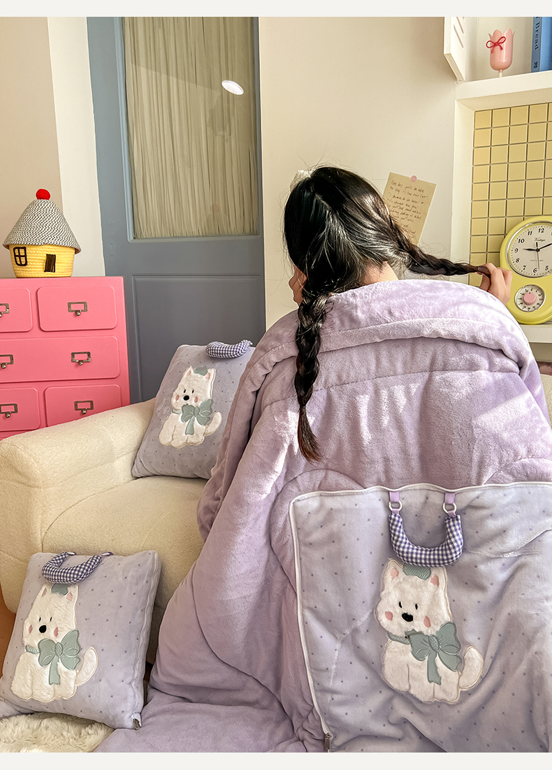 商品名称:番茄+ 2025新款牛奶绒贴布绣西高地抱枕被 波点-紫