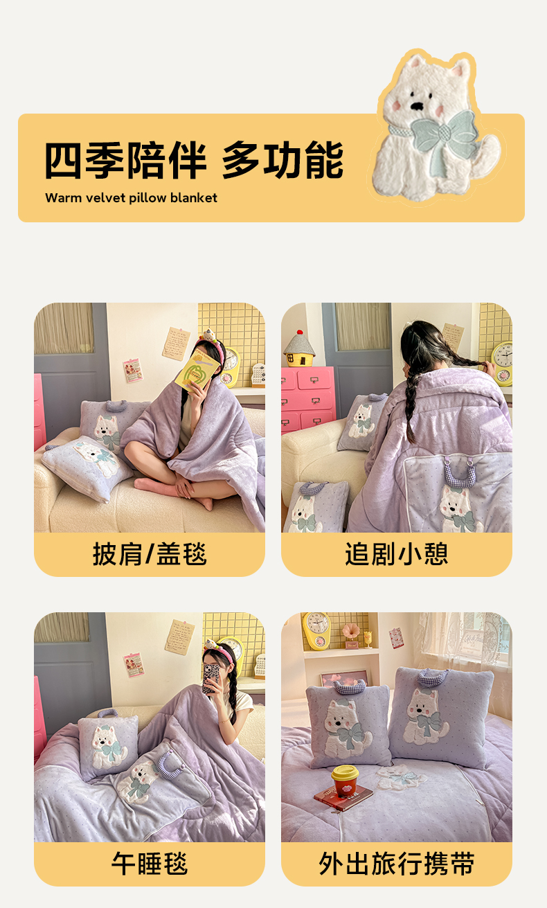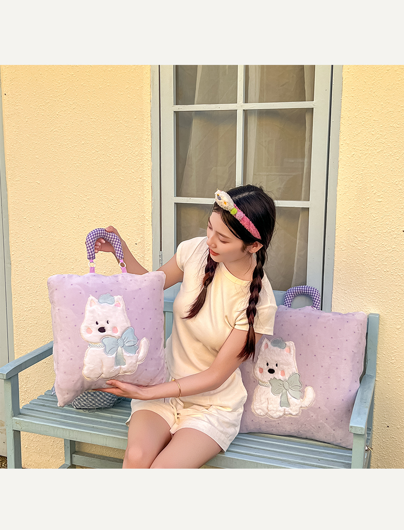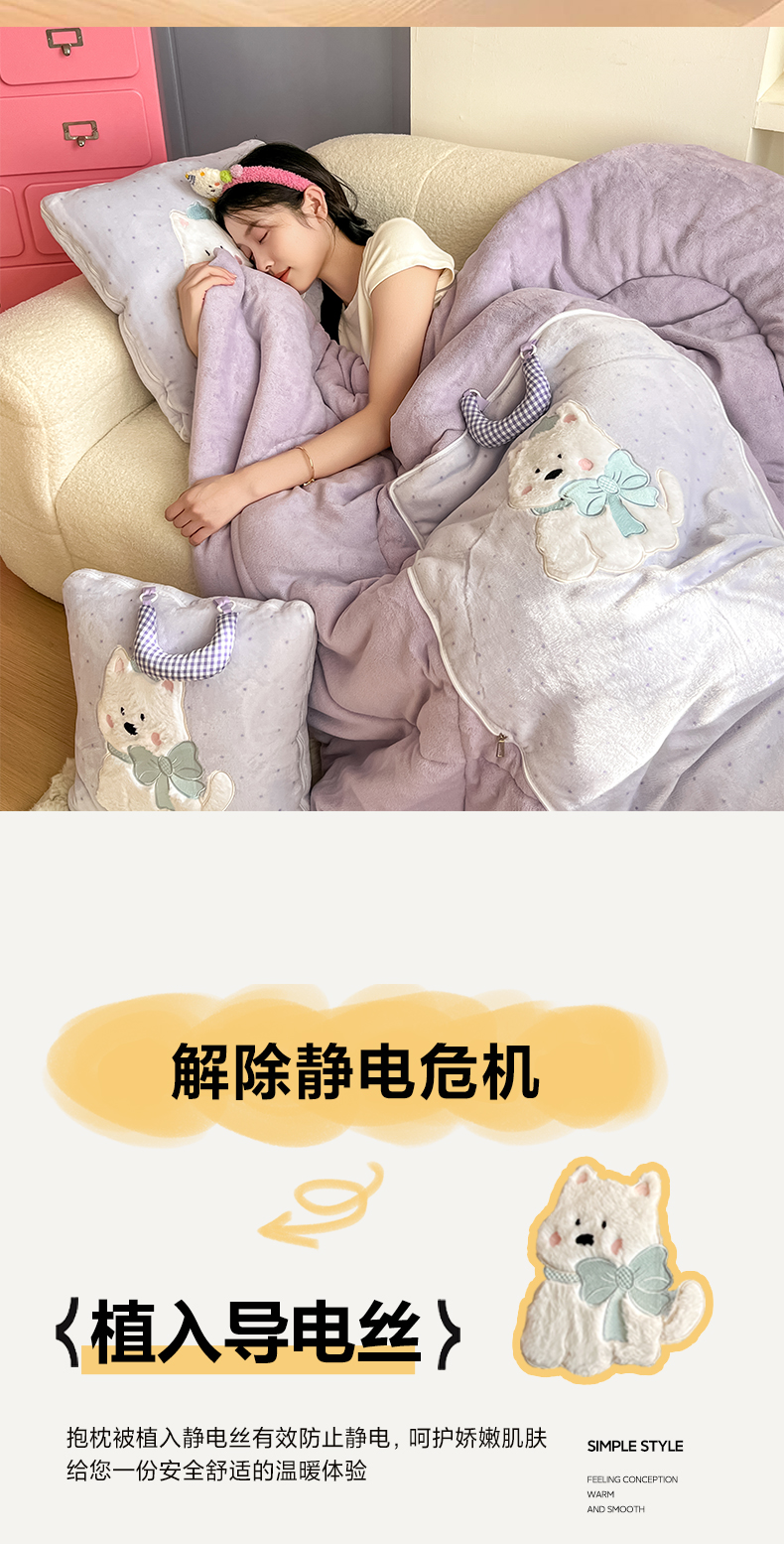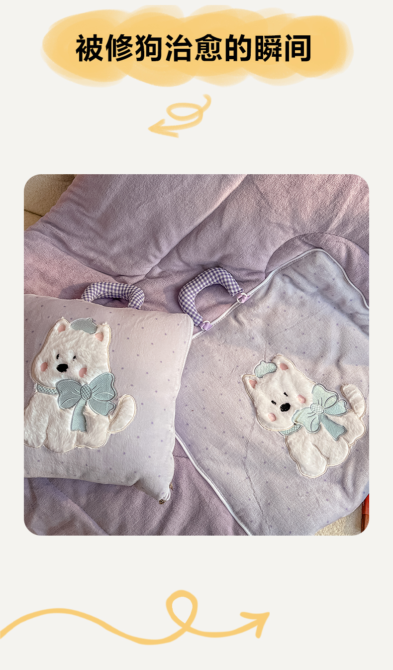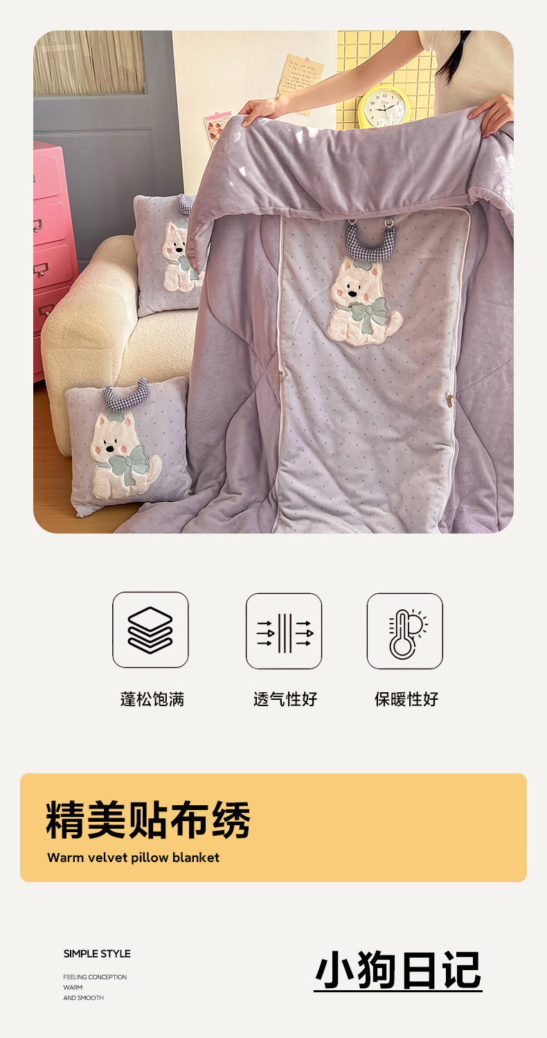 商品名称:番茄+ 2025新款牛奶绒贴布绣西高地抱枕被 波点-紫