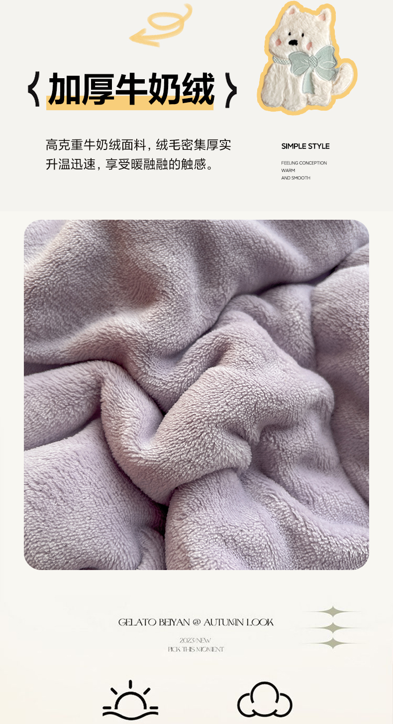 番茄+ 2025新款牛奶绒贴布绣西高地抱枕被 波点-紫