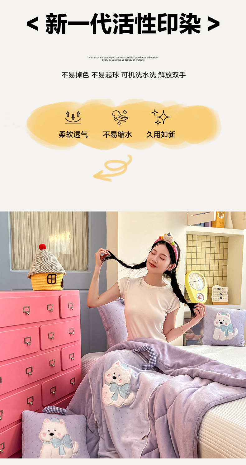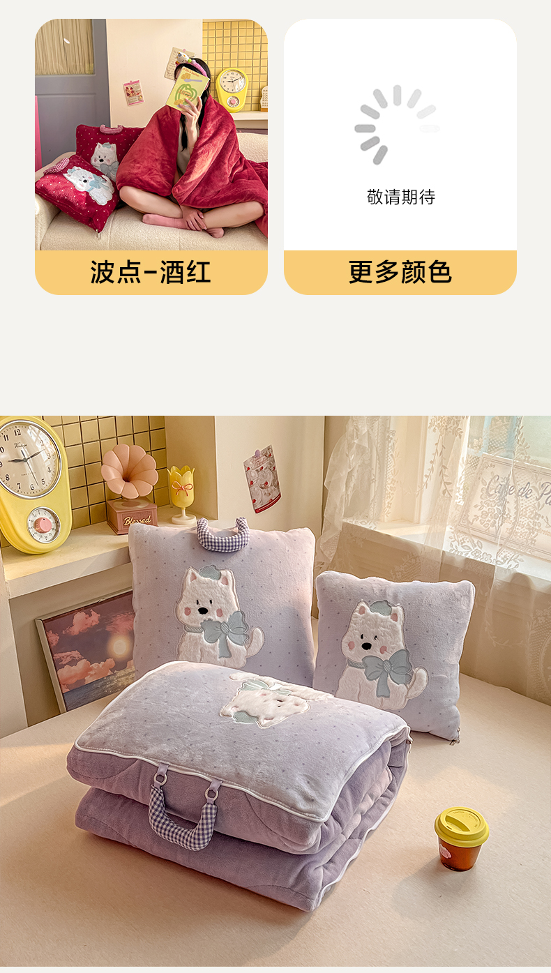 (总)番茄+ 2025新款牛奶绒贴布绣西高地抱枕被,组合图仅供展示不可下单,波点-粉,波点-酒红,波点-蓝,波点-绿,波点-紫