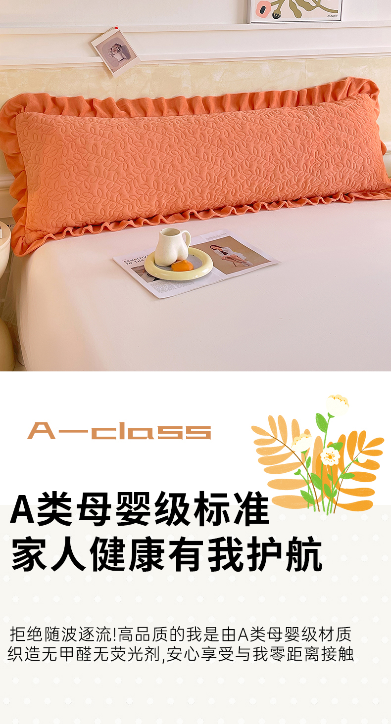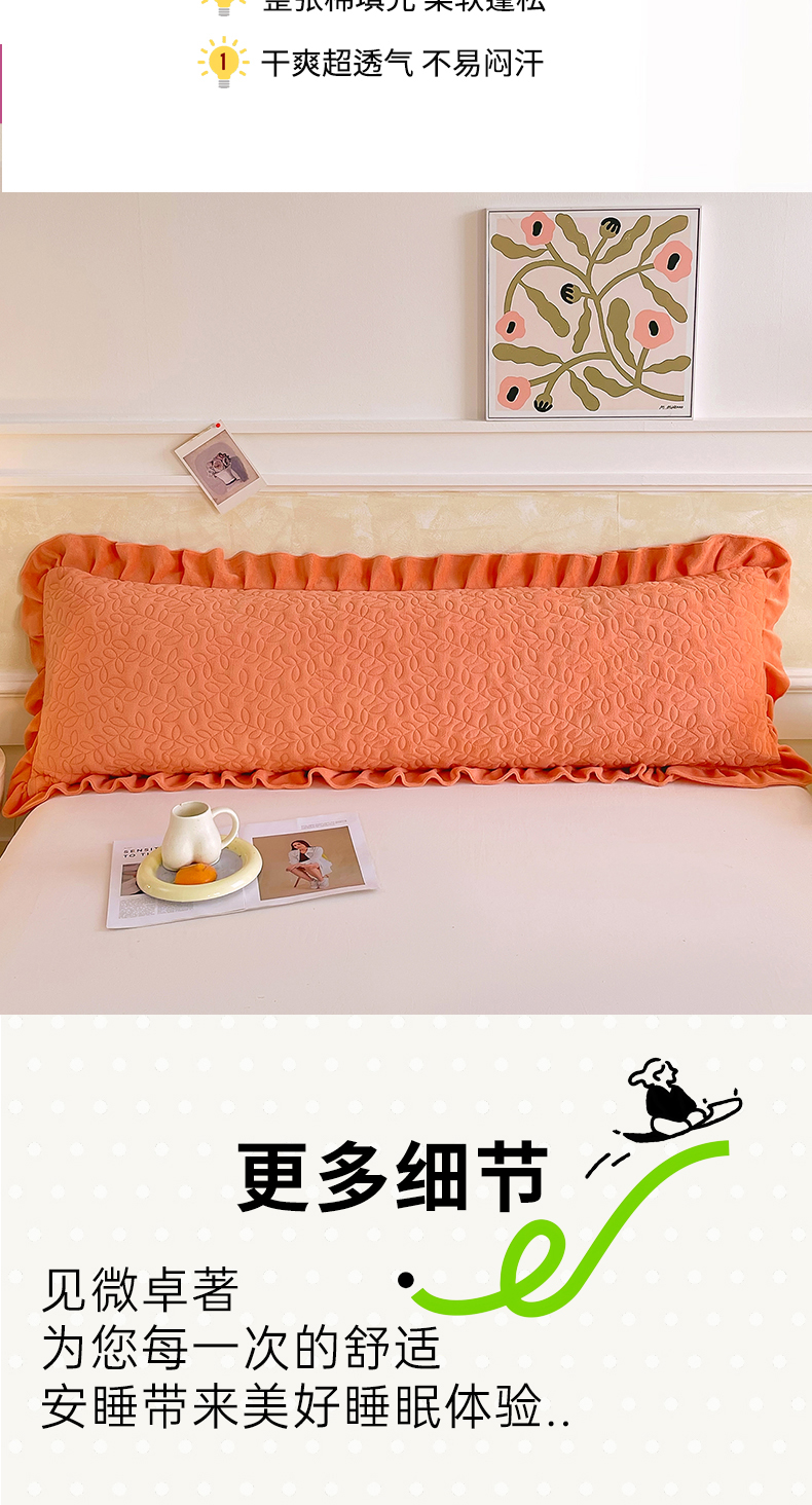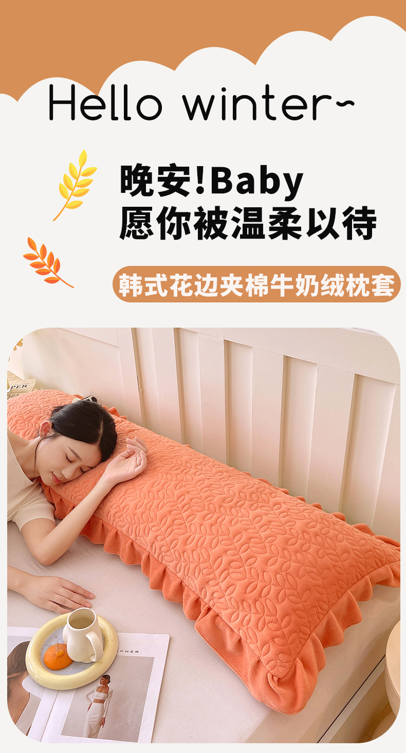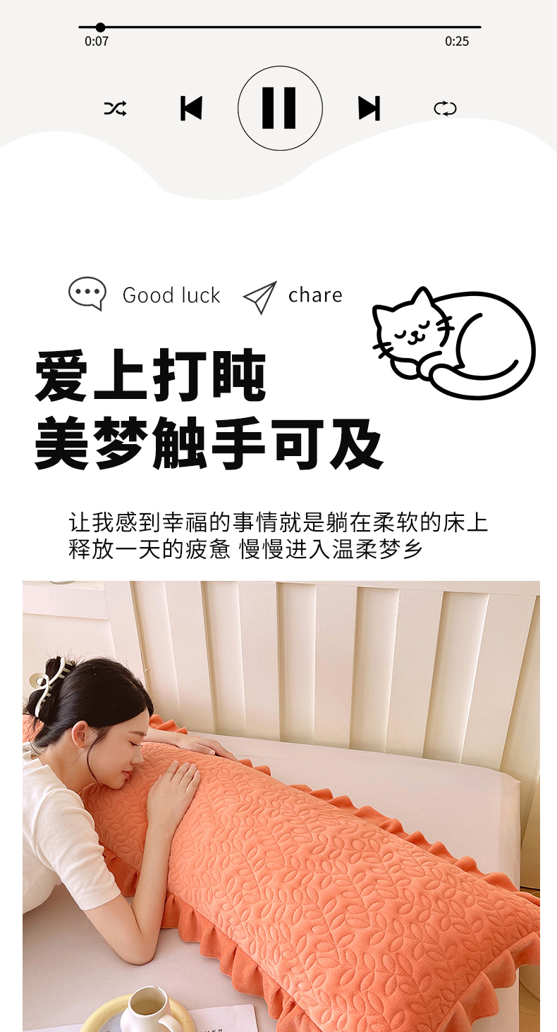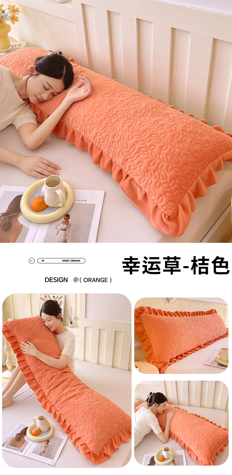 商品名称:雨彤家纺 2025新款牛奶绒花边夹棉长枕套 幸运草-桔色
