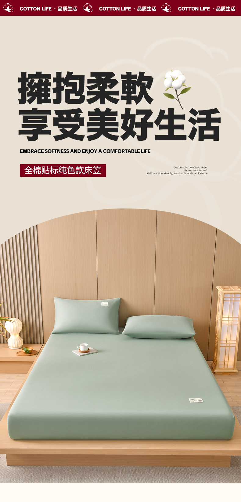 • 91家纺网 家纺一手货源 找家纺 禧合 2025新品外贸跨境电商亚马逊速卖通40支全棉纯棉单床笠欧美尺寸多多跨境平台TEMU SHEIN 果绿