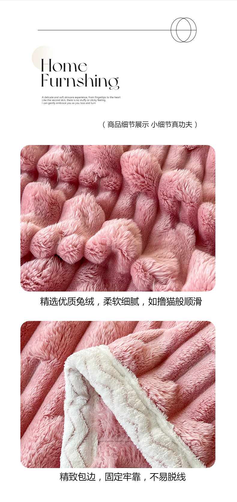 (总)yyds网供 2025新款AB版拼色小香风轻奢立体雕花压花绒毯毛球公主风雪兔绒毯礼品跨境外贸,山茶雕花白拼粉玉,山茶雕花白拼浅灰,山茶雕花白拼清绿,山茶雕花白拼天蓝,山茶雕花白拼香槟,山茶雕花白拼香紫,山茶雕花白拼雪兔
