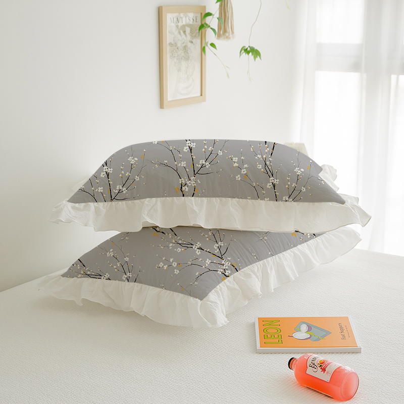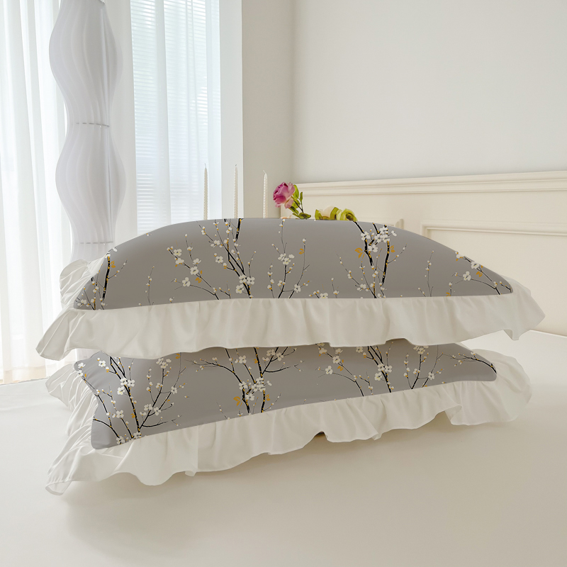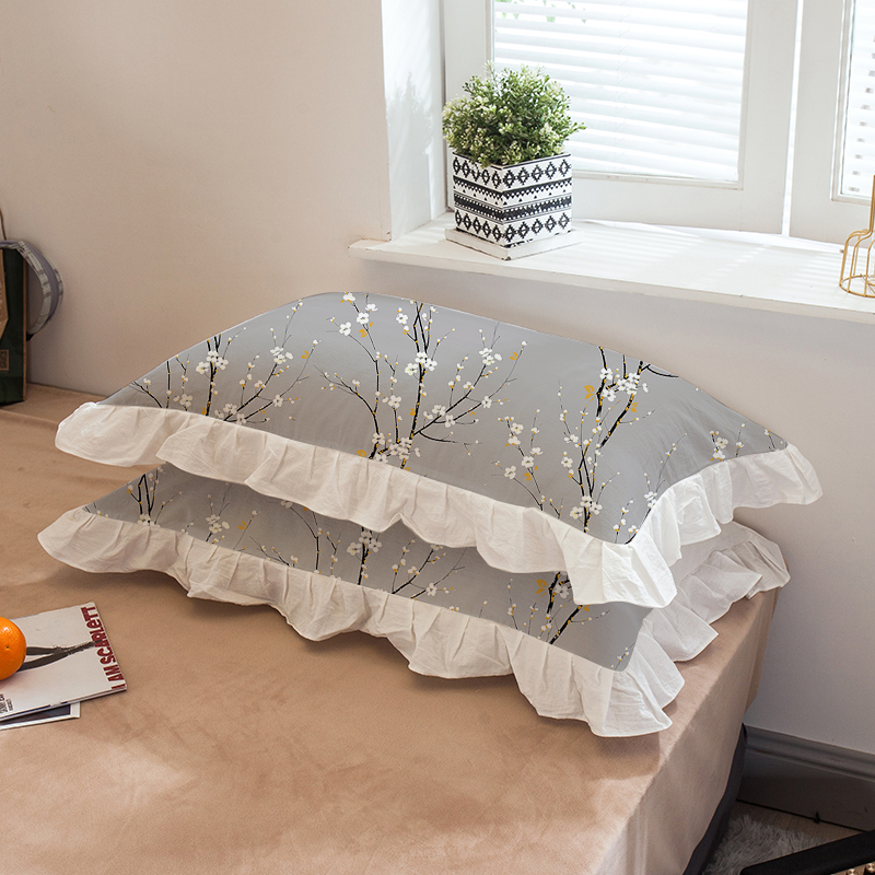 (总)跨境专供 出口美式磨毛印花枕套一对50*75简约工艺款荷叶边枕头套