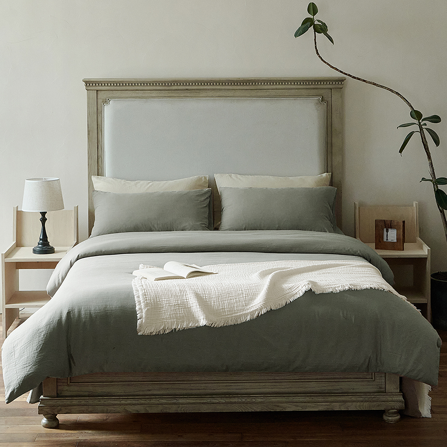 商品名称:子和家居 2025新款80支高密全棉双层纱四件套-云憩 云憩-太空灰