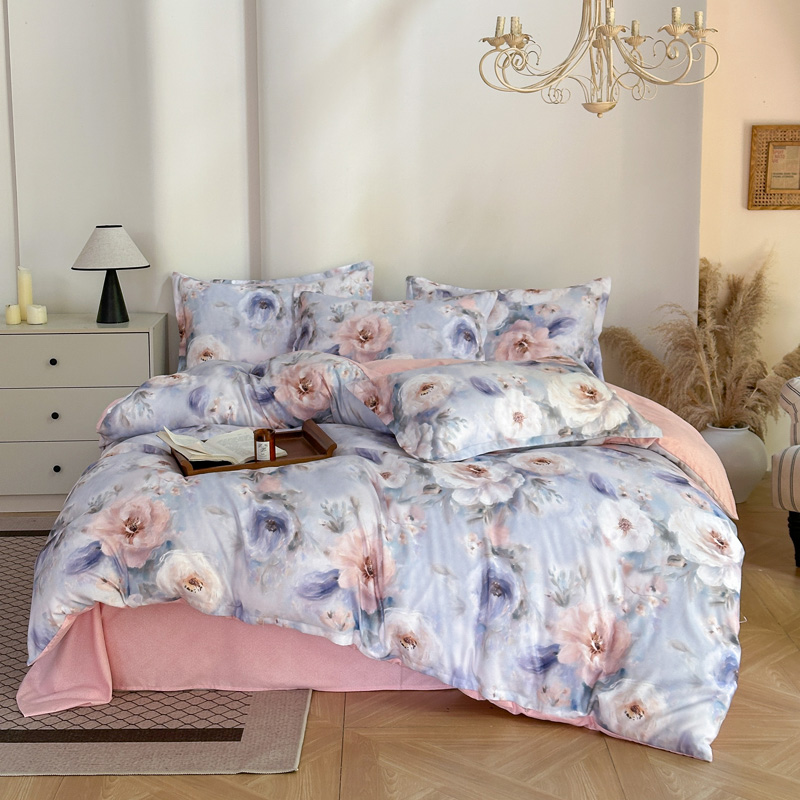 桔禾家纺 2025新款田园花卉小清新直播加厚植物羊绒四件套高克重磨毛跨境四件套 大量现货 繁花春城