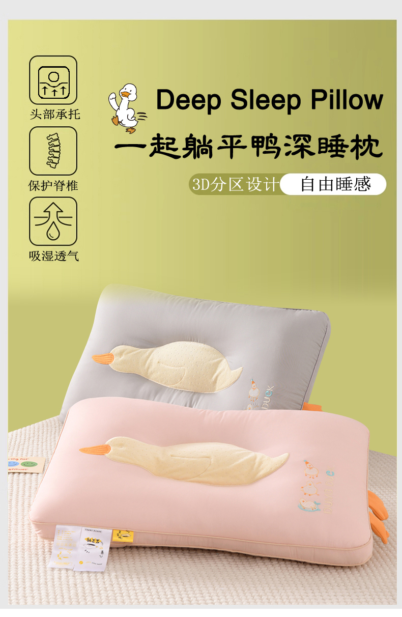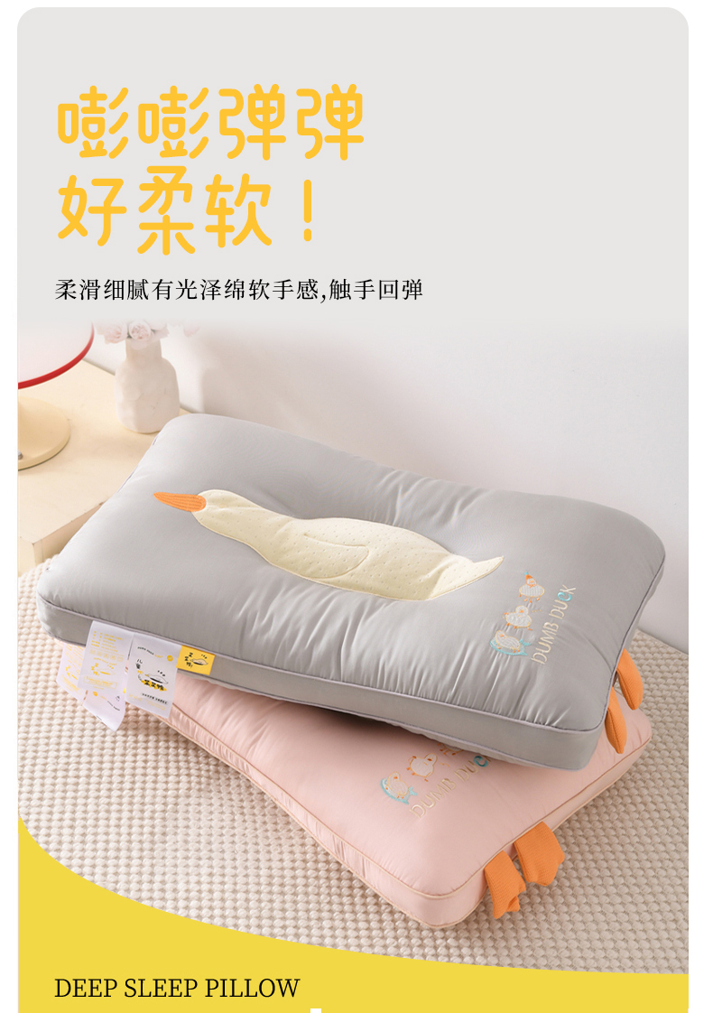 仁宇枕业 2025新款新品可爱儿童成人定型护颈中低枕头枕芯呆呆鸭枕头 呆呆鸭-灰色