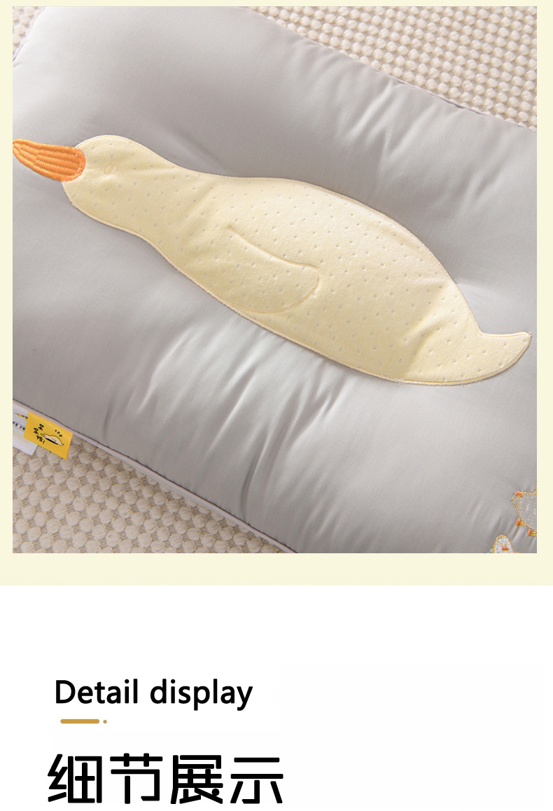 商品名称:仁宇枕业 2025新款新品可爱儿童成人定型护颈中低枕头枕芯呆呆鸭枕头 呆呆鸭-灰色