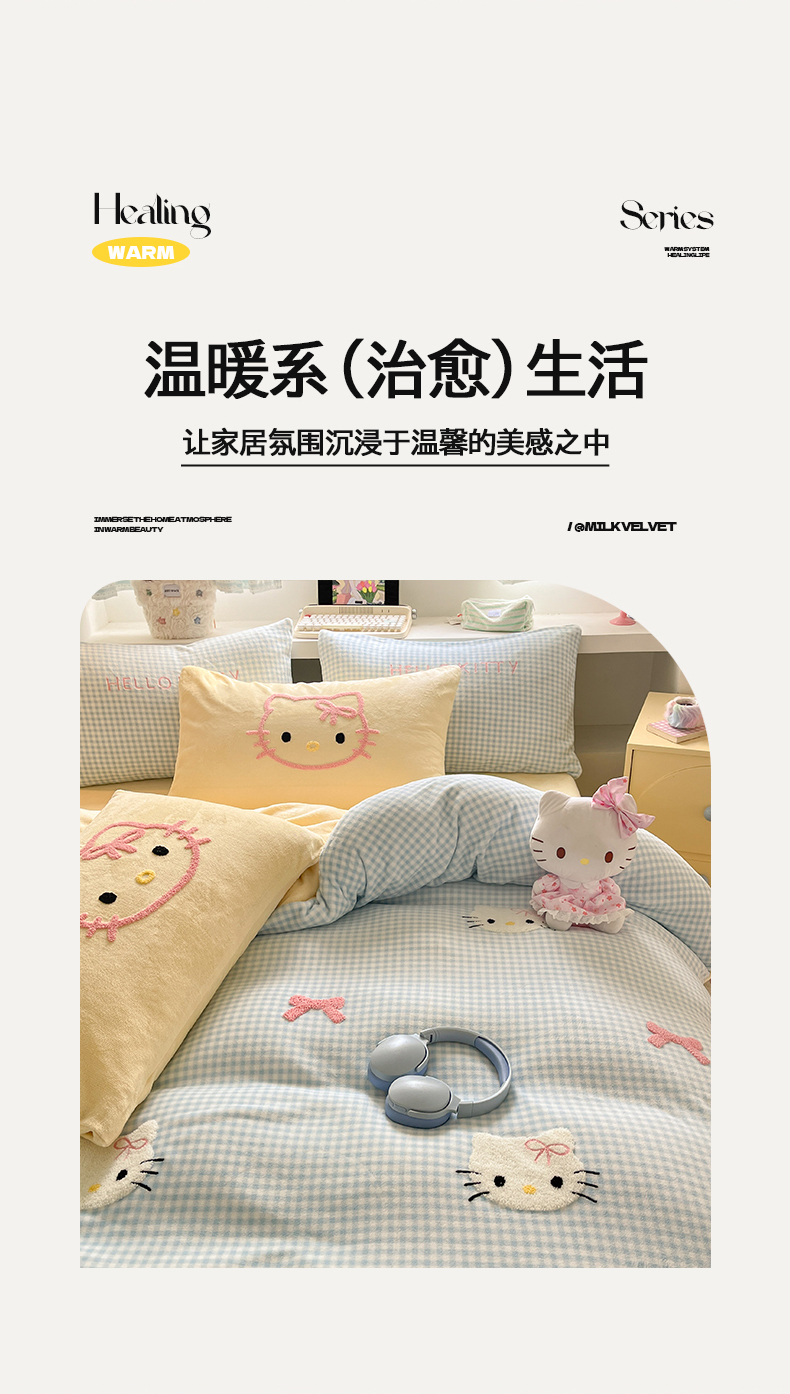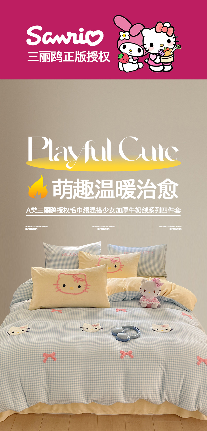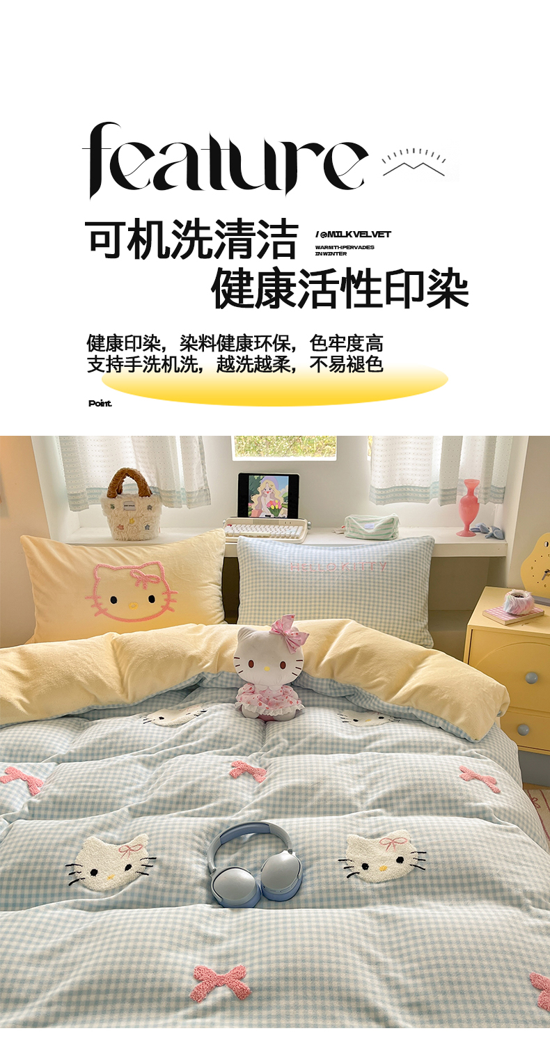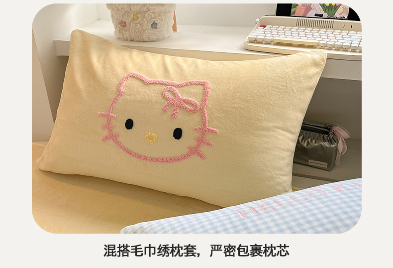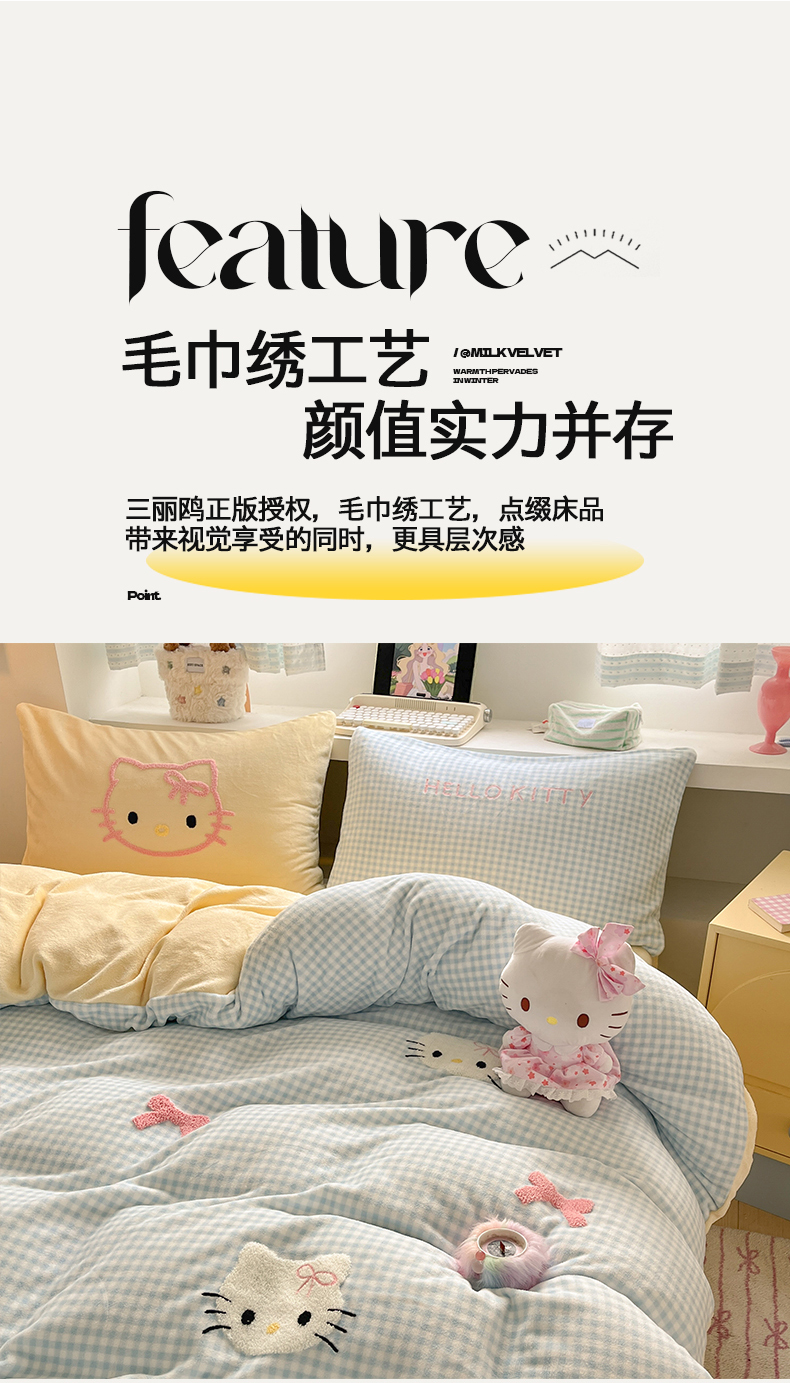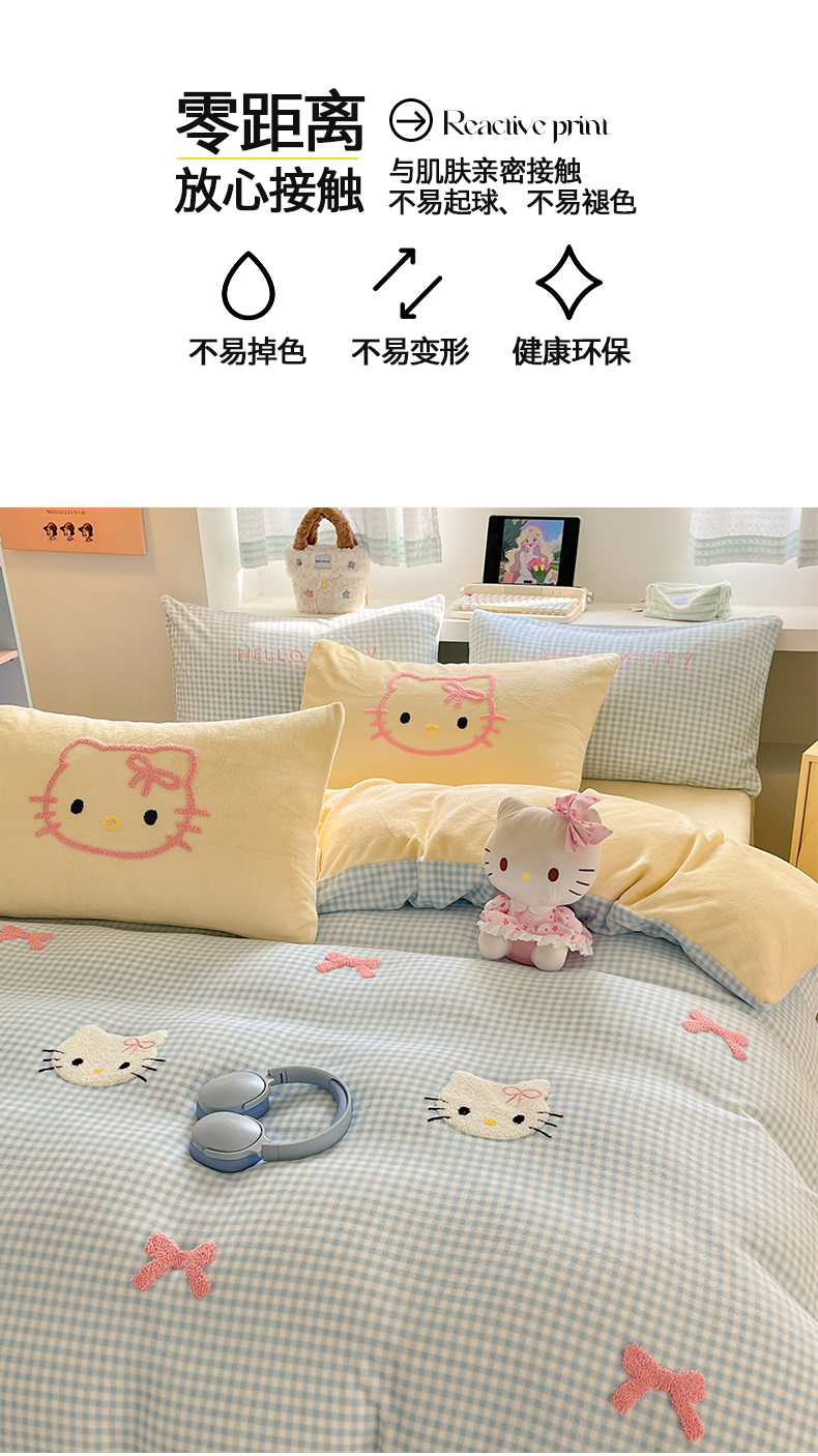 当前位置: 91家纺网 > 商品网购 > 床品套件 > 四件套 > 牛奶绒四件套 > 金爱家 2025新款A类三丽鸥授权毛巾绣混搭少女加厚牛奶绒系列四件套 绒毛巾绣-蝴蝶结KT蓝黄