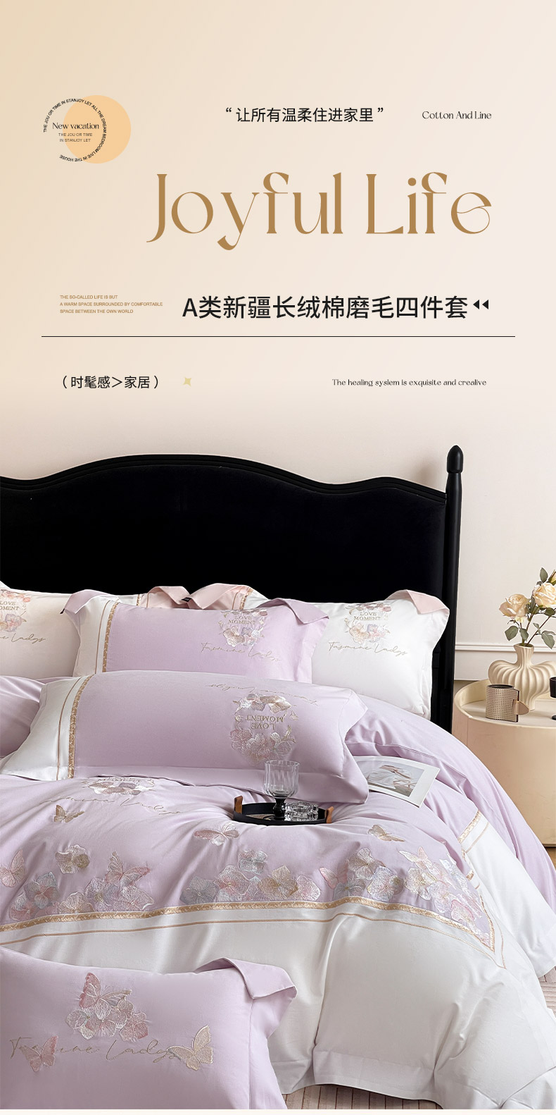 • 91家纺网 家纺一手货源 找家纺 (总) 2026新品高端轻奢风A类贡缎长绒棉四件套纯棉重工刺绣被套床单高级感床笠床上用品-格拉芙,格拉芙-芸粉,格拉芙-柔杏