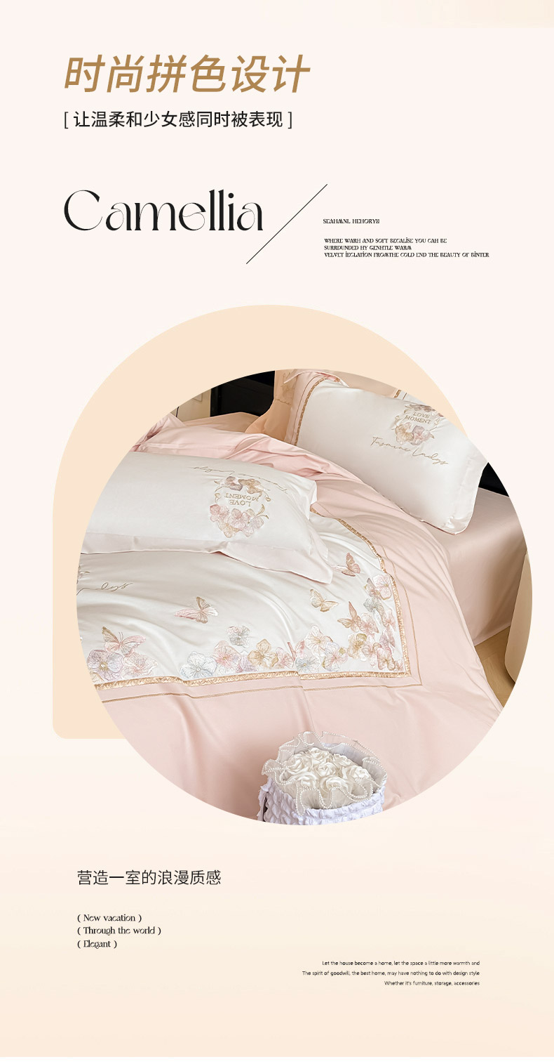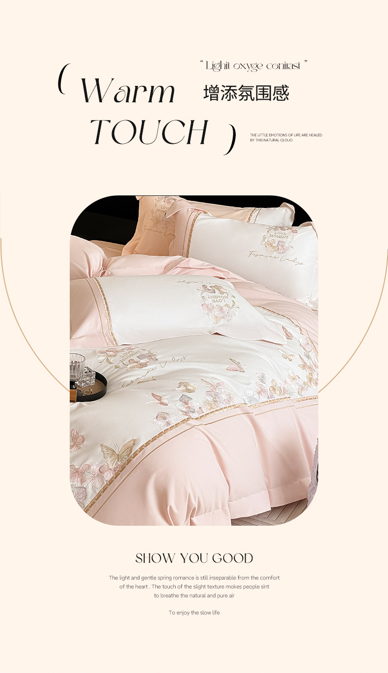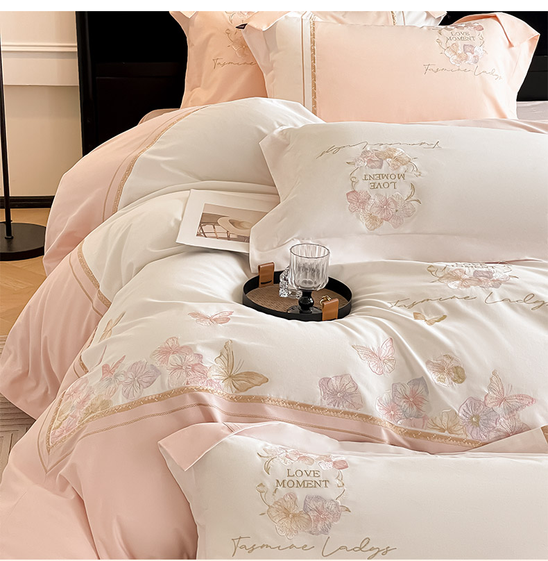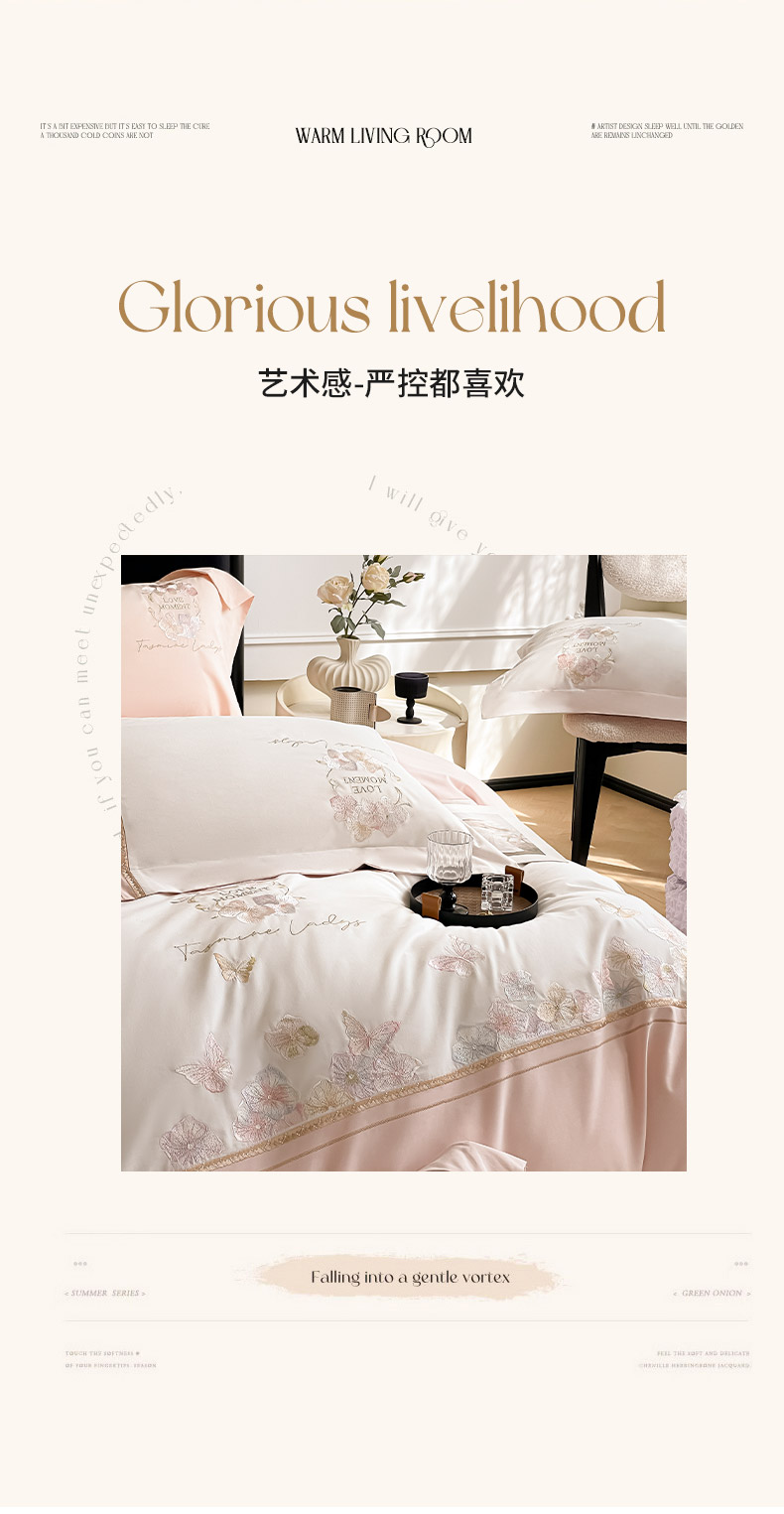 • 91家纺网 家纺一手货源 找家纺 (总) 2026新款高端轻奢风A类贡缎长绒棉四件套纯棉重工刺绣被套床单高级感床笠床上用品,格拉芙-芸粉,格拉芙-柔杏