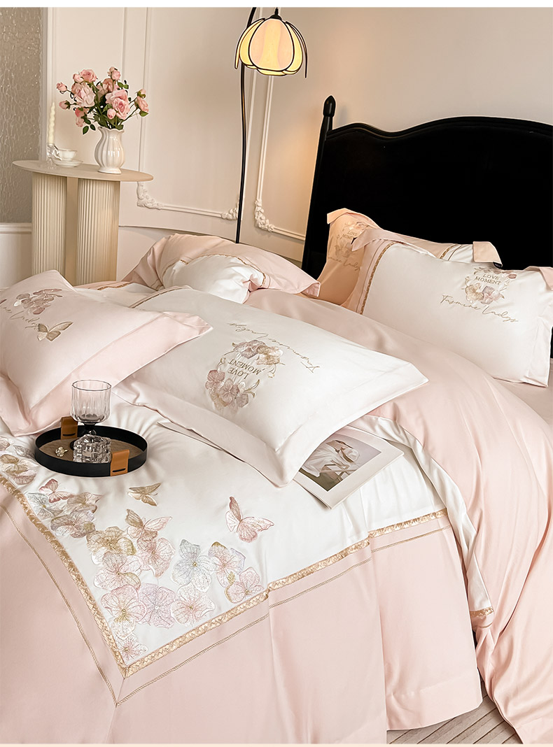 (总) 2026新款高端轻奢风A类贡缎长绒棉四件套纯棉重工刺绣被套床单高级感床笠床上用品,格拉芙-芸粉,格拉芙-柔杏