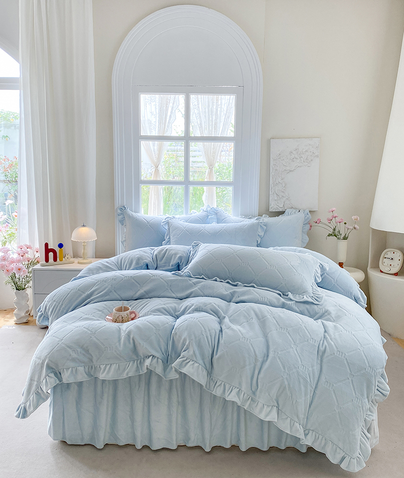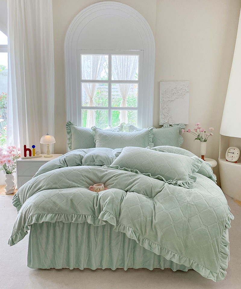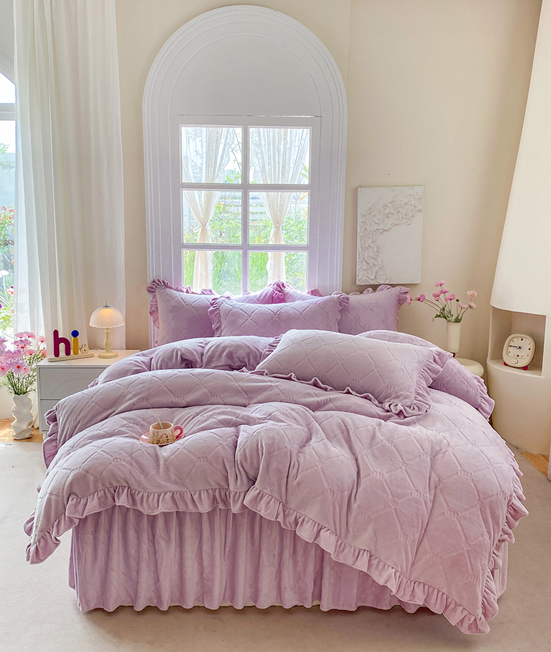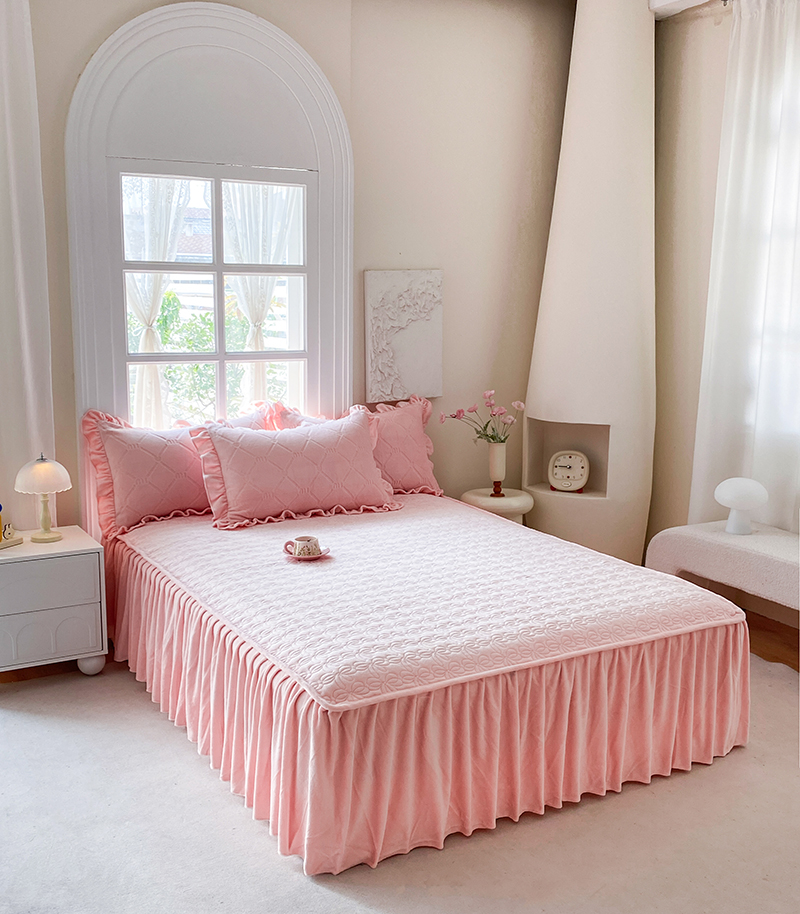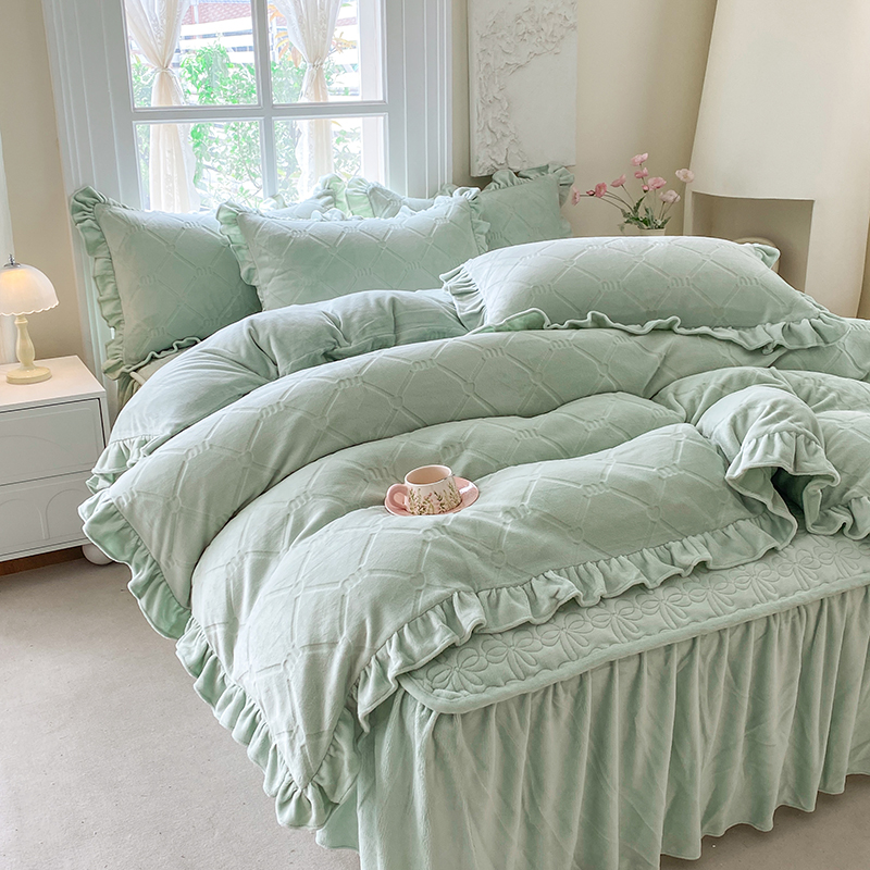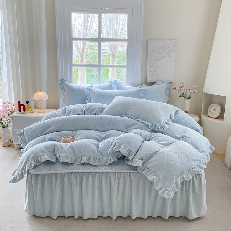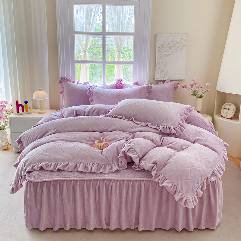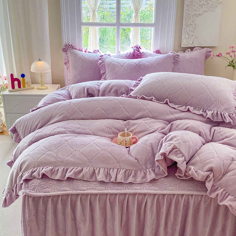 (总)乐嘉盈2025年新款纯色刺绣床裙款牛奶绒四件套-云栖,云栖-豆沙,云栖-粉,云栖-蓝,云栖-绿,云栖-米白,云栖-紫