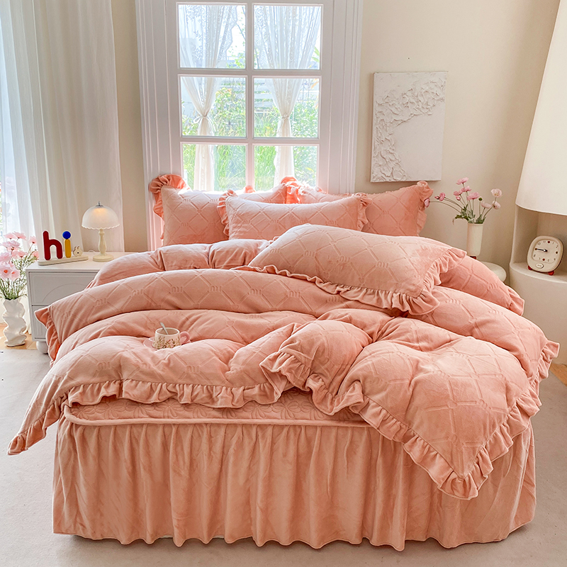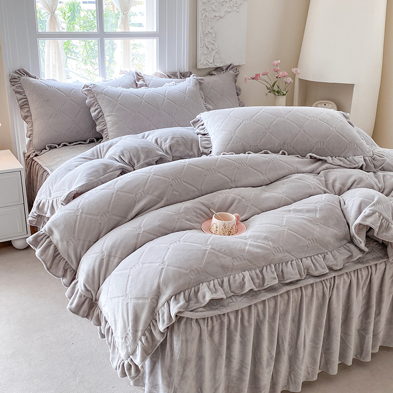 商品名称:(总)乐嘉盈 2025新款雕花牛奶绒床裙款四件套-字母菲菲