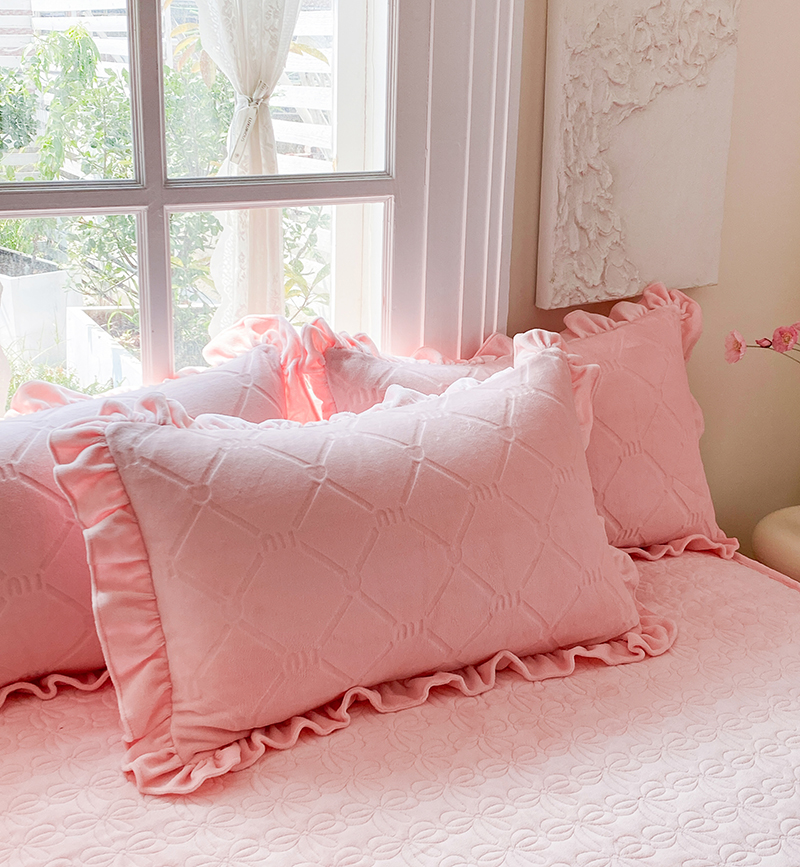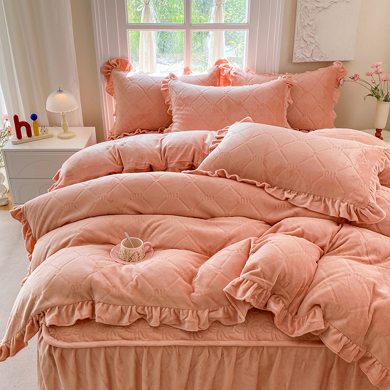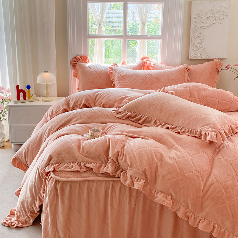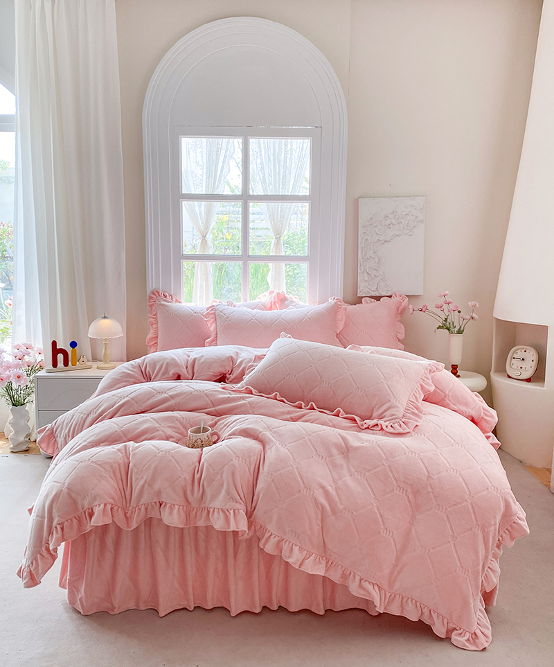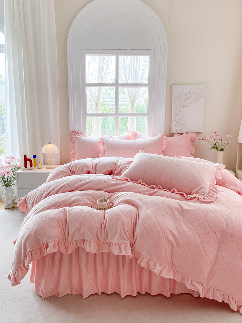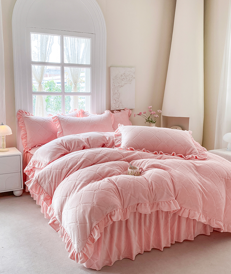 (总)乐嘉盈 2025年新款纯色雕花牛奶绒四件套,粉色