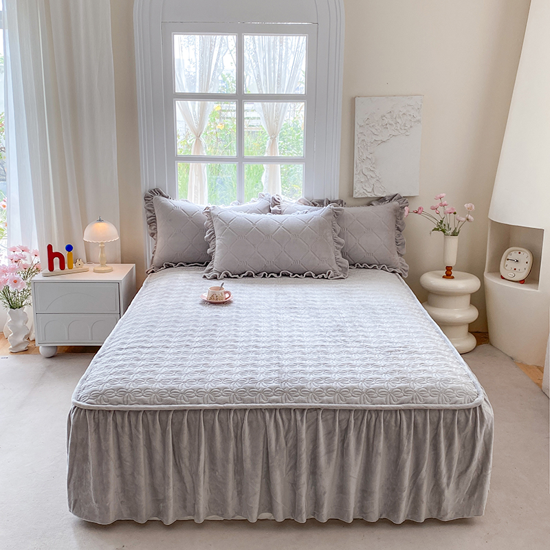 (总)乐嘉盈 2025新款雕花牛奶绒床裙款四件套-字母菲菲