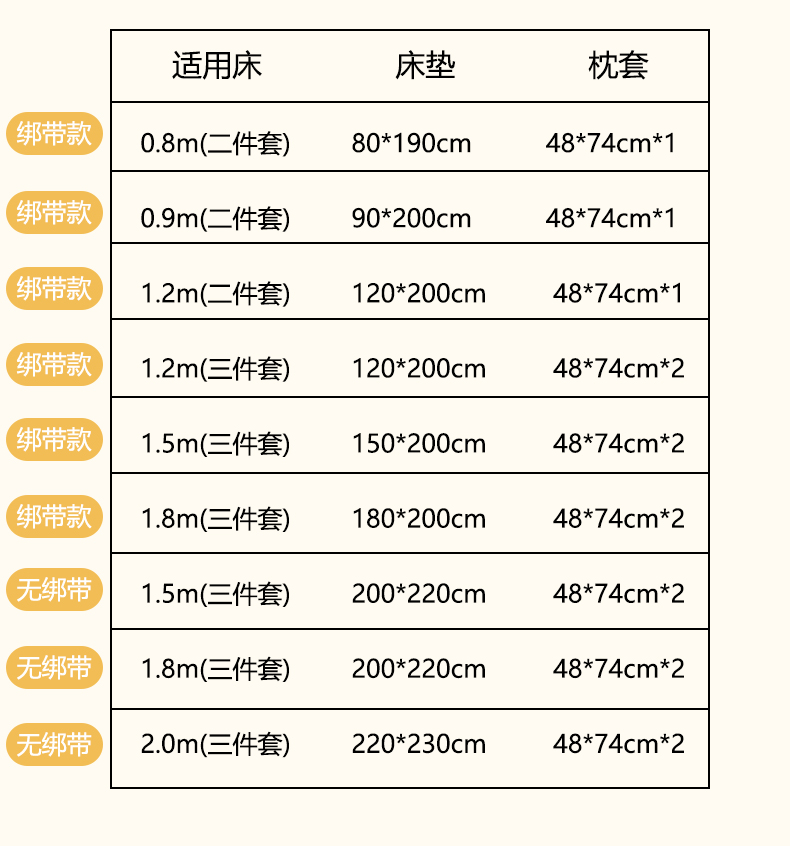 200x220cm+枕套一对(没有绑带) | ¥61.00 |