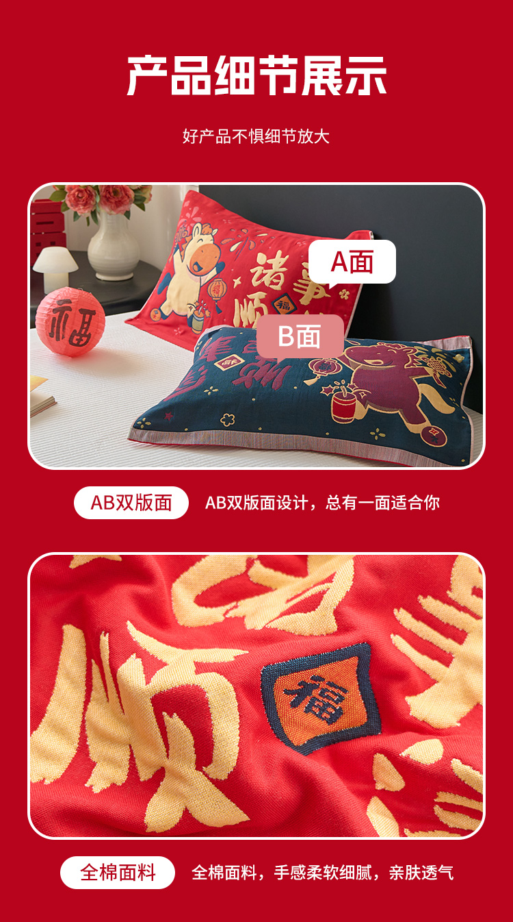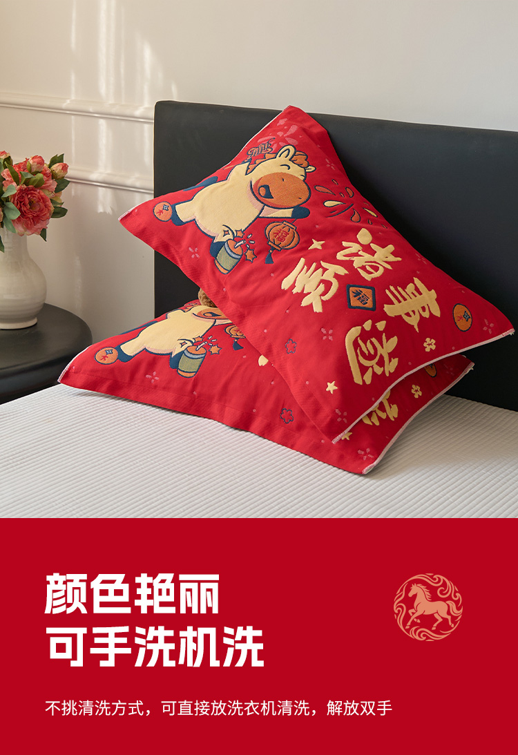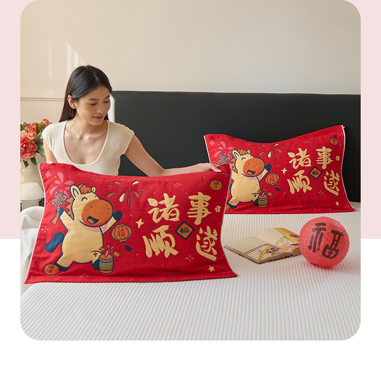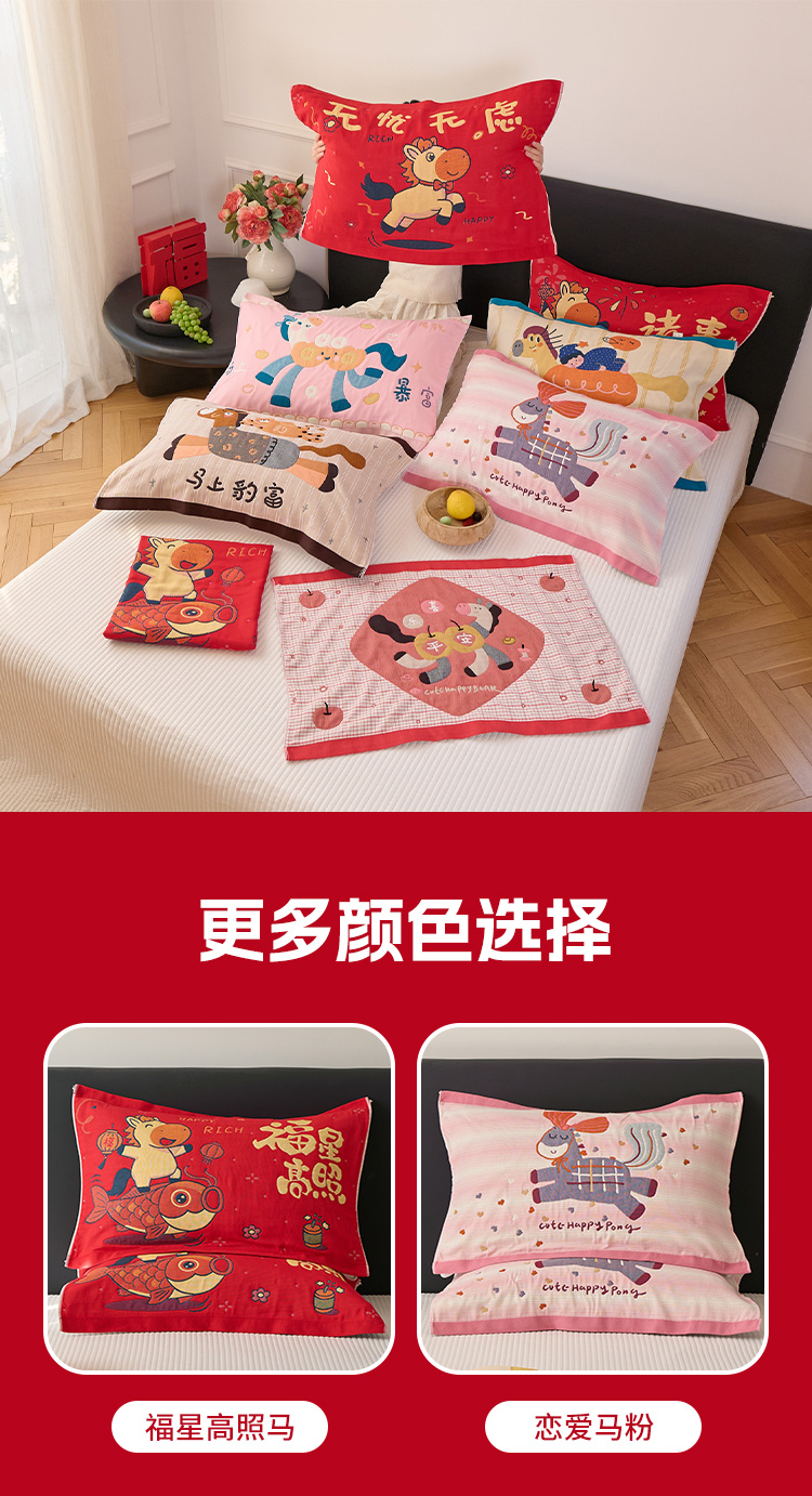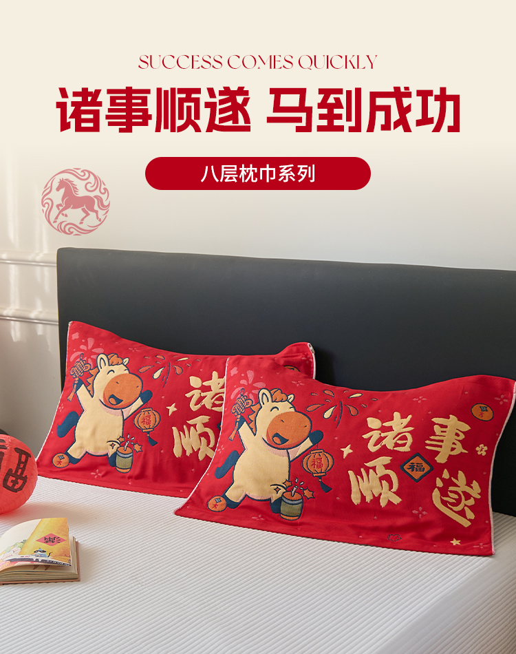 商品名称:沐瑟家纺 2026新款纯棉八层枕巾-马 诸事顺遂马