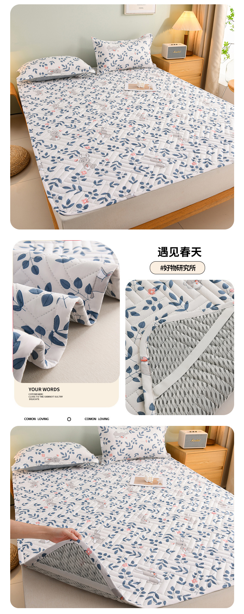 (总)圣靓家纺 2025新款亲肤清新水洗床垫,自由自在,初见,海棠,落花,盛夏,素叶,夏梦,幽兰,遇见春天,组合图