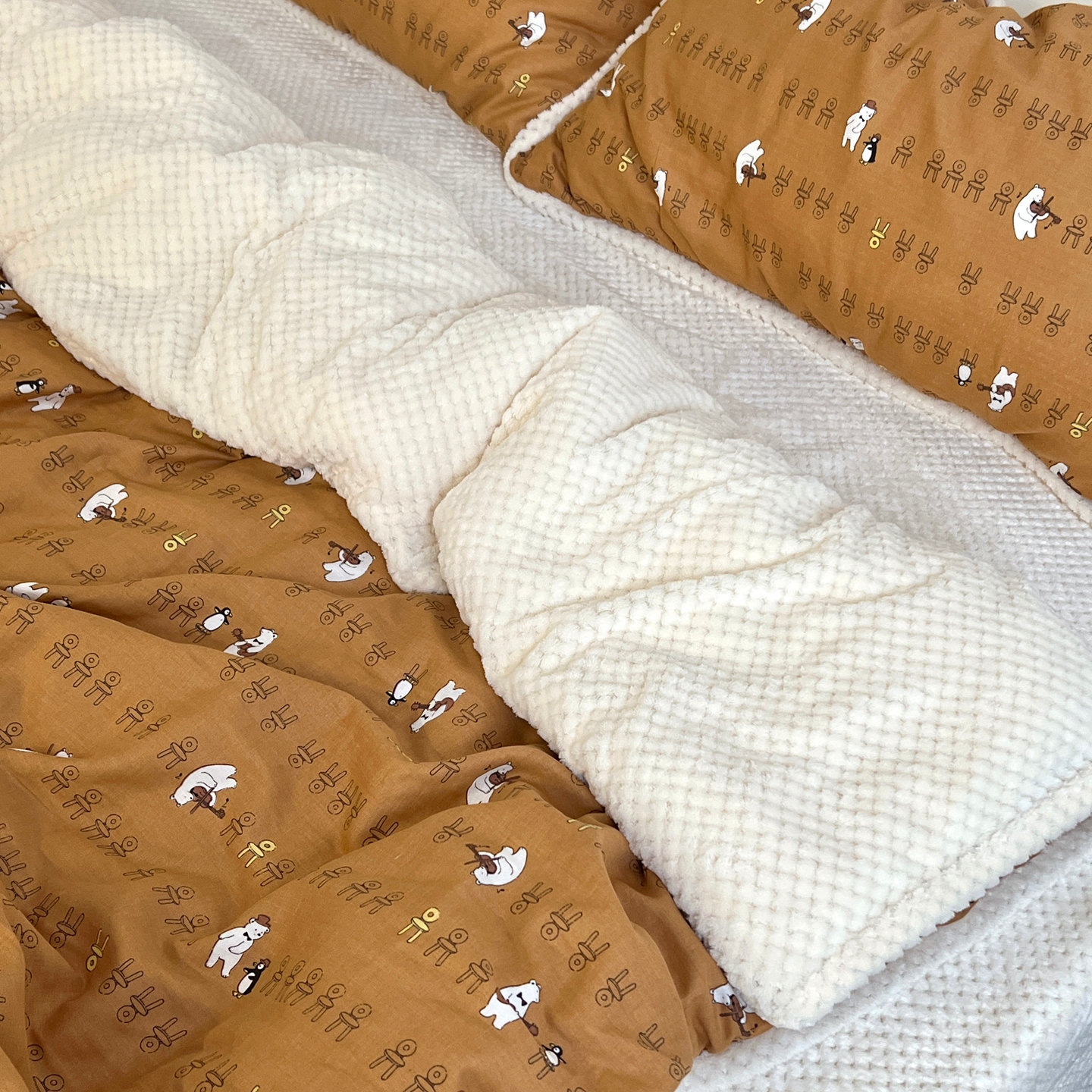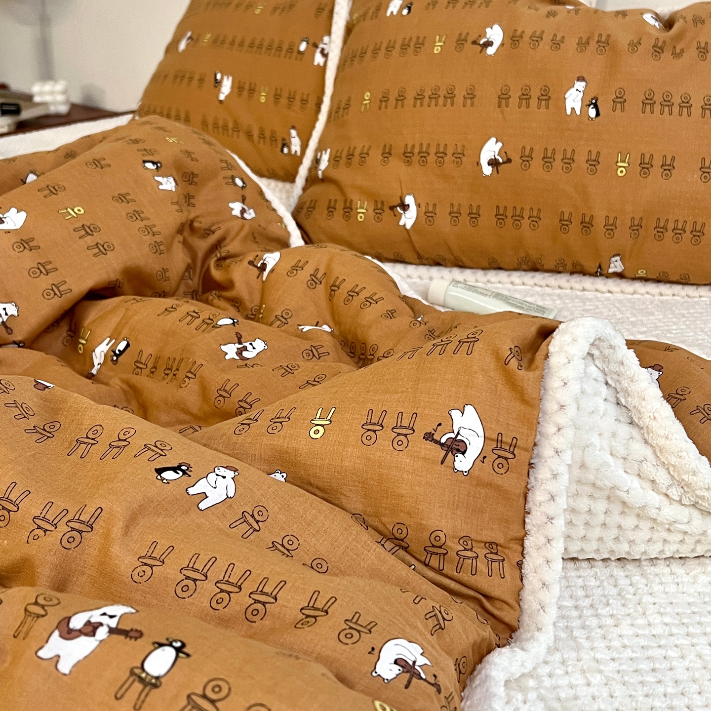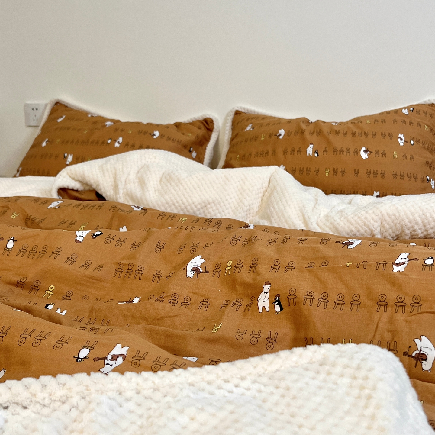 荣轩 2025秋冬必备新品棉加绒华夫格提花绒工艺款四件套(铺床版)音乐白熊