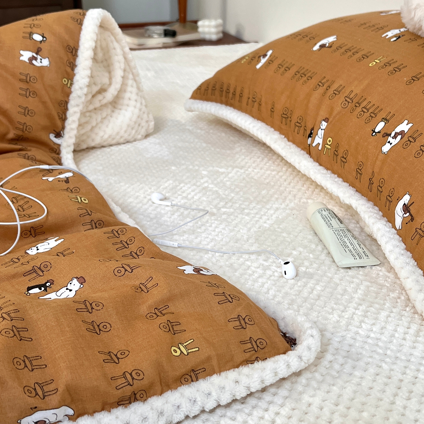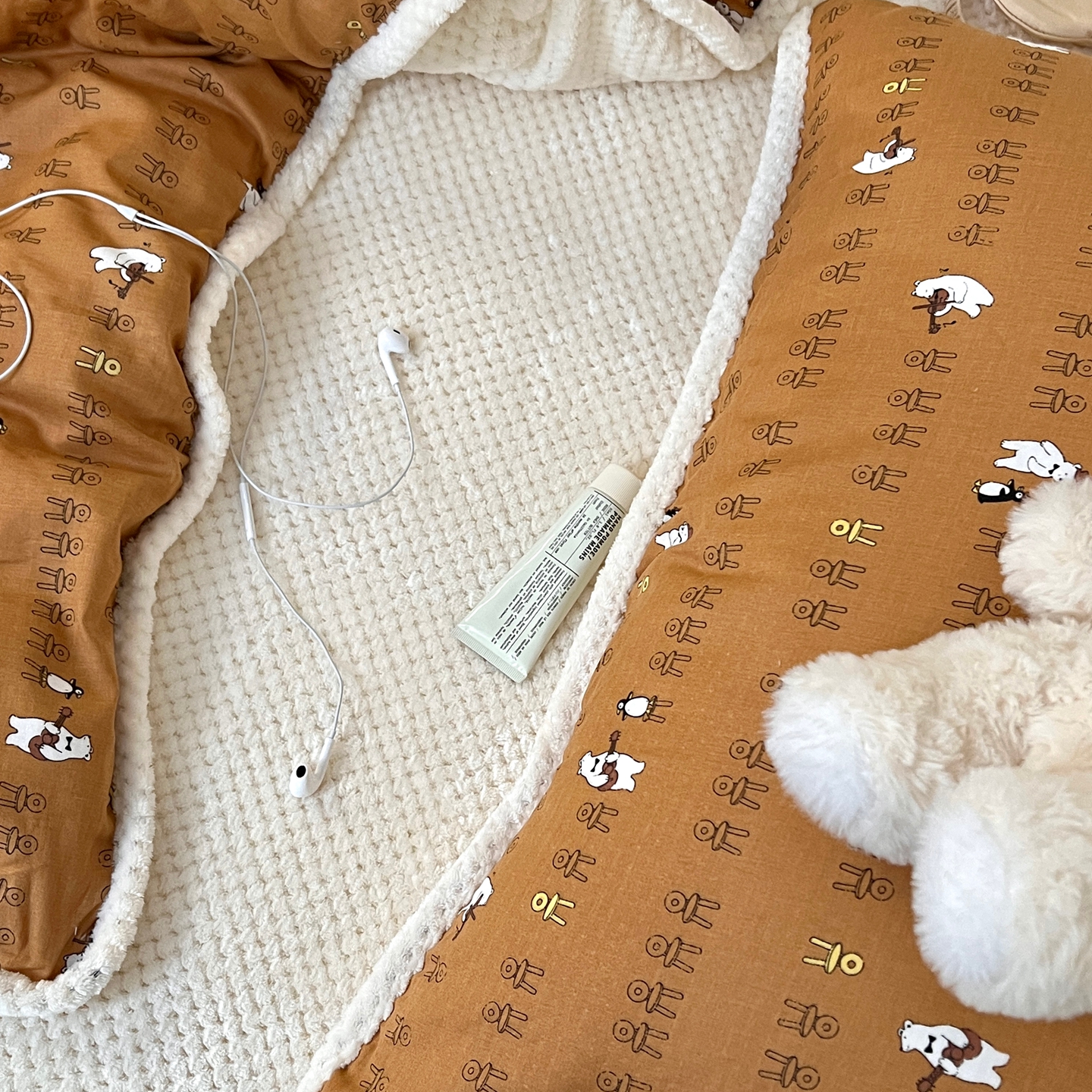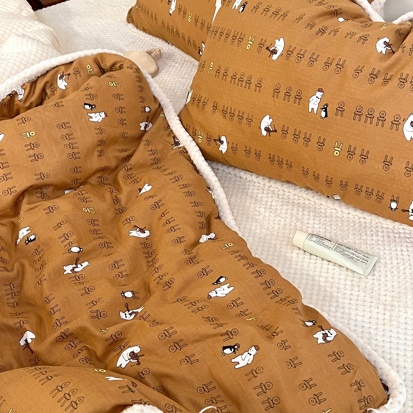 荣轩 2025秋冬必备新品棉加绒华夫格提花绒工艺款四件套(铺床版)音乐白熊