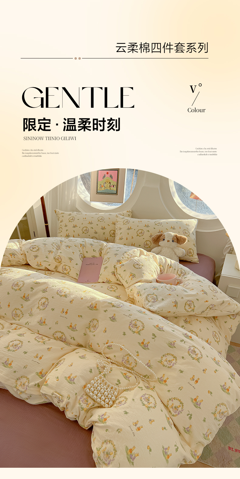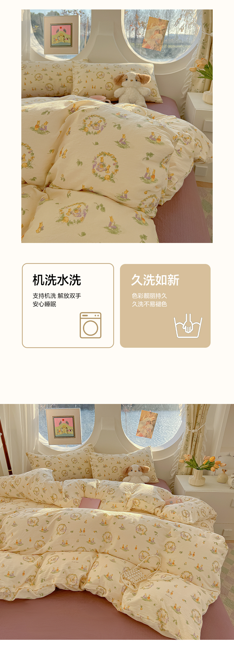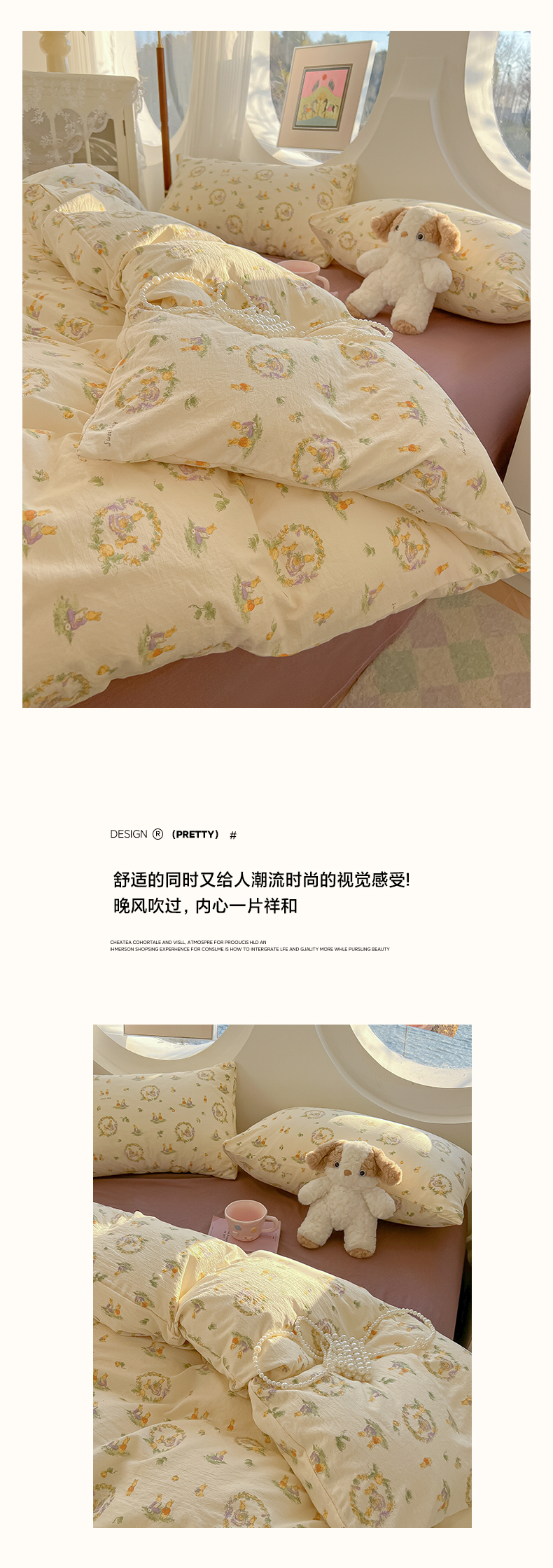 当前位置: 91家纺网 > 商品网购 > 床品套件 > 四件套 > 其它四件套 > 韩巢家纺 2025新款奶呼呼云感双层纱印花四件套 兔子的欢喜