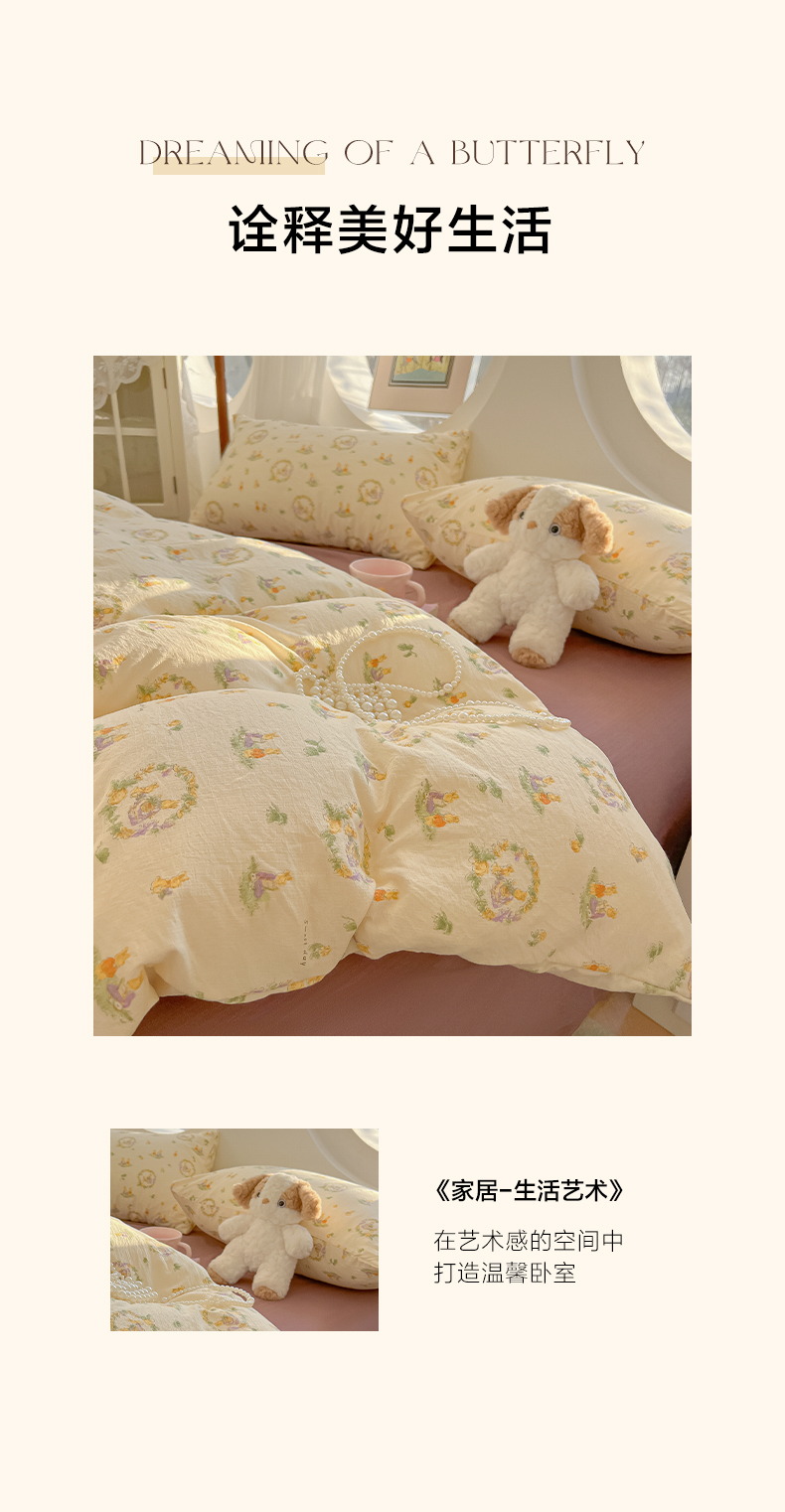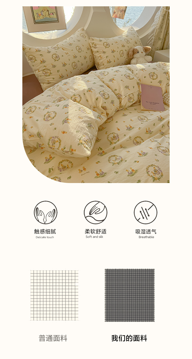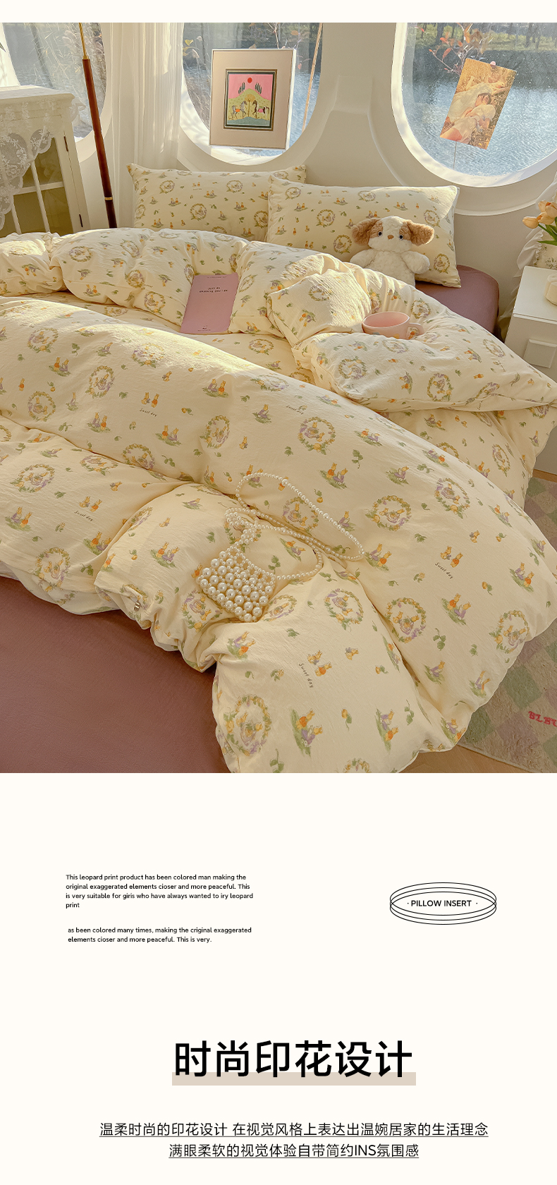 当前位置: 91家纺网 > 商品网购 > 床品套件 > 四件套 > 其它四件套 > 韩巢家纺 2025新款奶呼呼云感双层纱印花四件套 兔子的欢喜