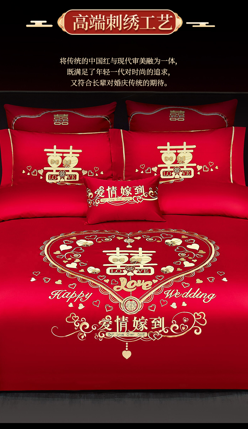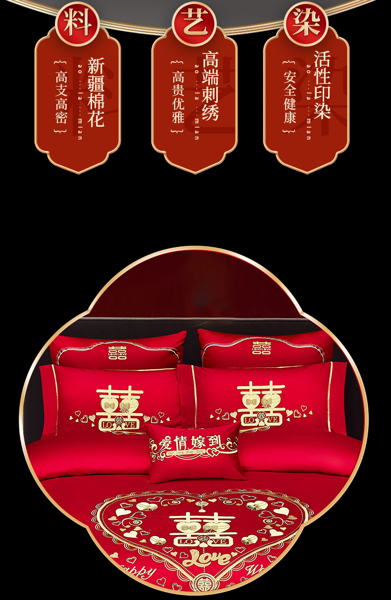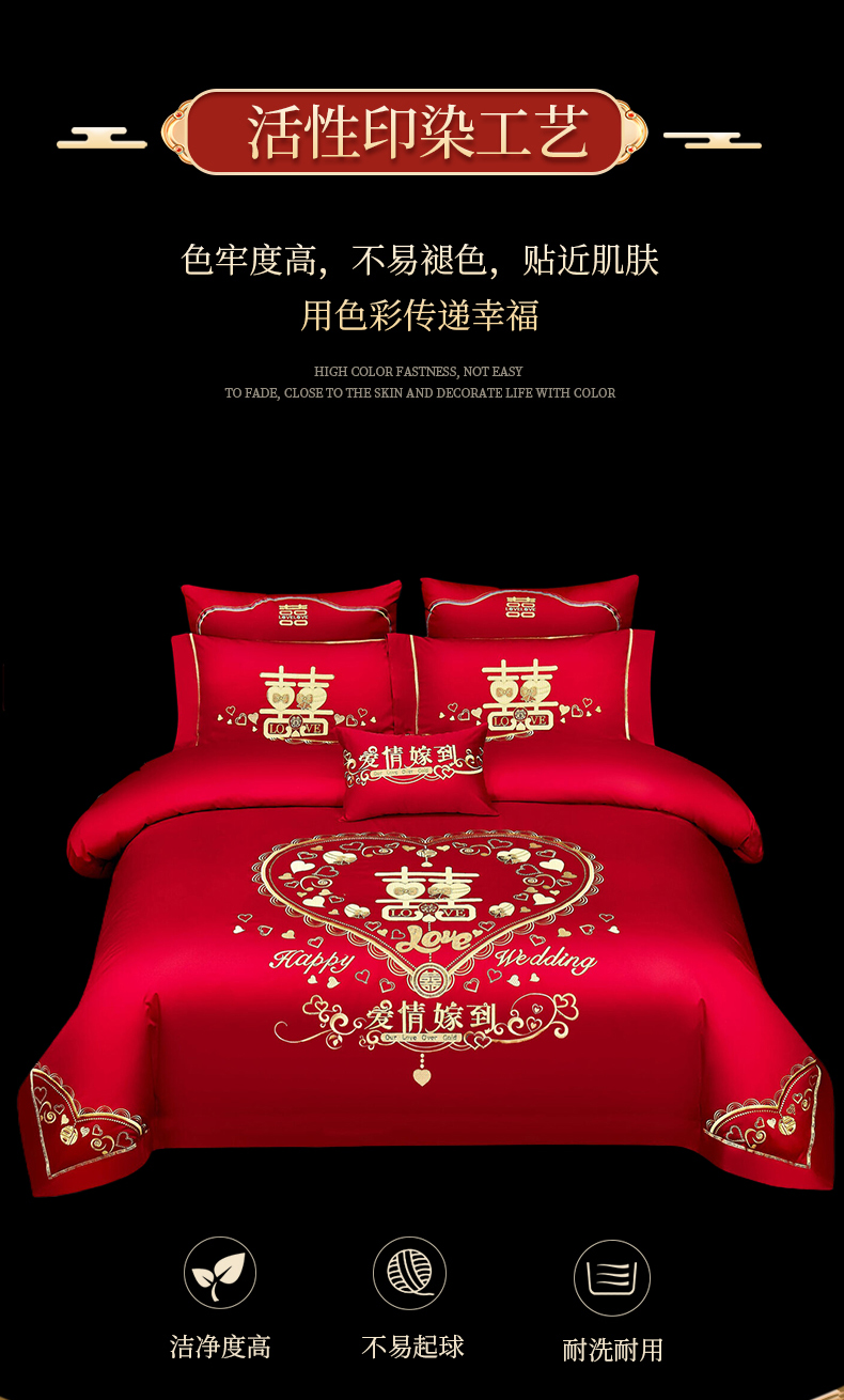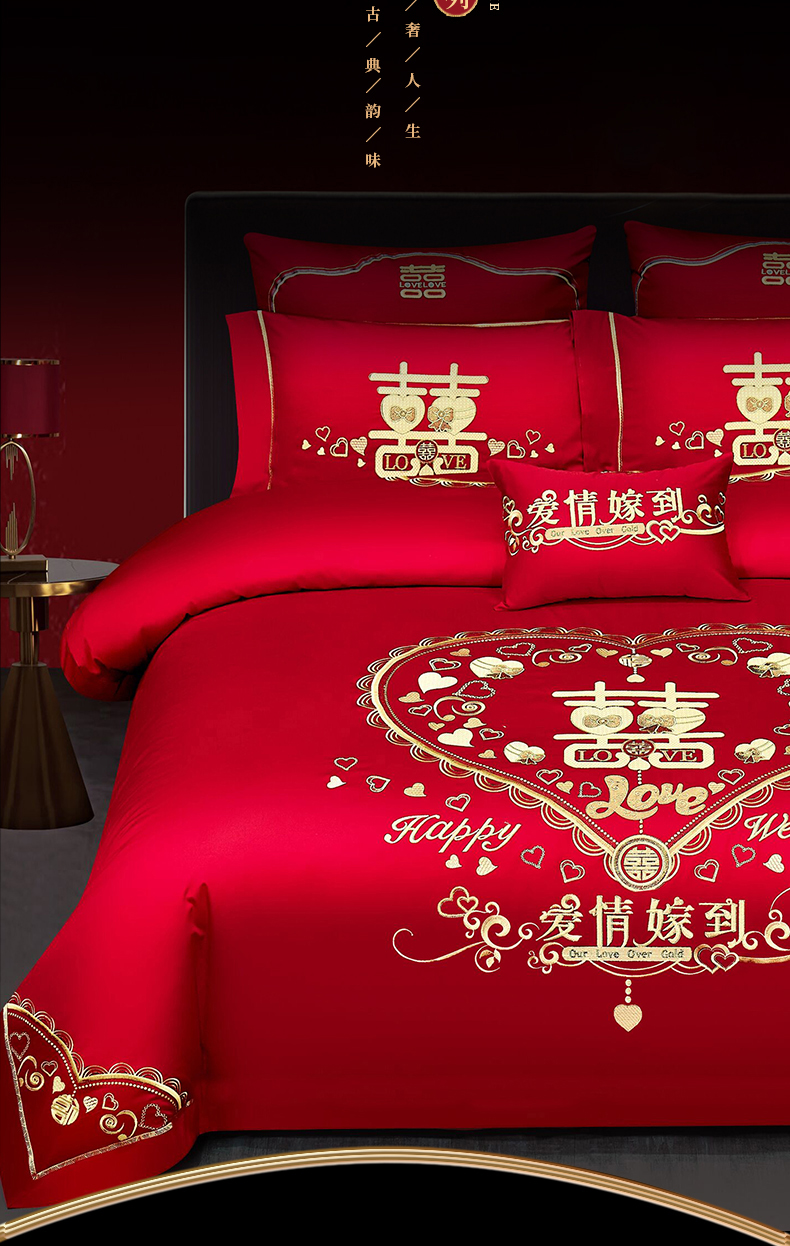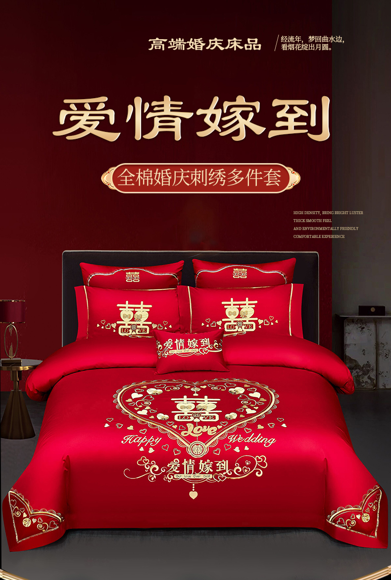 当前位置: 91家纺网 > 商品网购 > 床品套件 > 四件套 > 婚庆四件套 > 浩情国际婚庆供货中心 2026新款100%全棉长绒棉纯棉婚庆四件套结婚刺绣六件套多件套长期供货 爱情嫁到