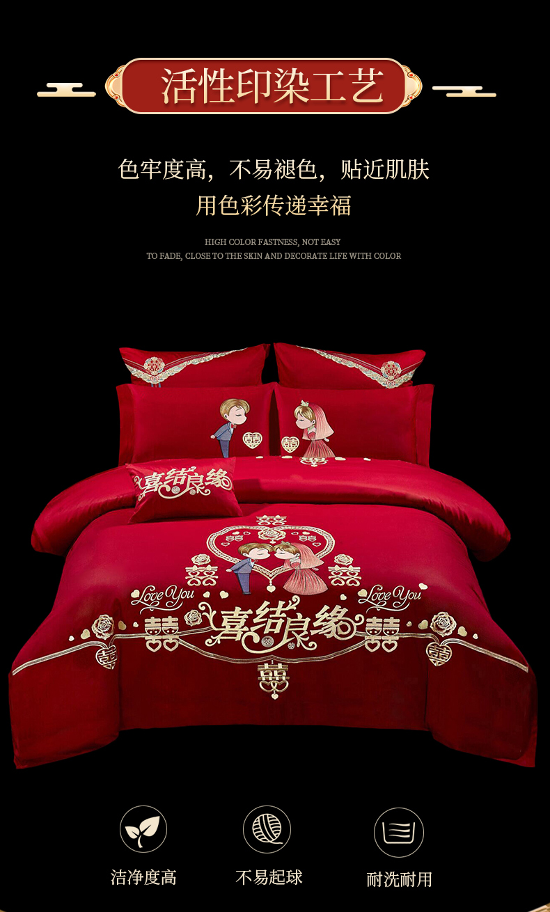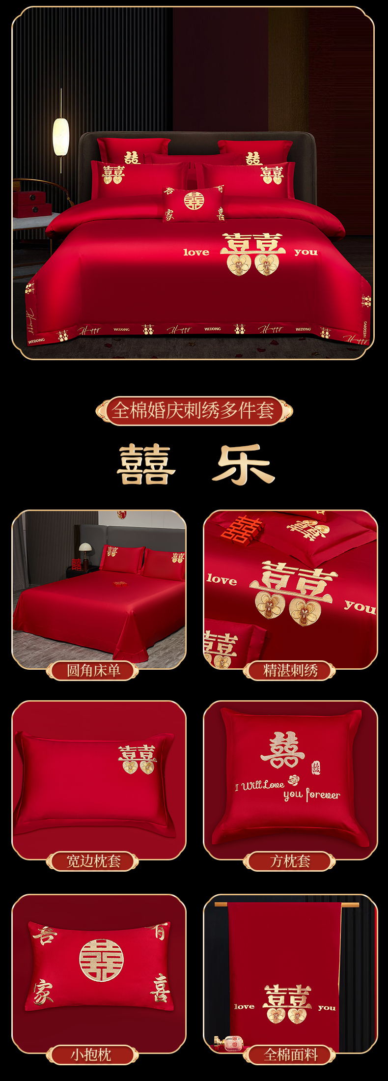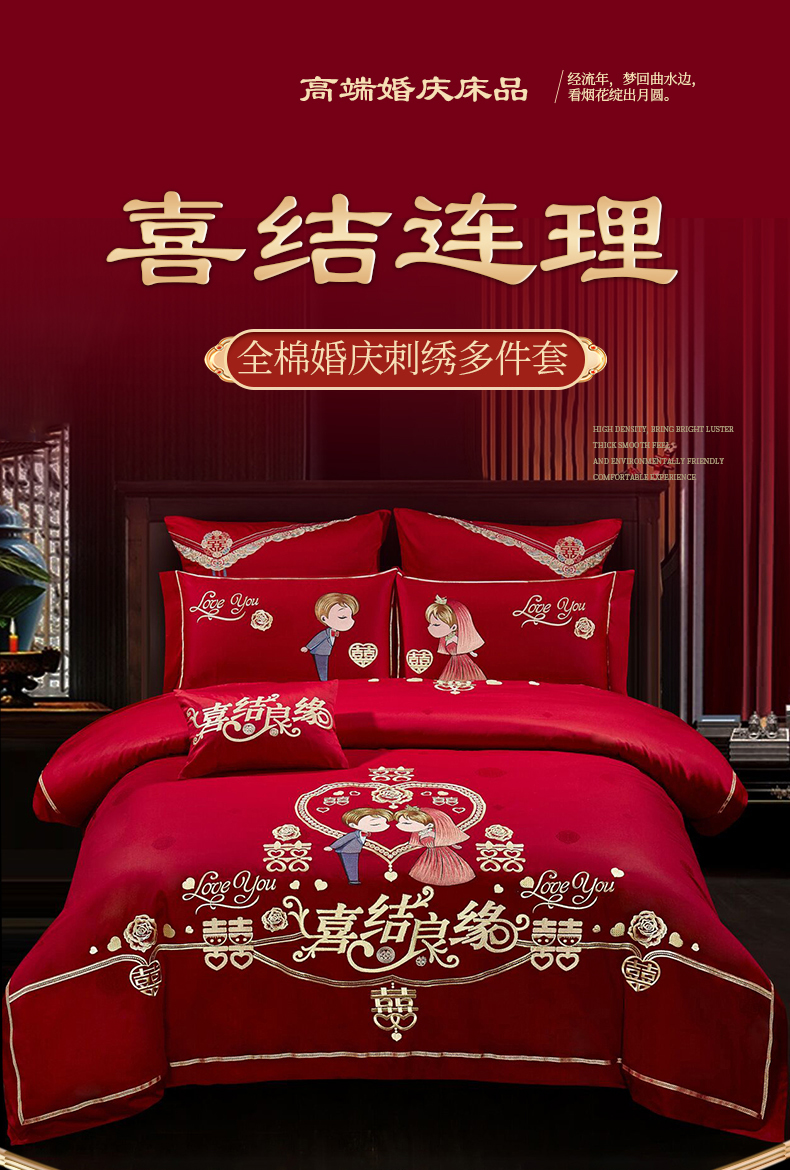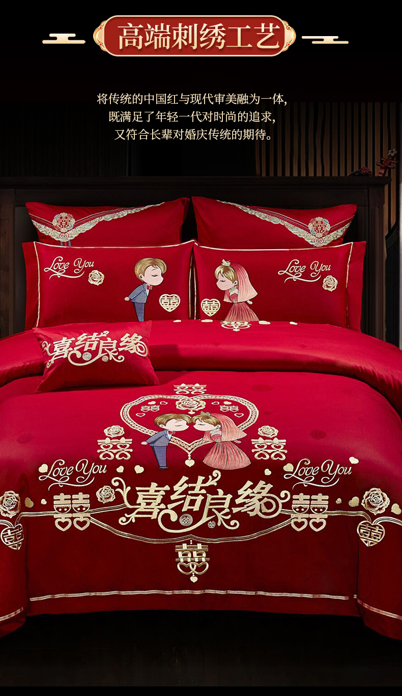 当前位置: 91家纺网 > 商品网购 > 床品套件 > 四件套 > 婚庆四件套 > 浩情国际婚庆供货中心 2026新款100%全棉长绒棉纯棉婚庆四件套结婚刺绣六件套多件套长期供货 喜结连理