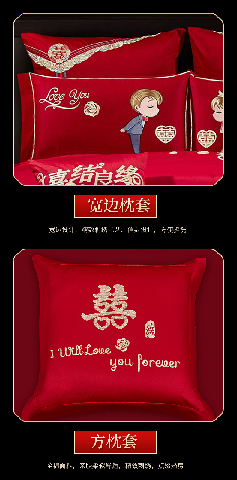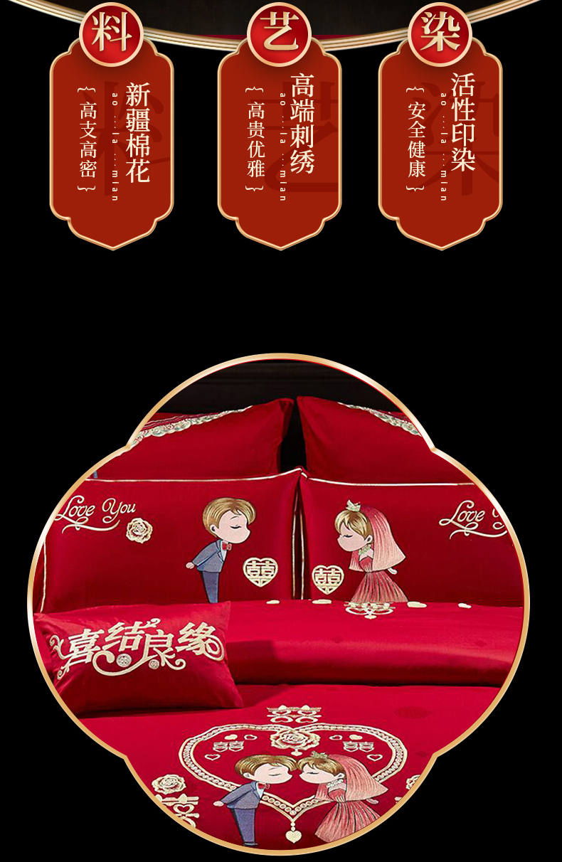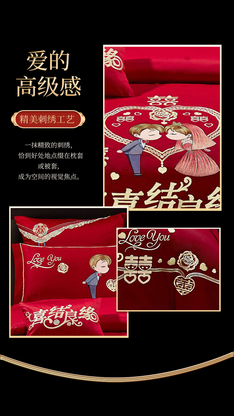 当前位置: 91家纺网 > 商品网购 > 床品套件 > 四件套 > 婚庆四件套 > 浩情国际婚庆供货中心 2026新款100%全棉长绒棉纯棉婚庆四件套结婚刺绣六件套多件套长期供货 喜结连理