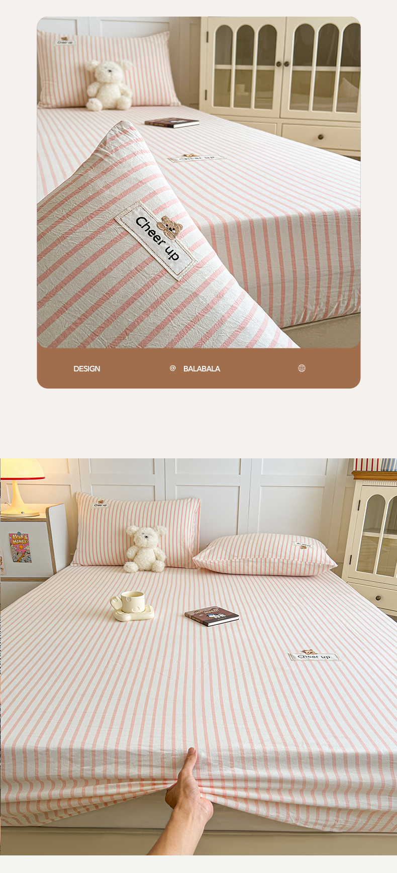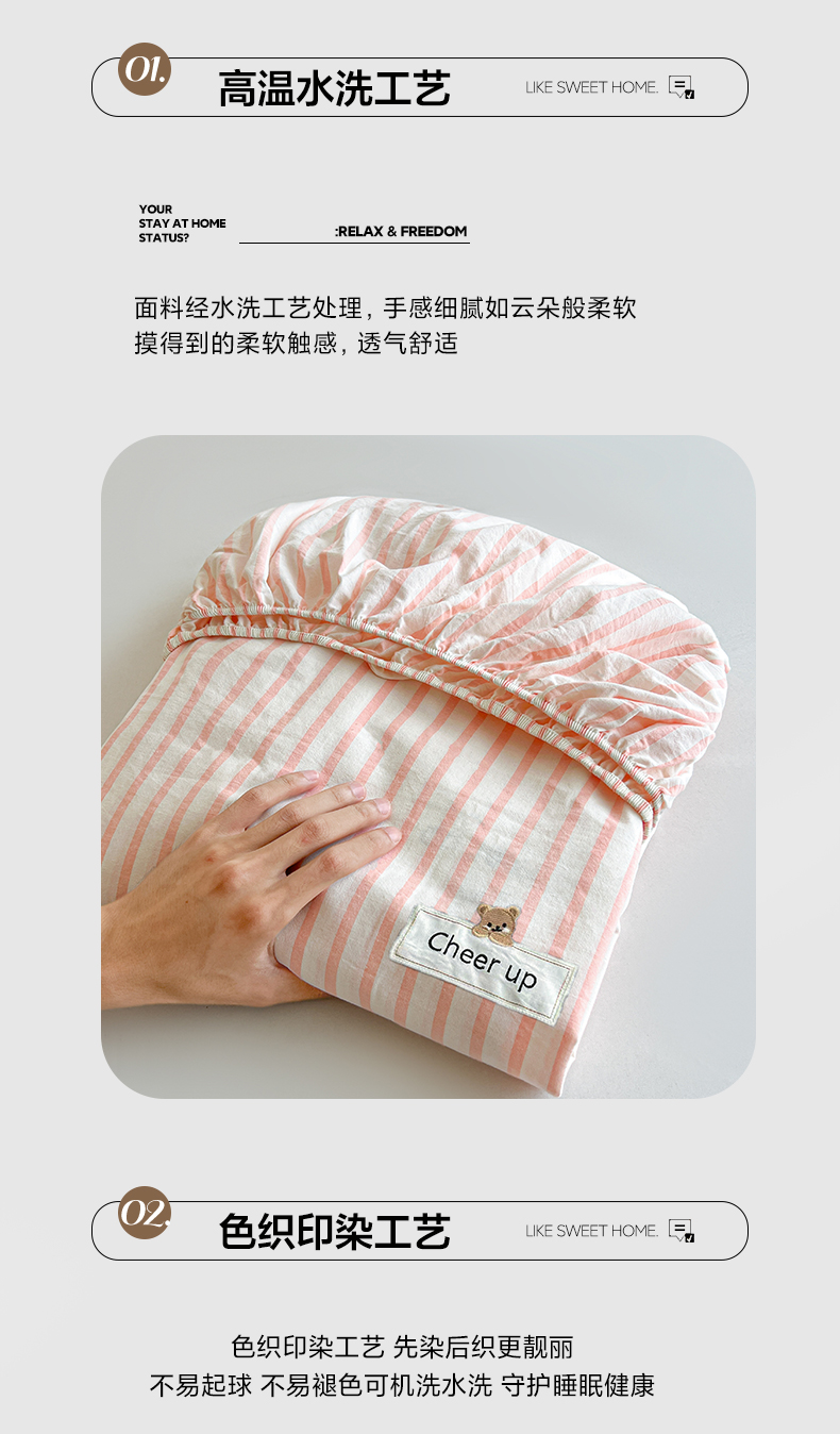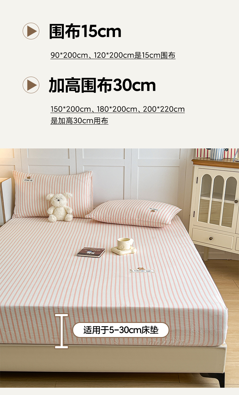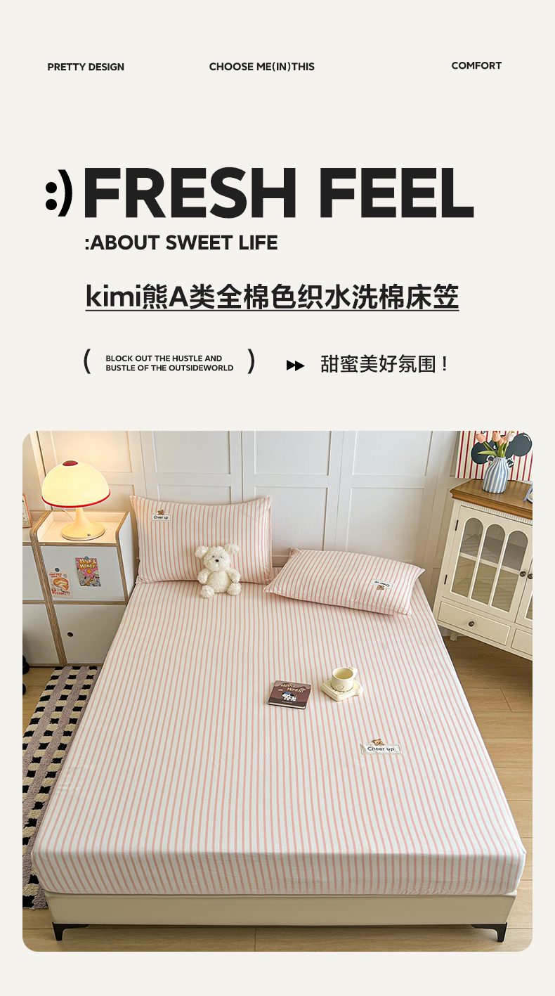 (总)佳笠家居 2026年新款kimi熊a类全棉色织水洗棉大尺寸单床笠