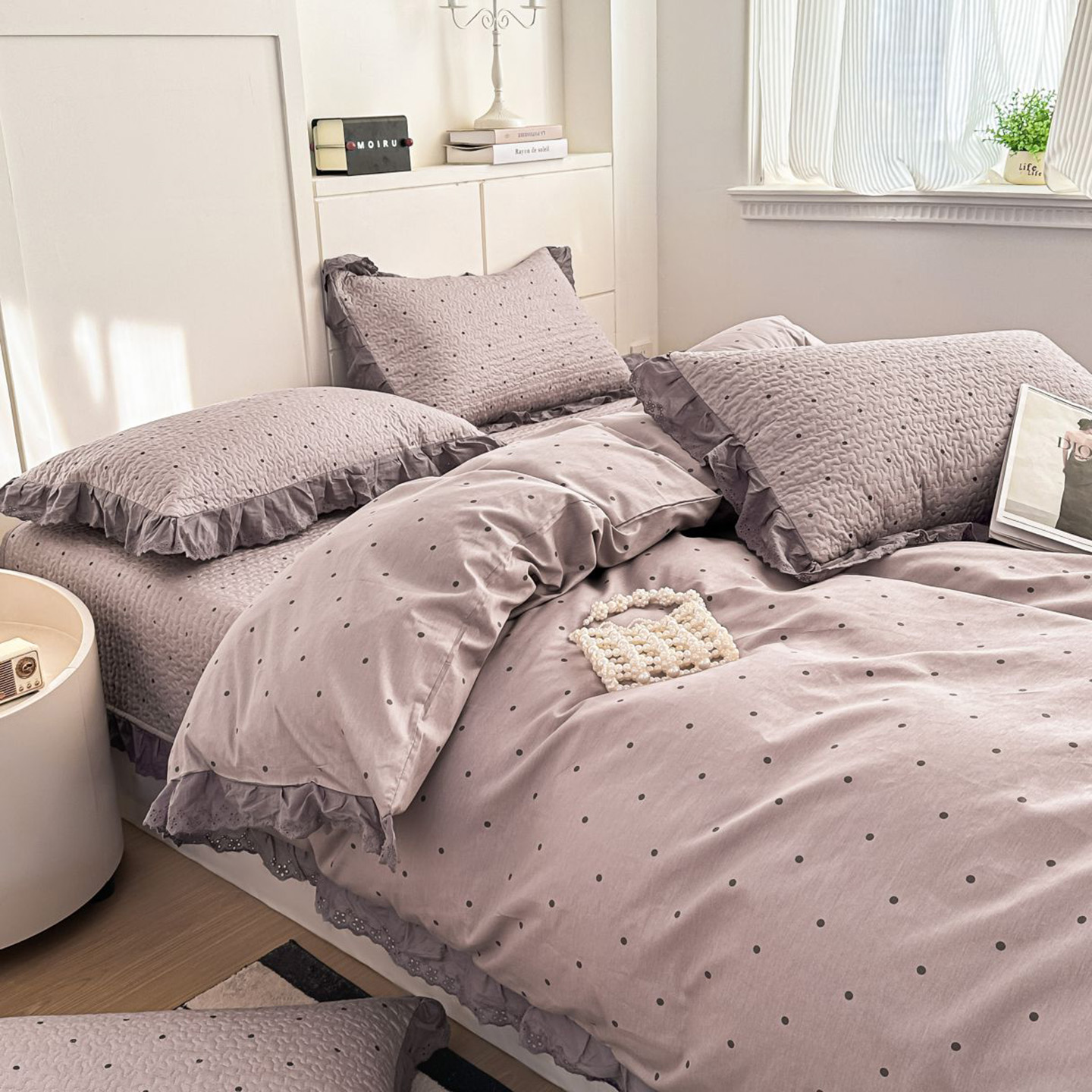 • 91家纺网 家纺一手货源 找家纺 (总)暖居 2026新款支持定制法式花边纯棉榻榻米四件套全棉大炕盖三件套四季通用,白山茶,奶油点点,豹纹KT,波点紫,晨暮间,海盐兔,赫本白,灰格蝴蝶结,南法假日,浅咖,时尚小香,碎花兔蓝,旺仔紫色,小美好,小甜橘,小香格子,雅格,中国美