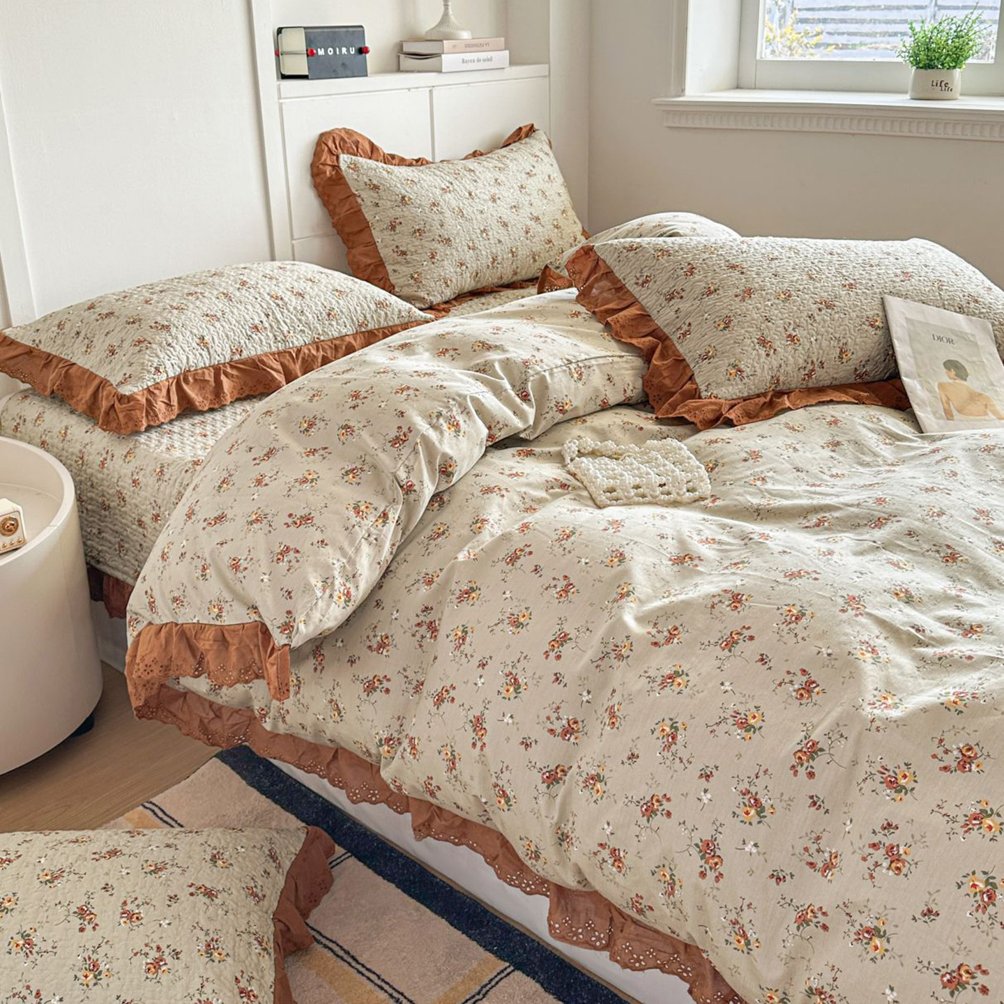 (总)暖居 2026新款支持定制法式花边纯棉榻榻米四件套全棉大炕盖三件套四季通用,白山茶,奶油点点,豹纹KT,波点紫,晨暮间,海盐兔,赫本白,灰格蝴蝶结,南法假日,浅咖,时尚小香,碎花兔蓝,旺仔紫色,小美好,小甜橘,小香格子,雅格,中国美