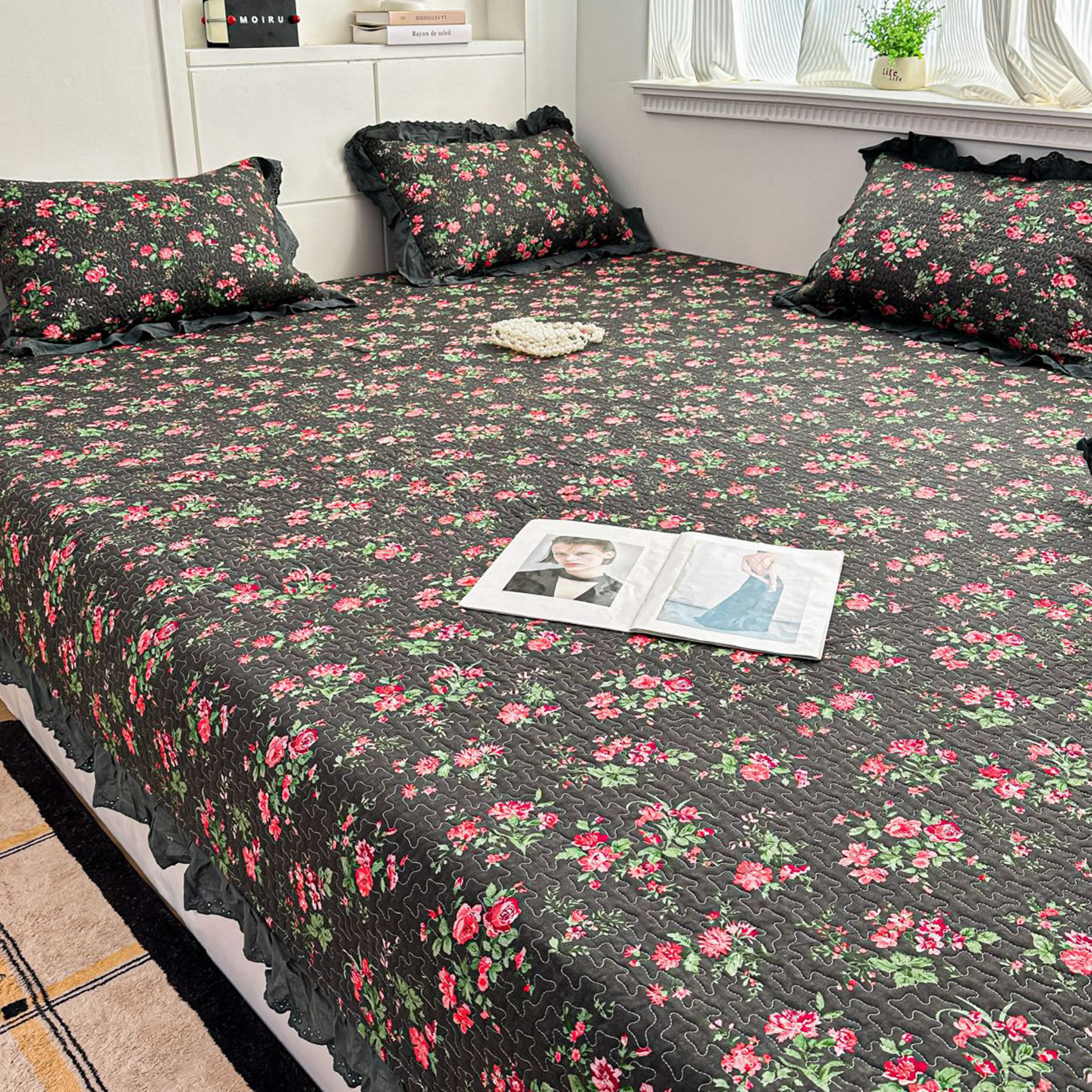 当前位置: 91家纺网 > 商品网购 > 床上用品 > 床盖 > 暖居 2026新款支持定制法式花边纯棉榻榻米四件套全棉大炕盖三件套四季通用 中国美
