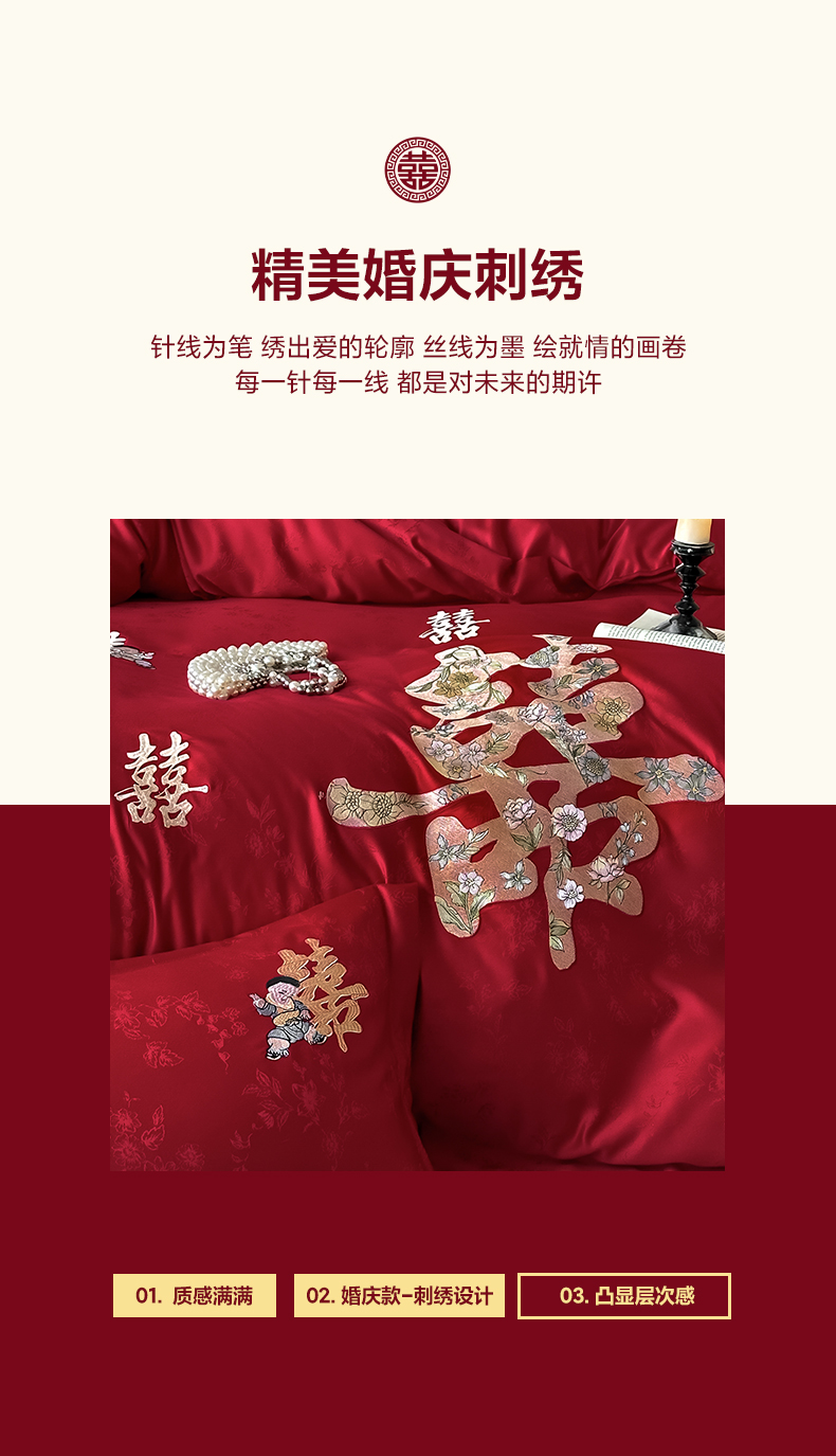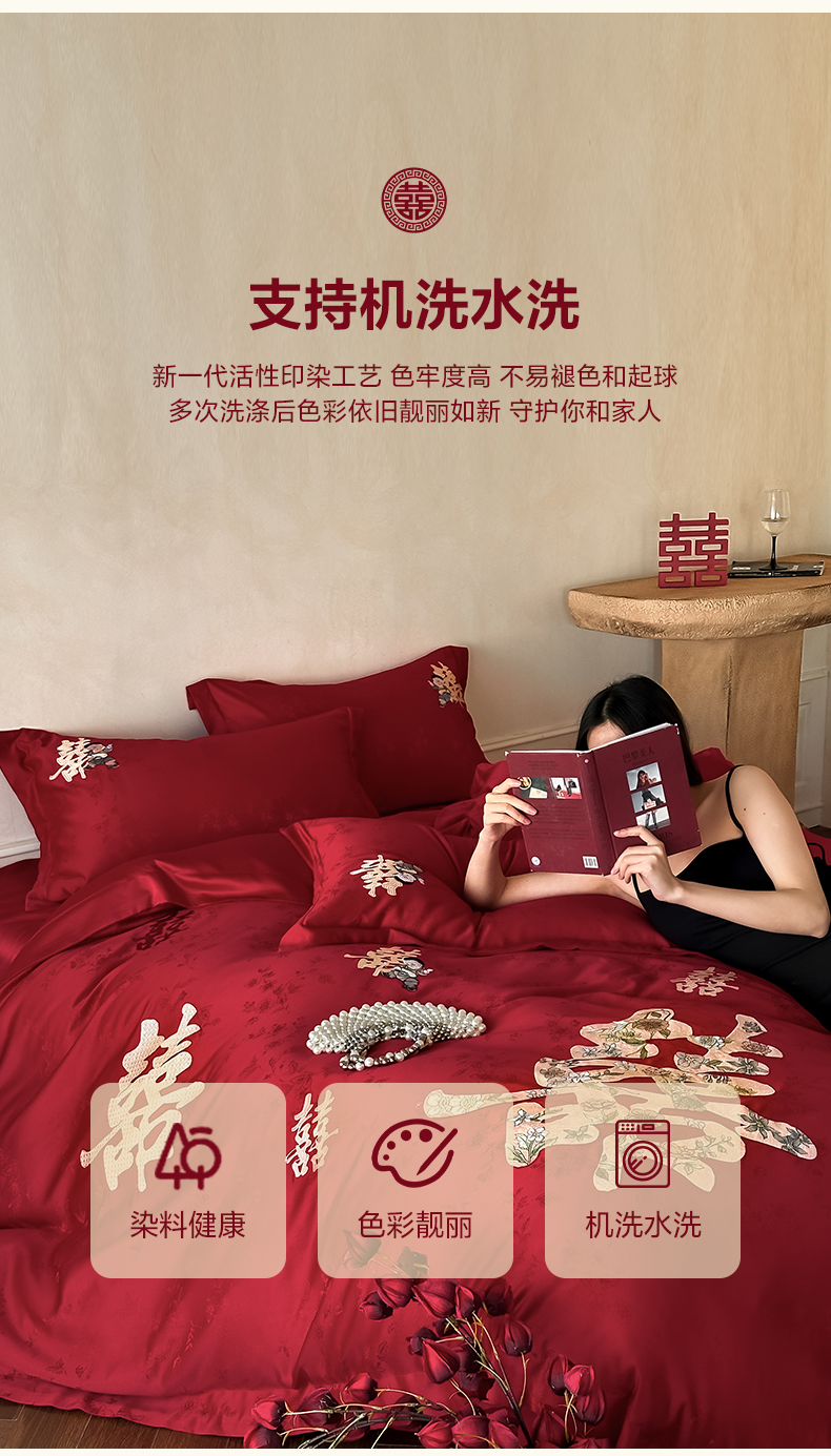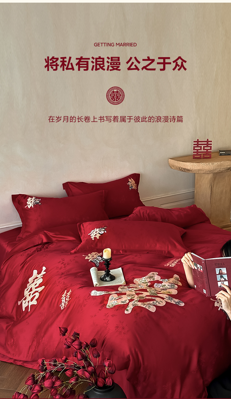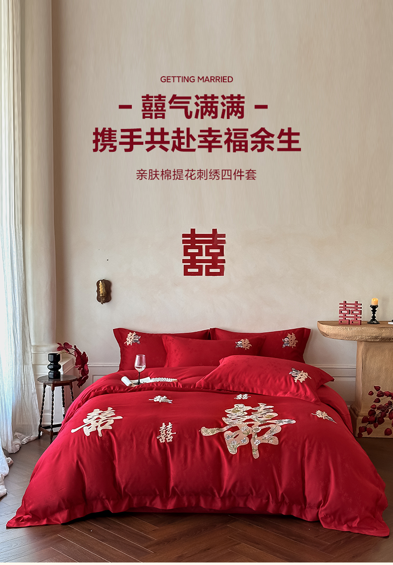 商品名称:欧乐蒂 2025冬季新品亲肤棉提花刺绣婚庆四件套 喜事花开