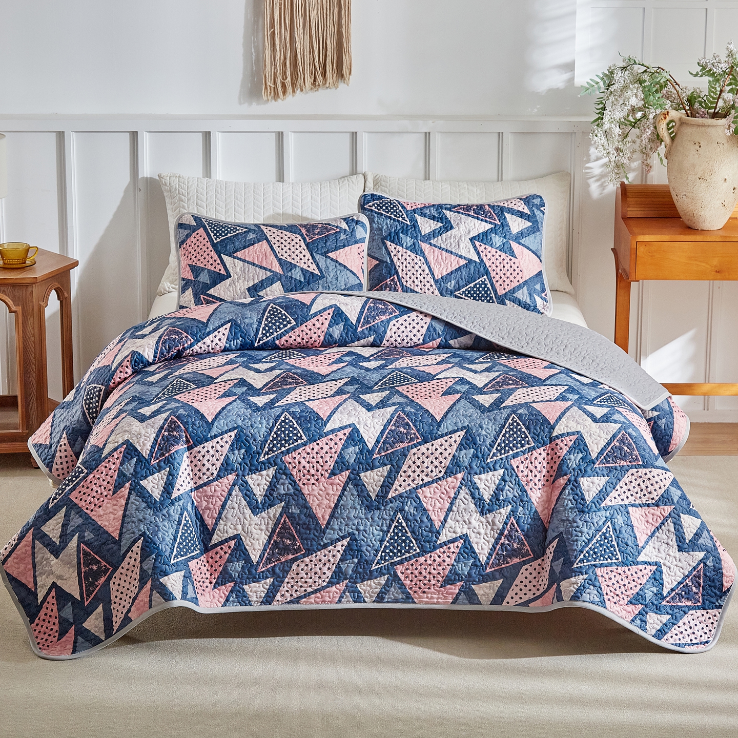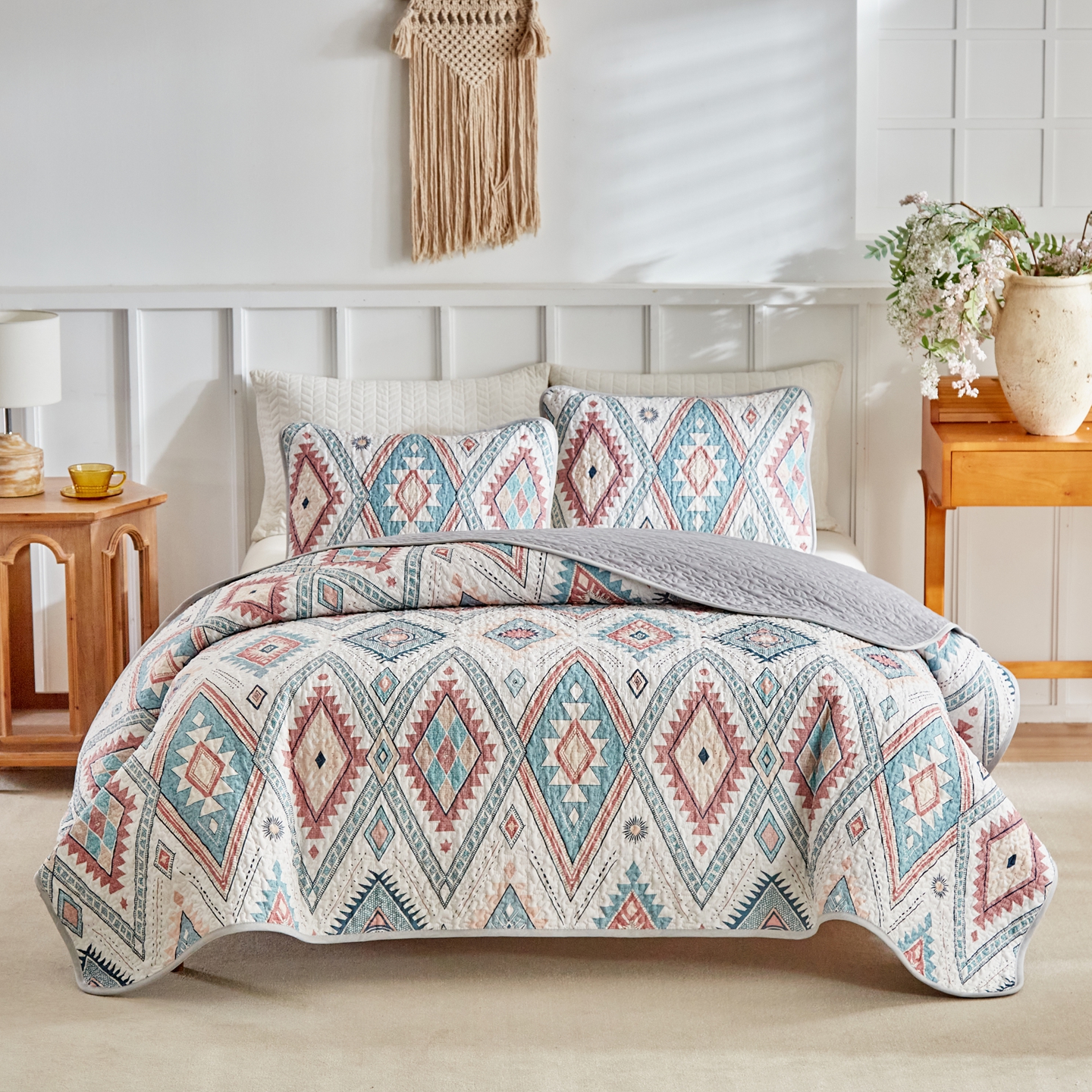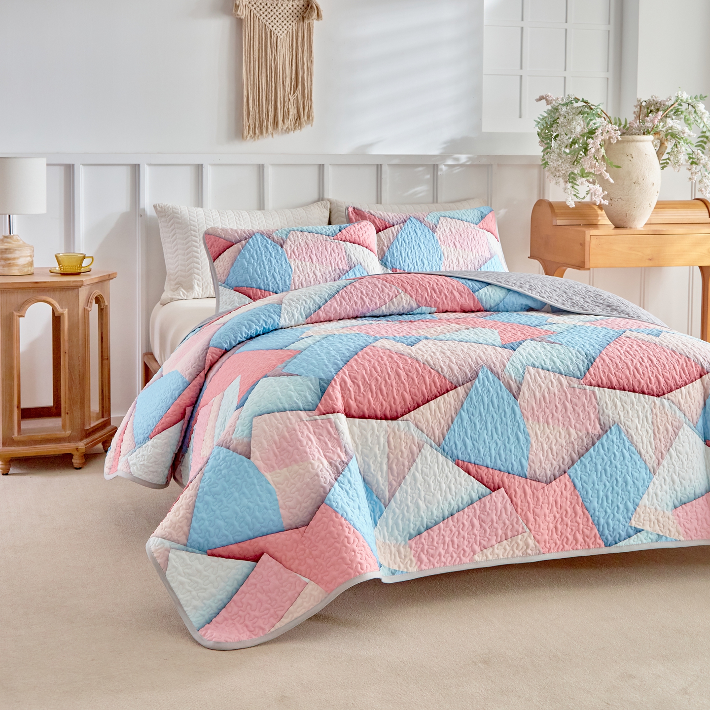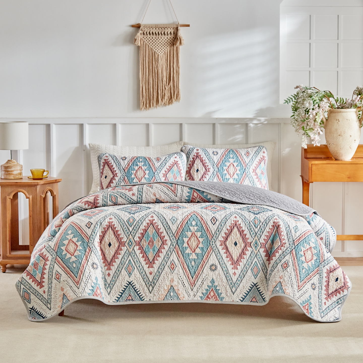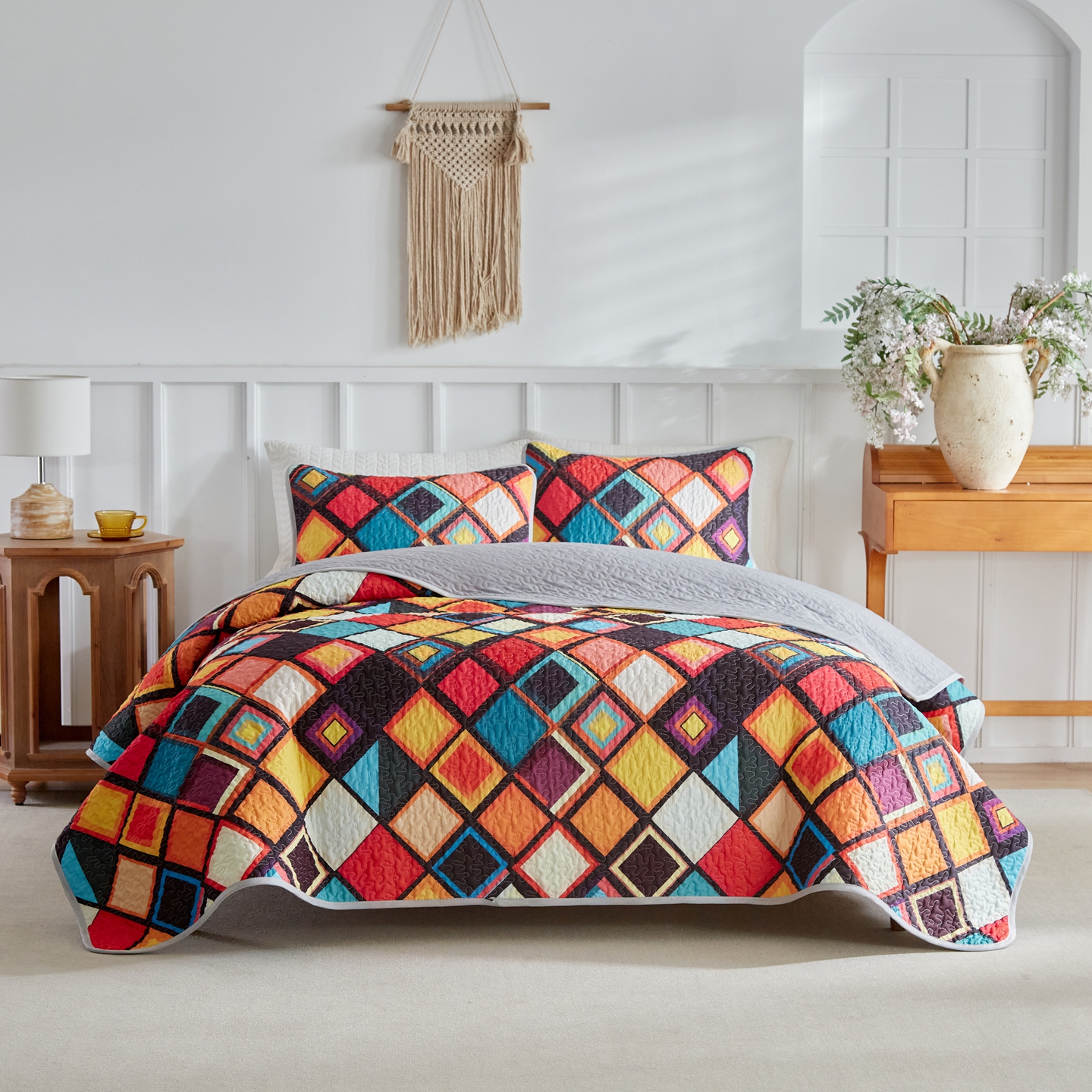 (总)温宁家纺 2025新款菱形格床盖三件套 国外薄被,菱形格-灰色,菱形格-绿色,菱形格-米色