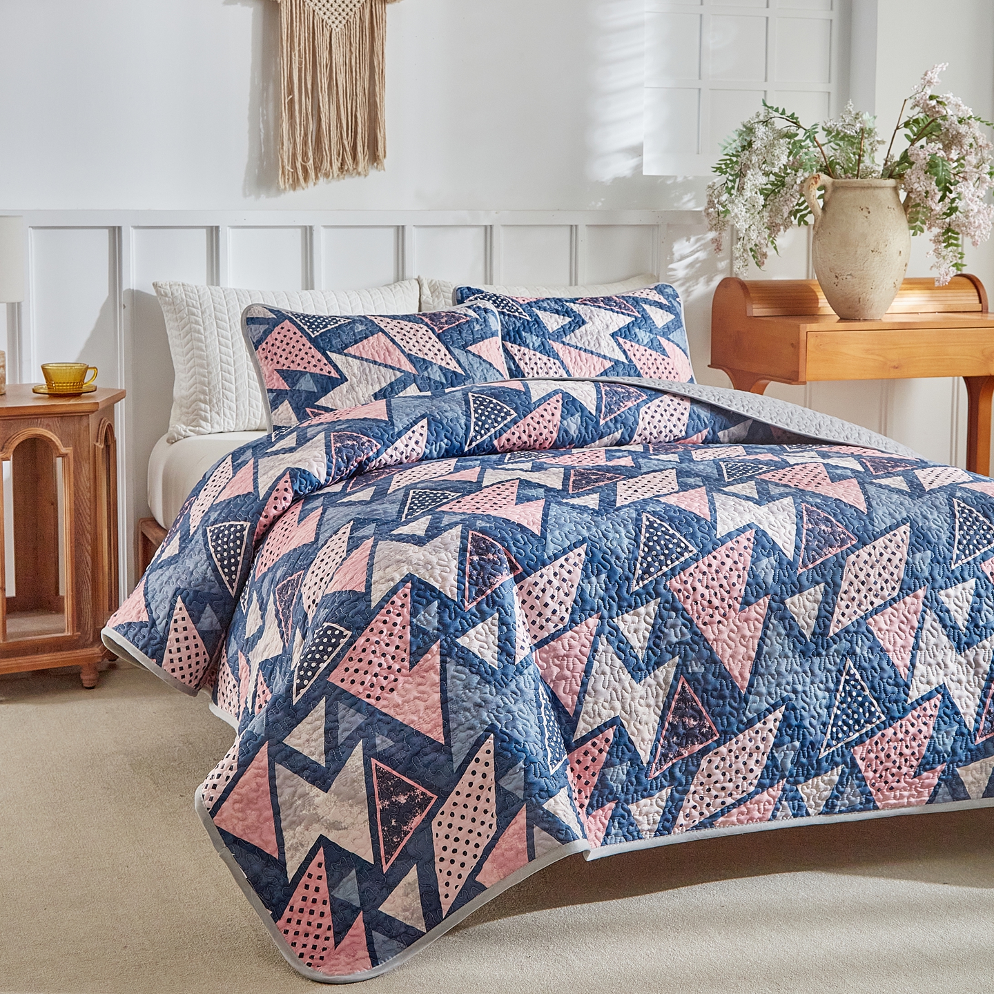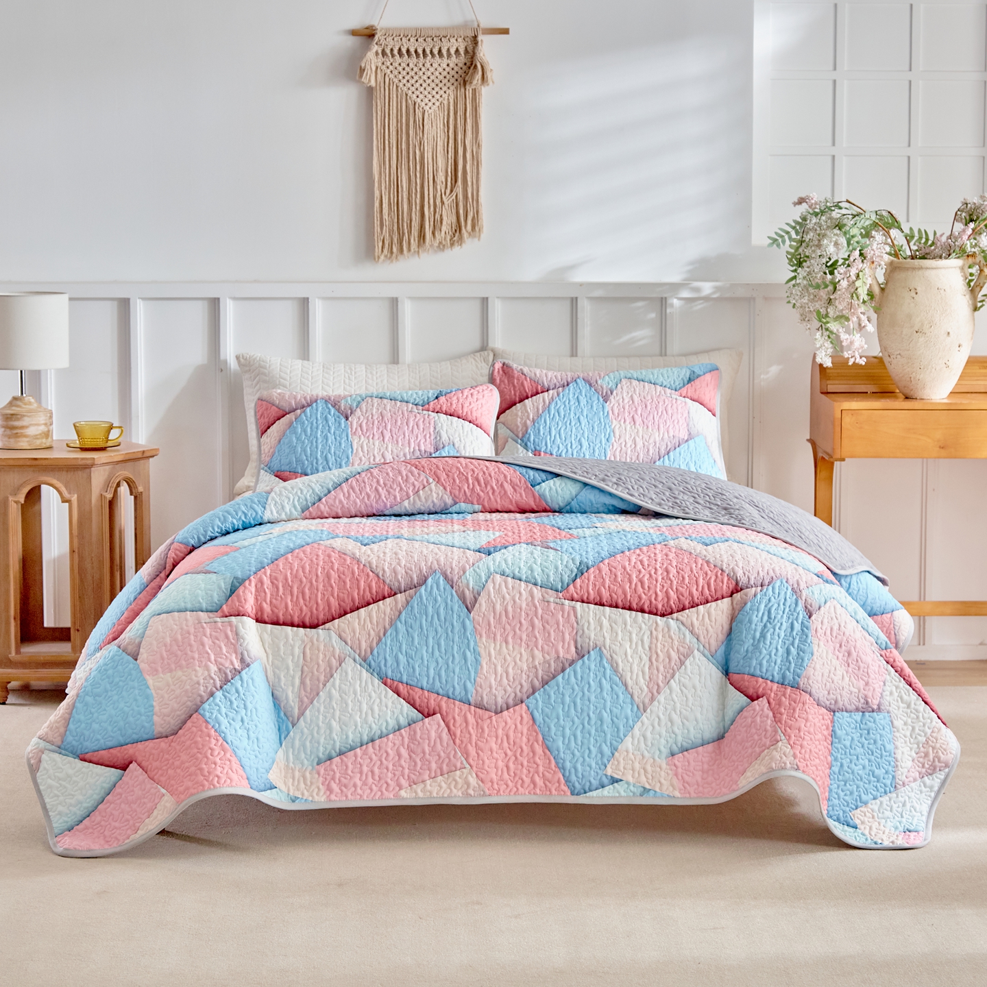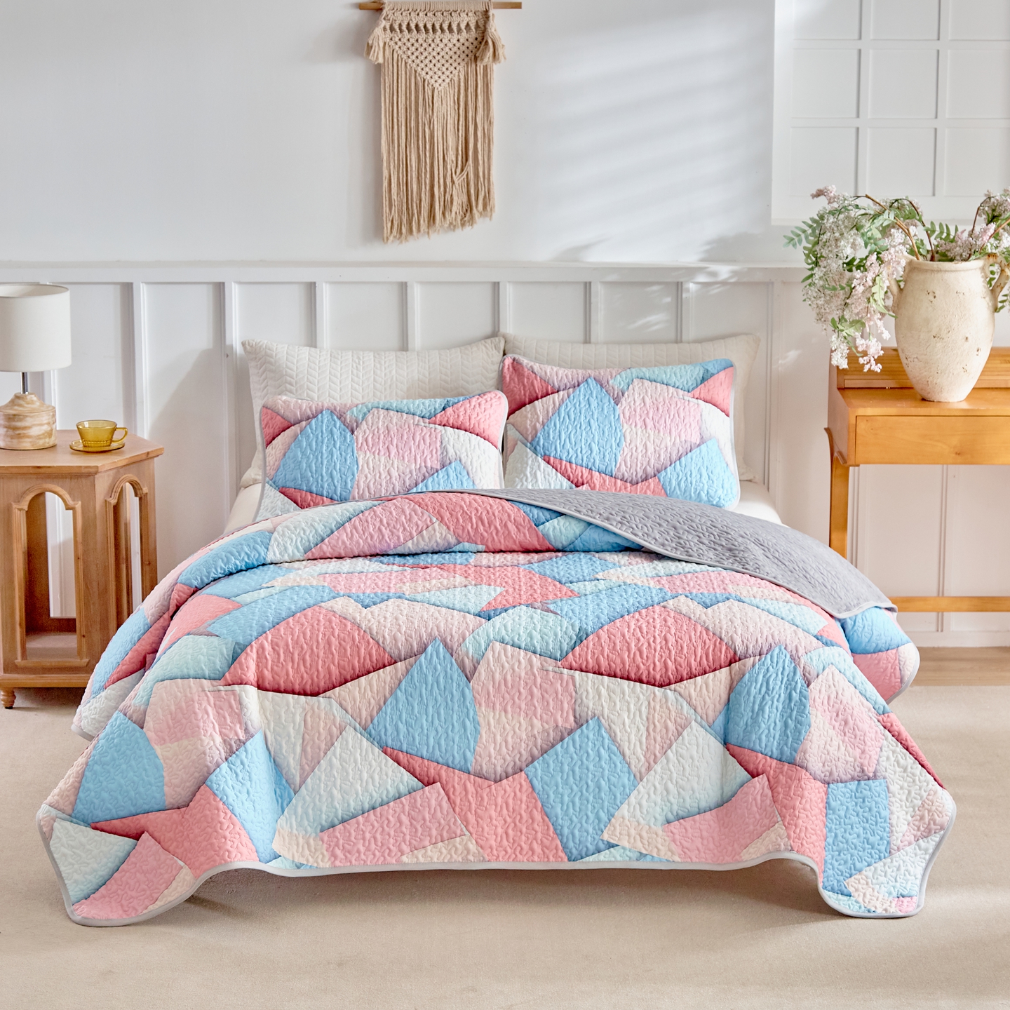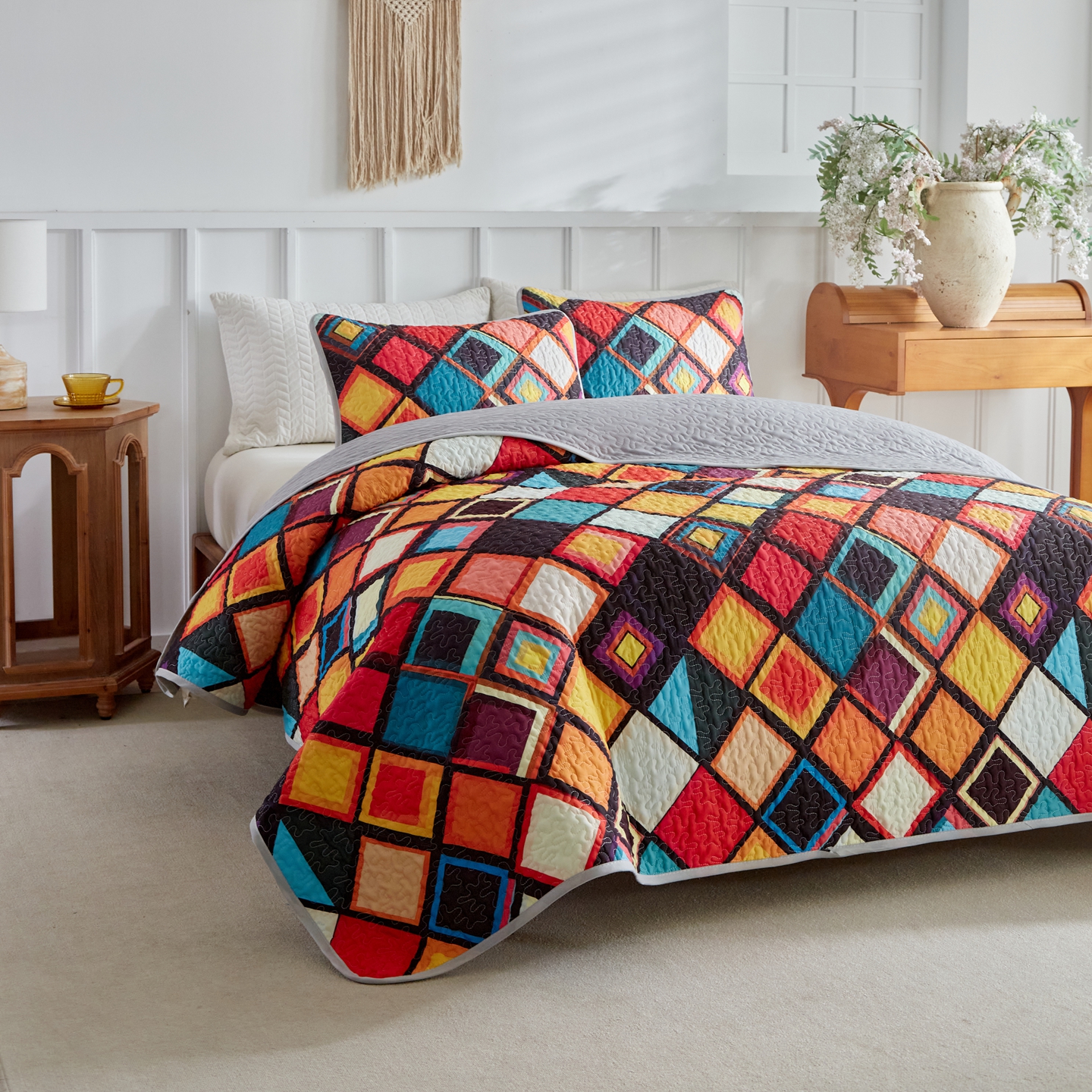 (总)温宁家纺 2025新款菱形格床盖三件套 国外薄被,菱形格-灰色,菱形格-绿色,菱形格-米色