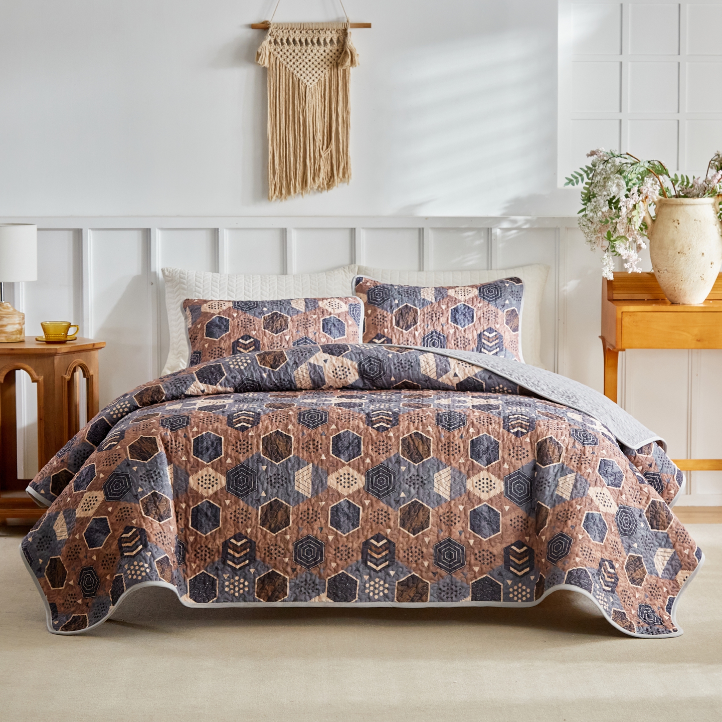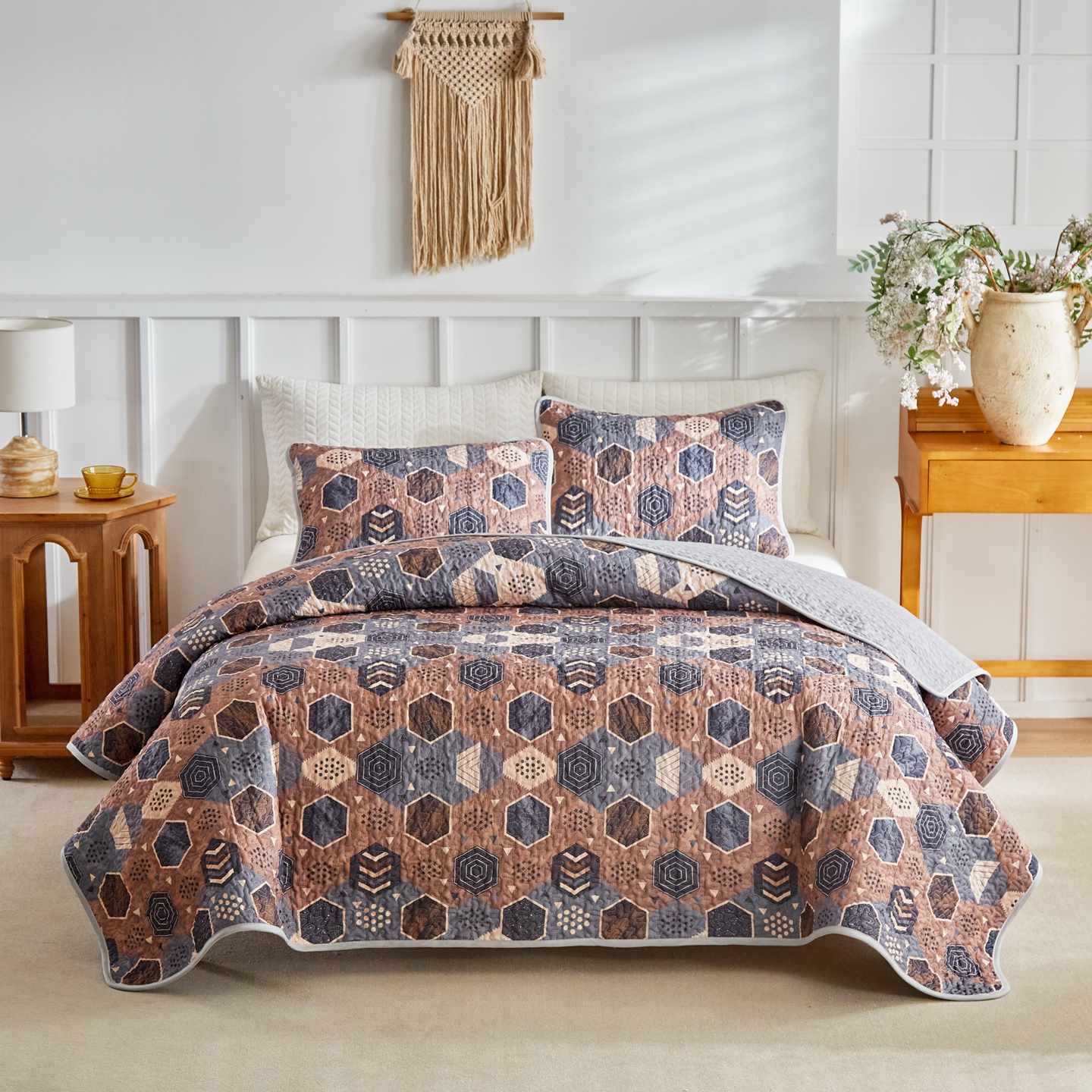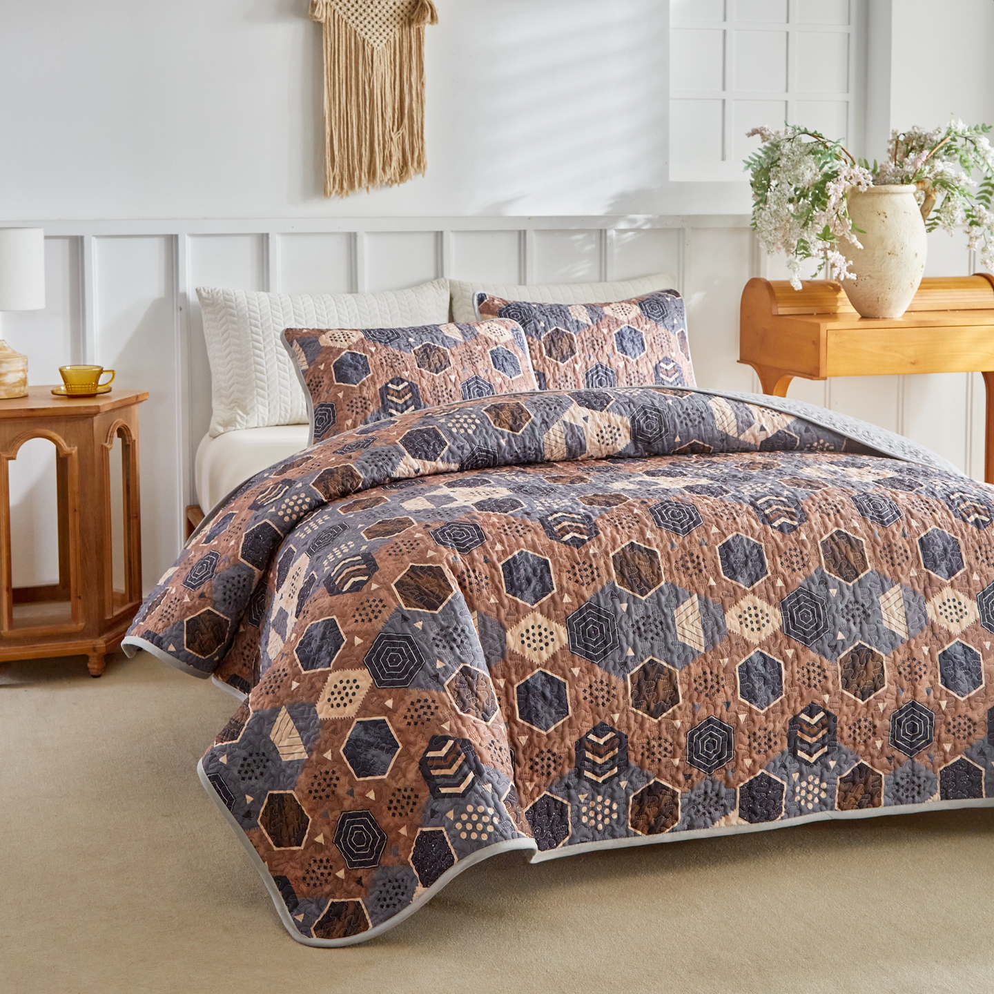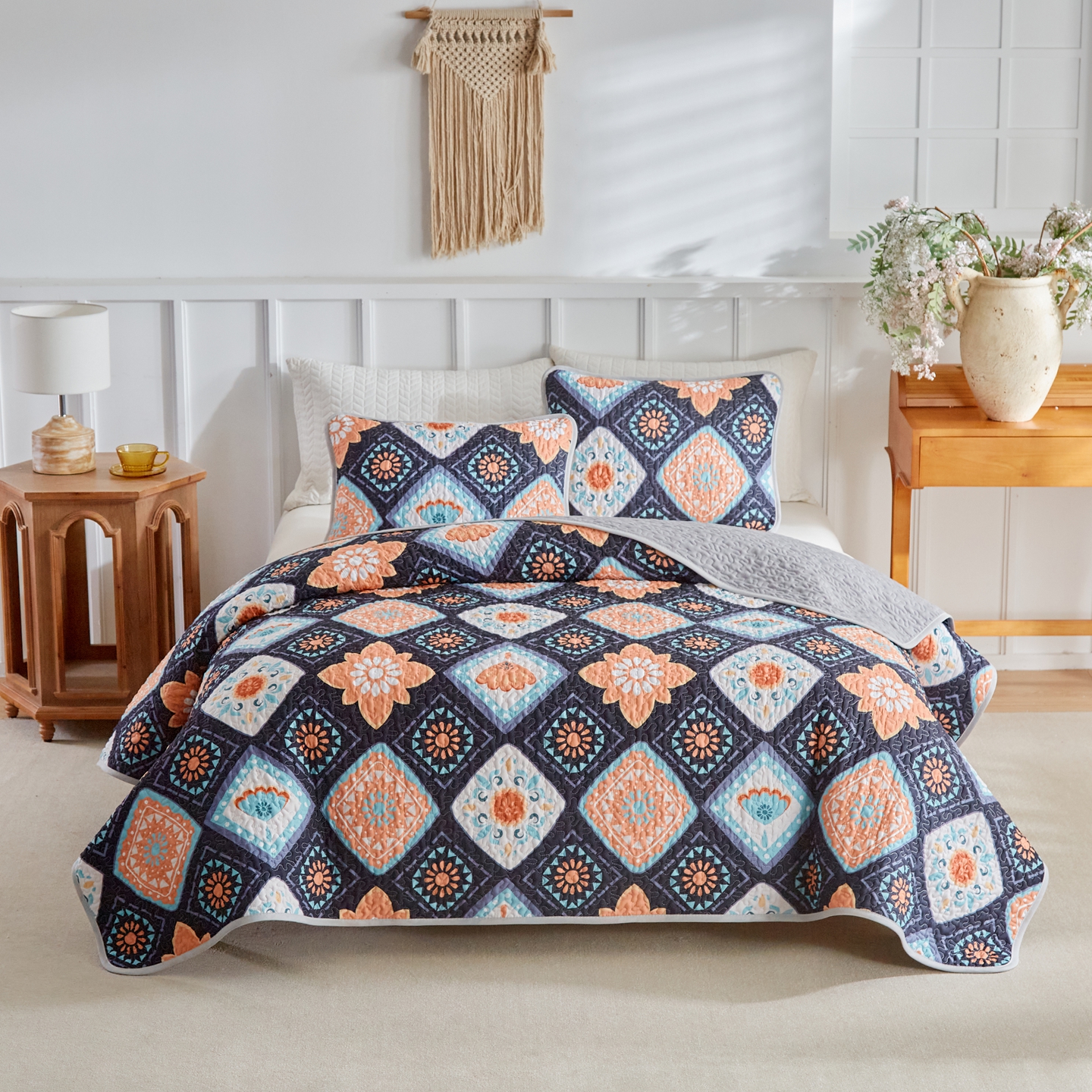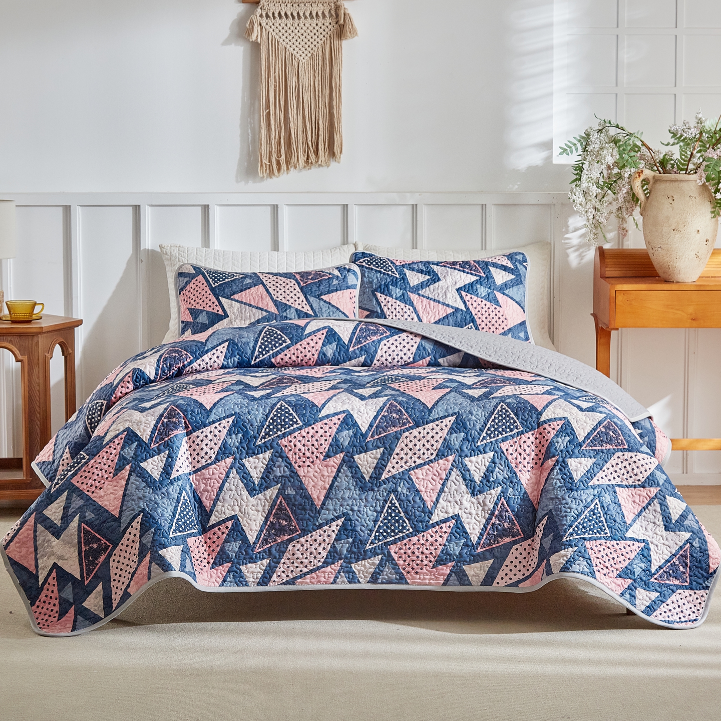 (总)温宁家纺 2025新款菱形格床盖三件套 国外薄被,菱形格-灰色,菱形格-绿色,菱形格-米色