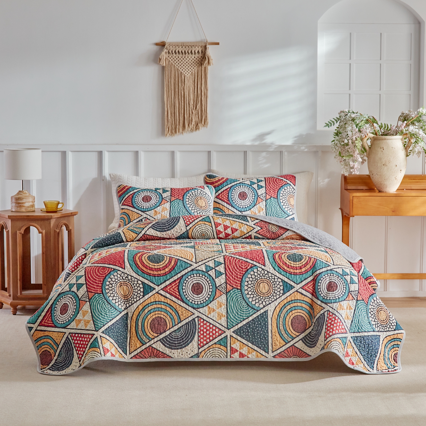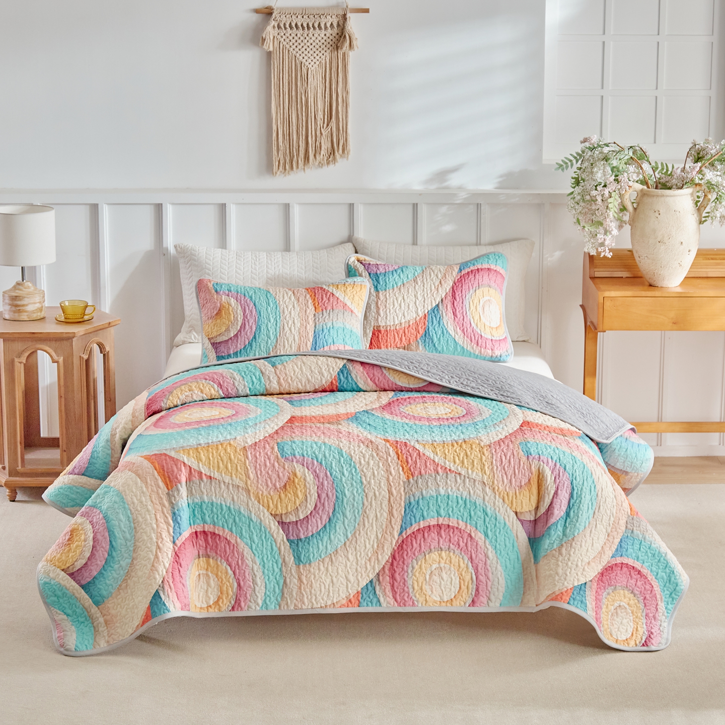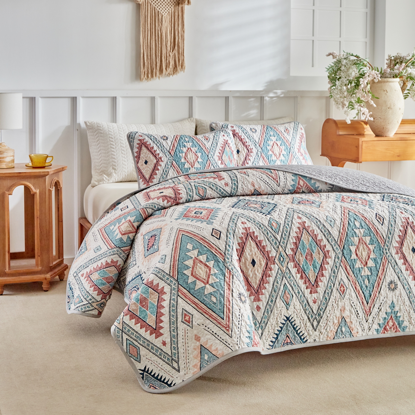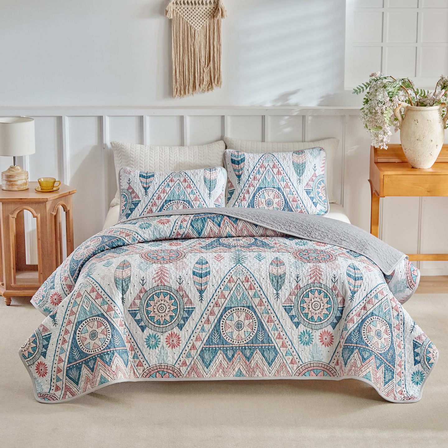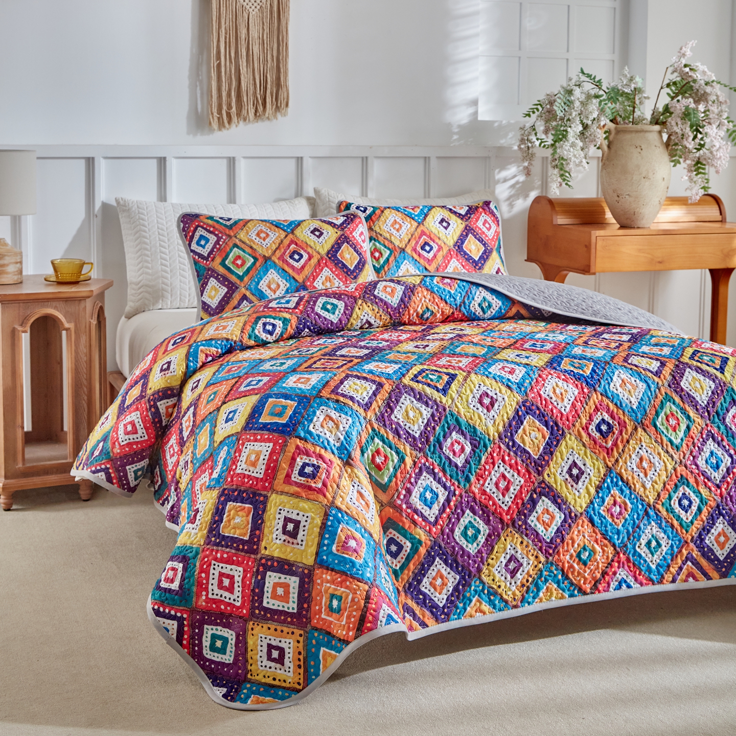 (总)温宁家纺 2025新款菱形格床盖三件套 国外薄被,菱形格-灰色,菱形格-绿色,菱形格-米色