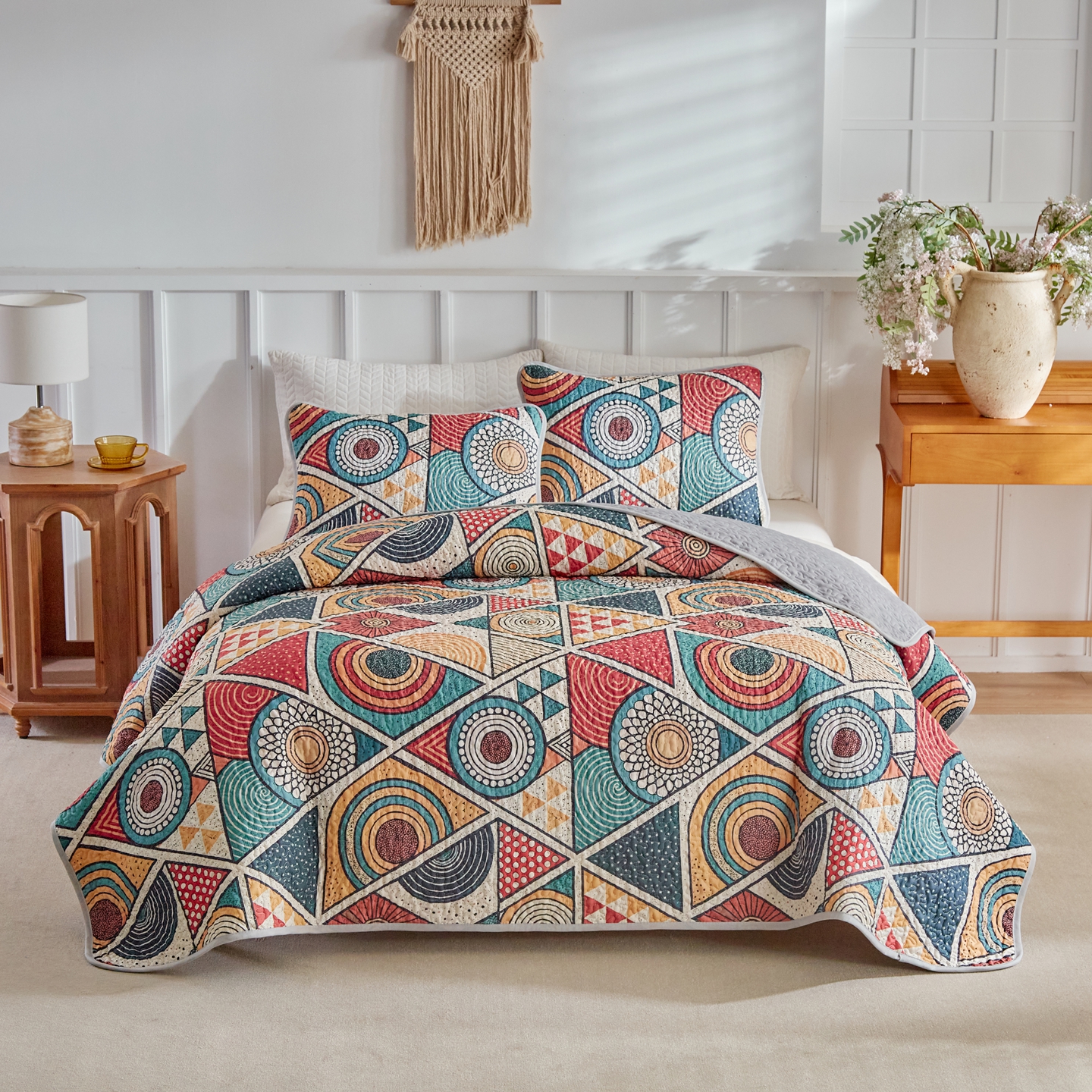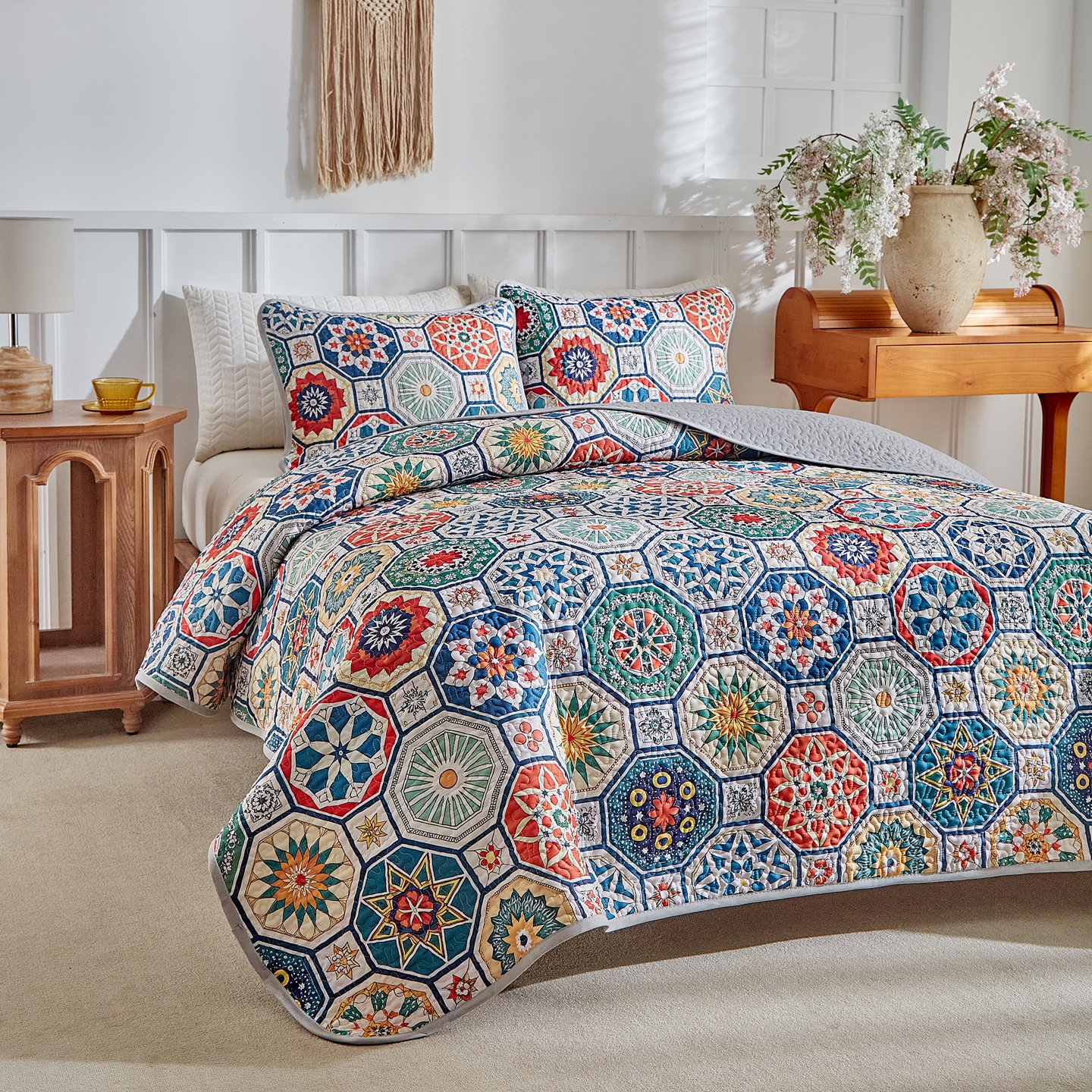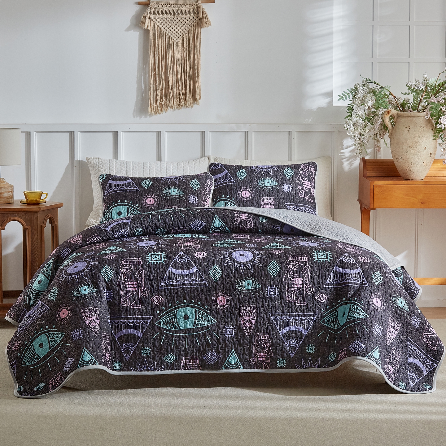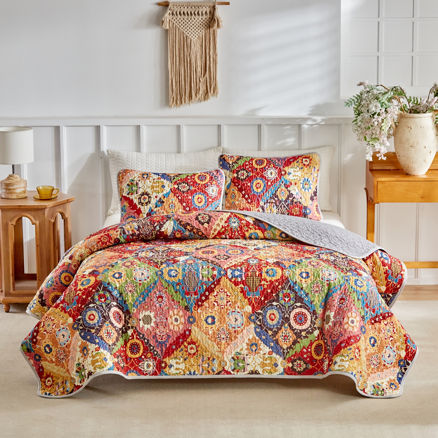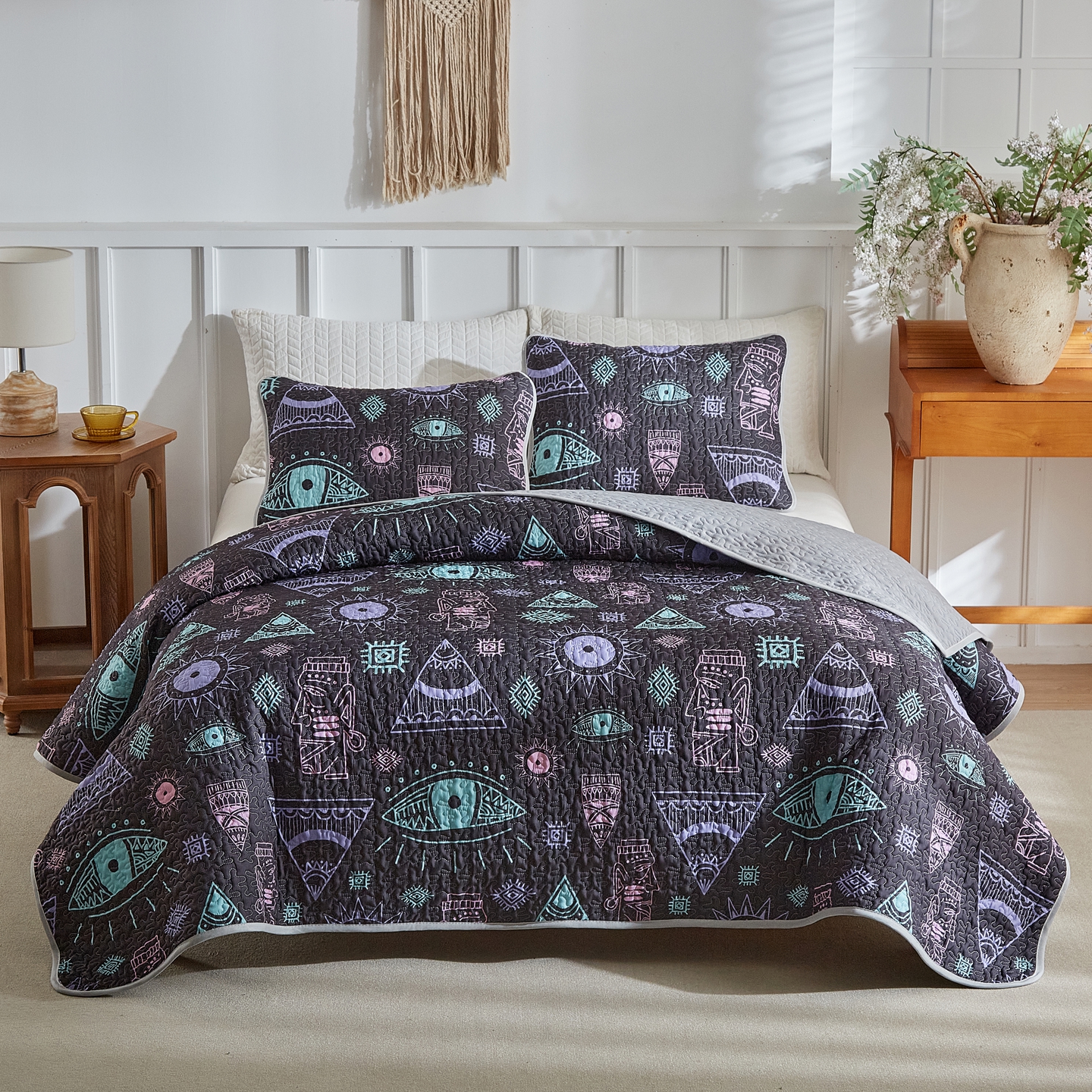 (总)温宁家纺 2025新款菱形格床盖三件套 国外薄被,菱形格-灰色,菱形格-绿色,菱形格-米色