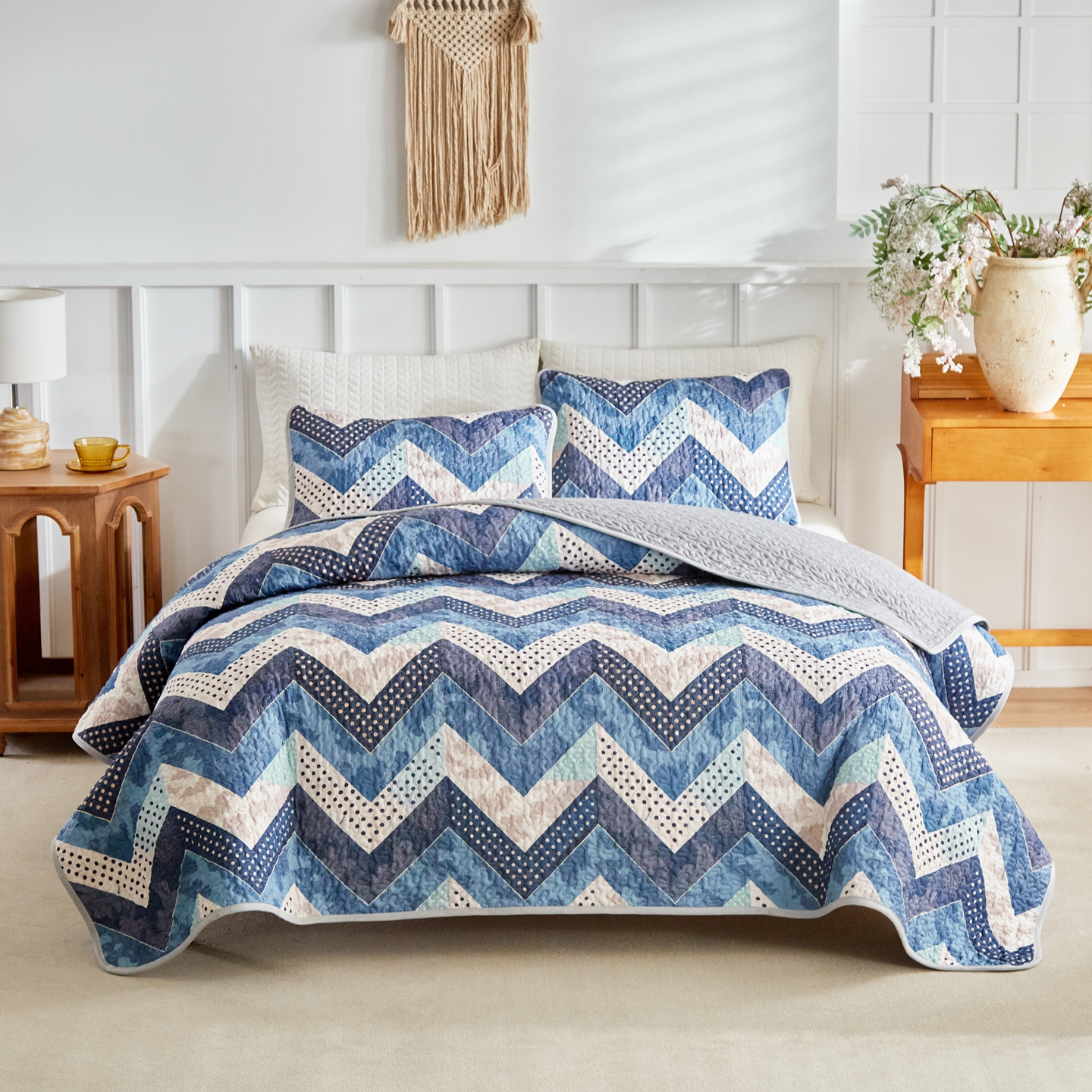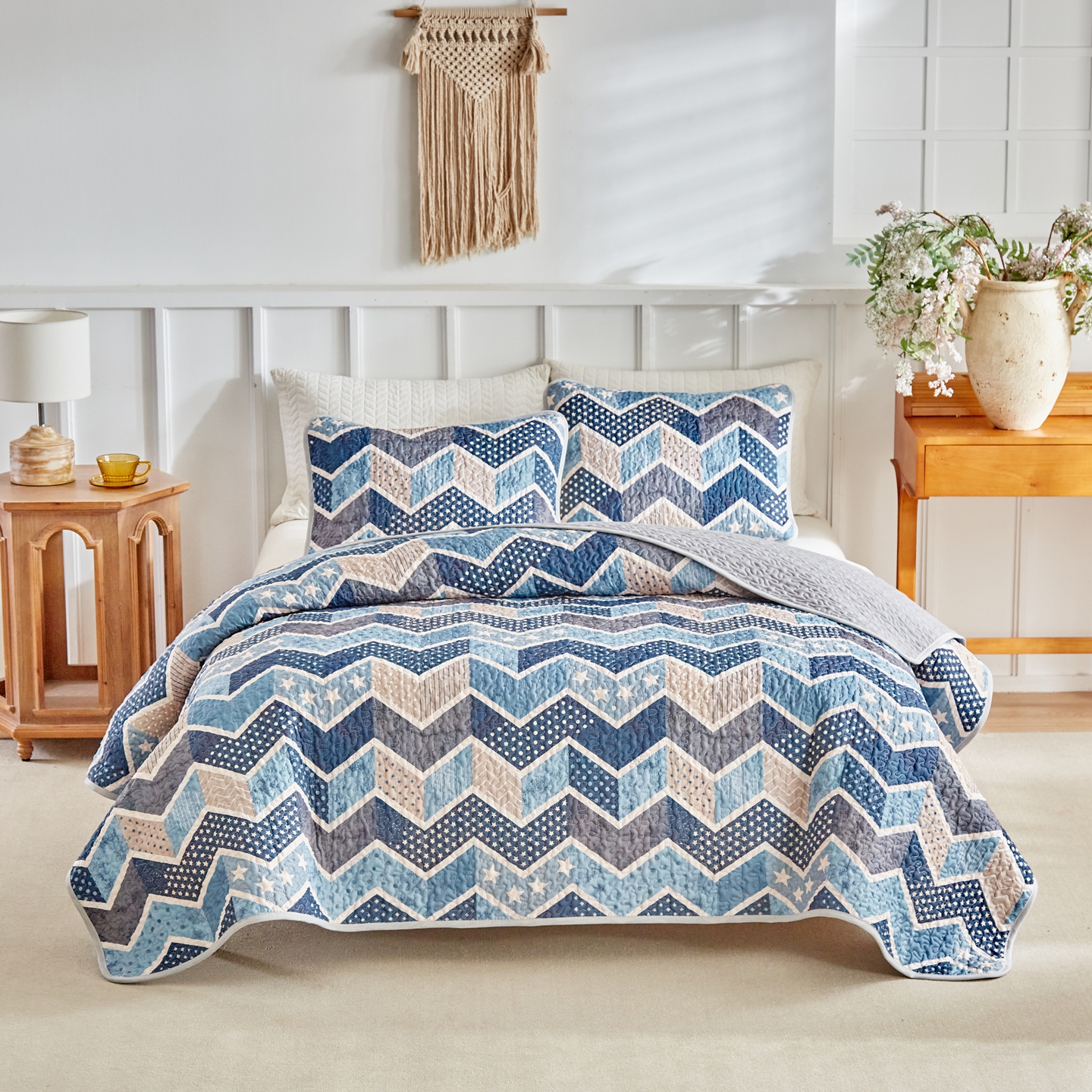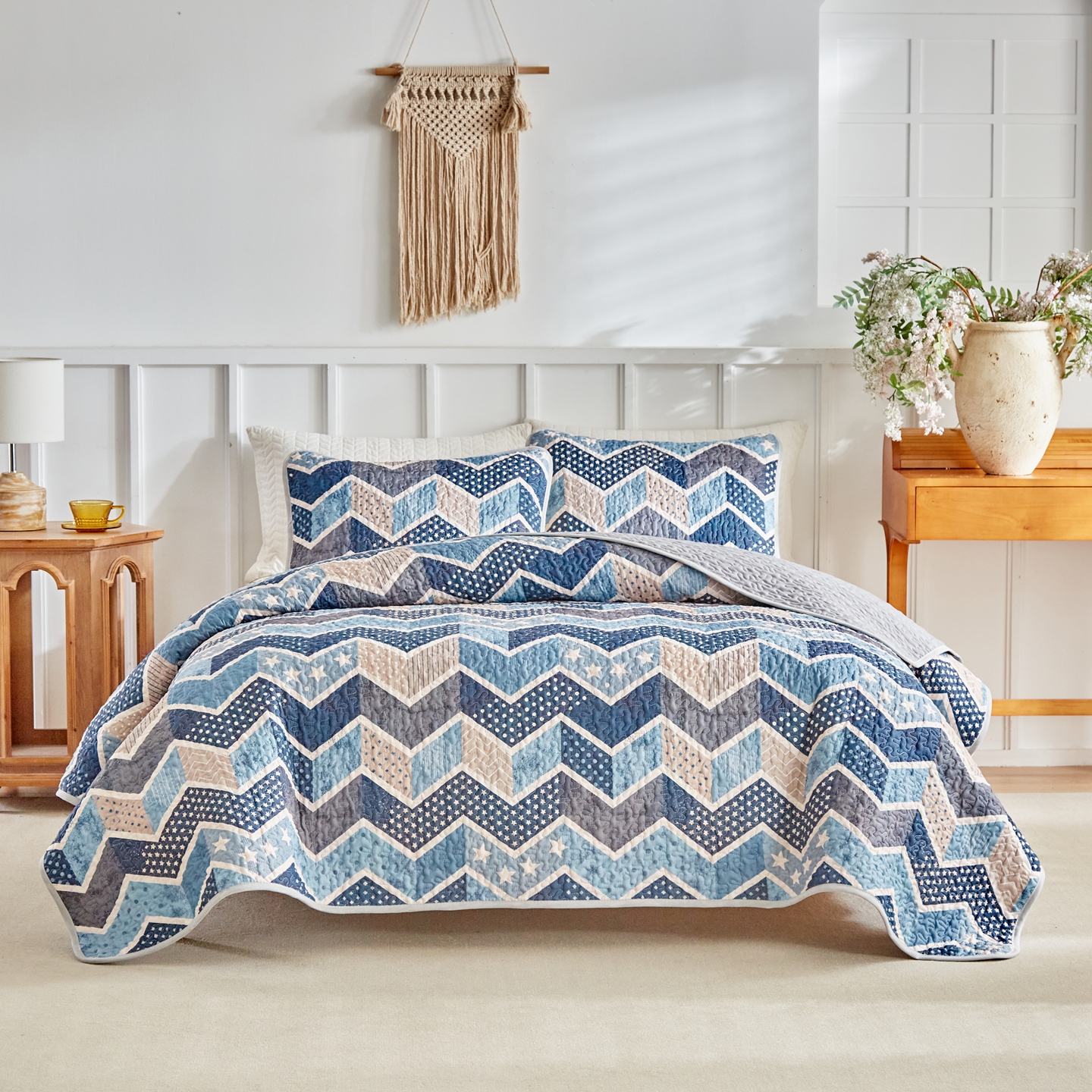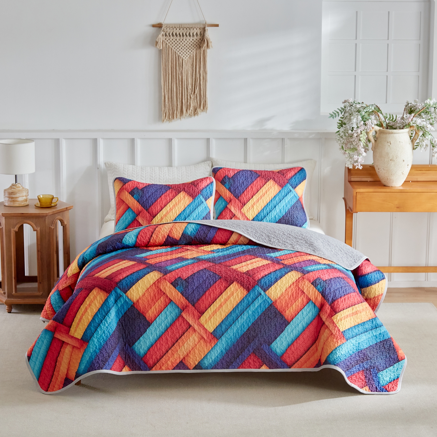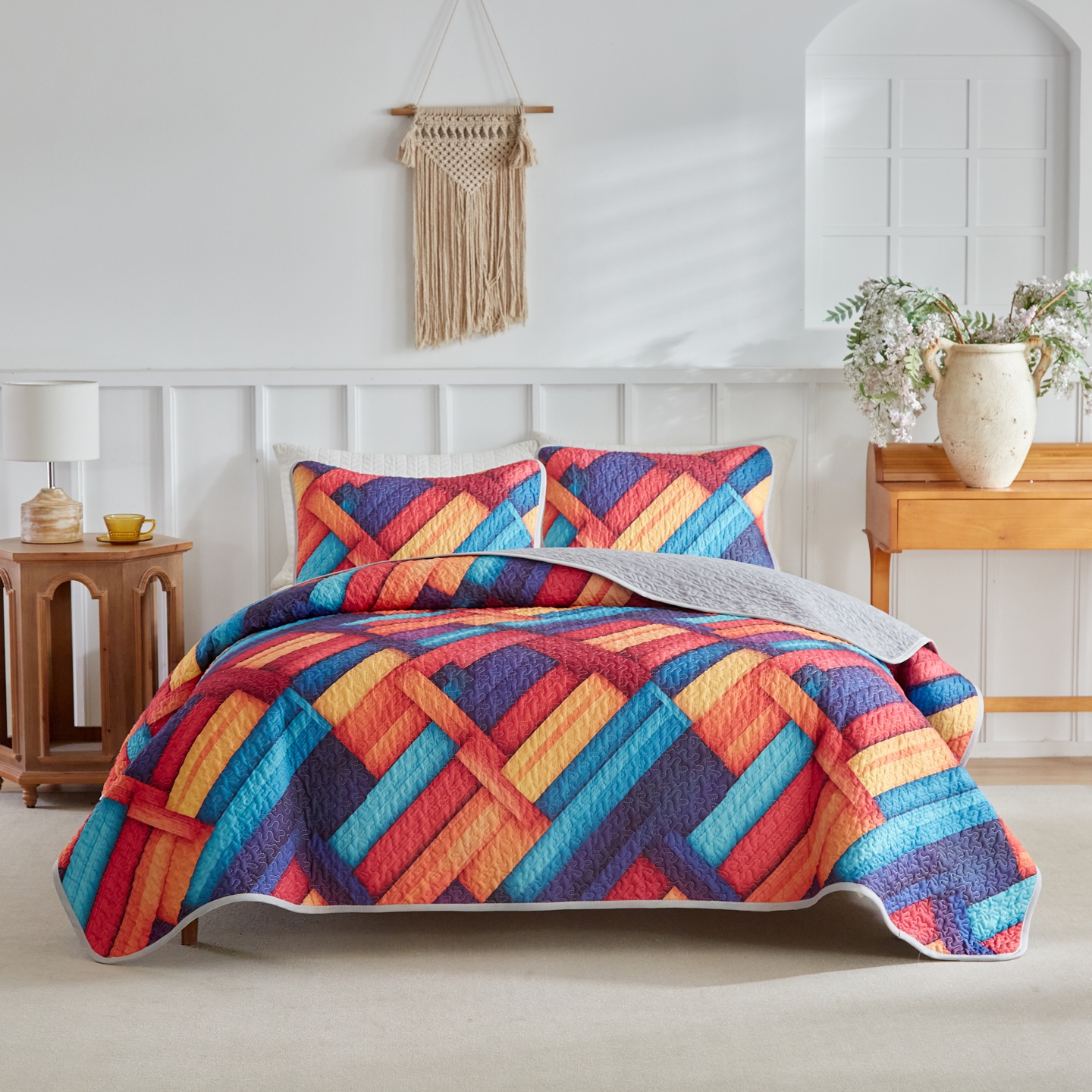 (总)温宁家纺 2025新款长方格床盖三件套 国外薄被,长方格-灰色,长方格-绿色,长方格-米色