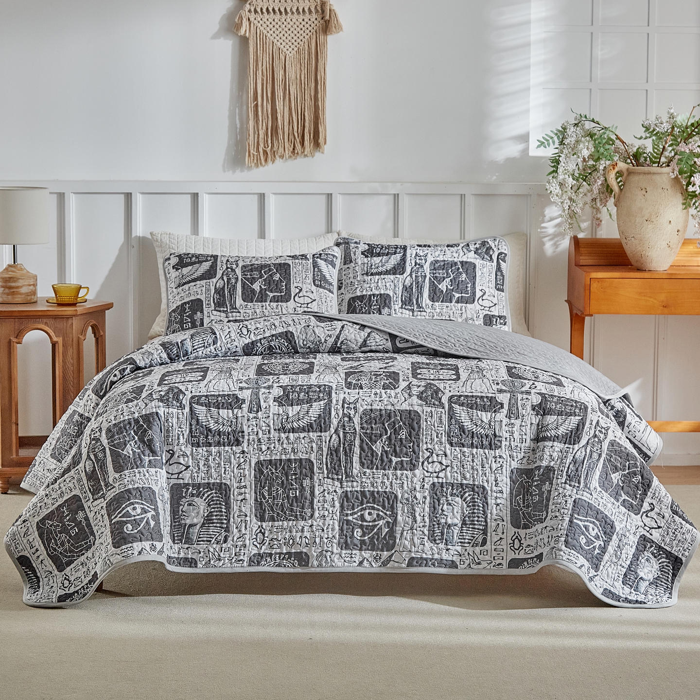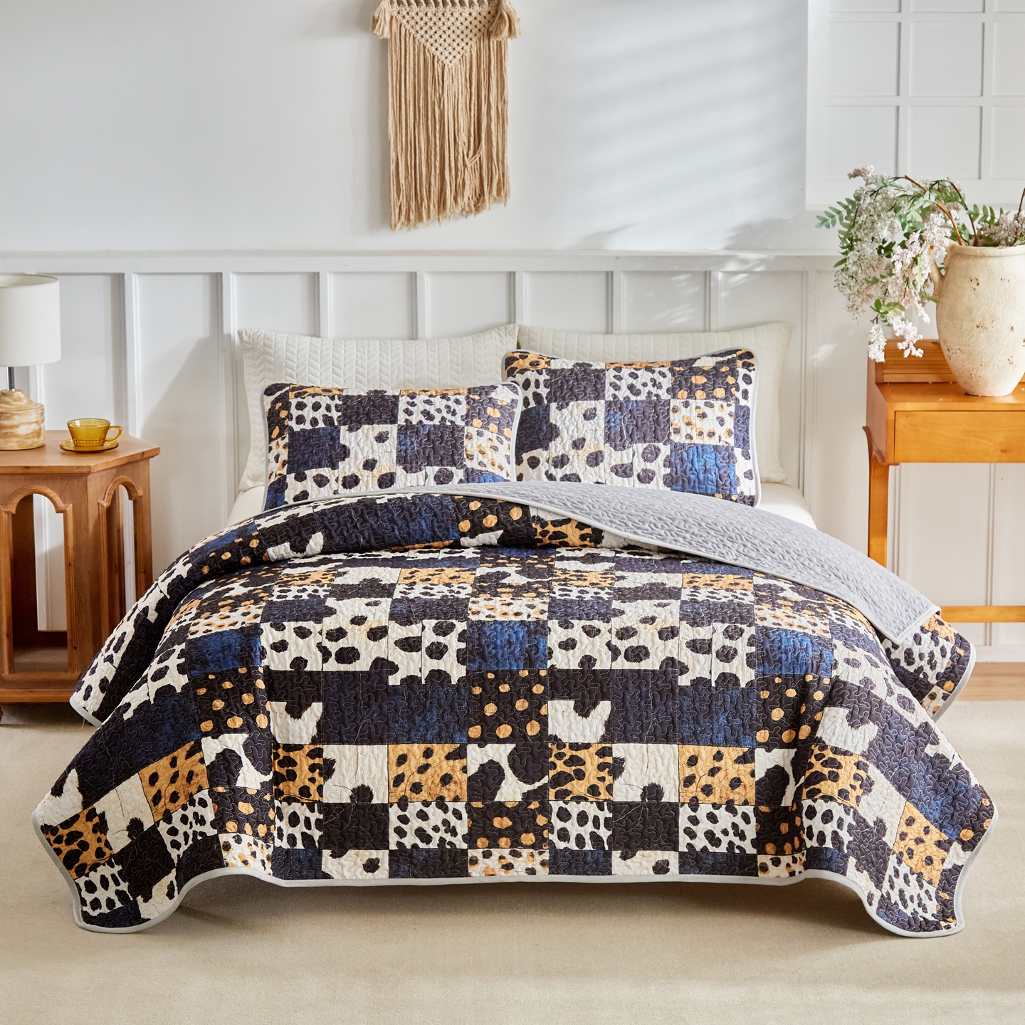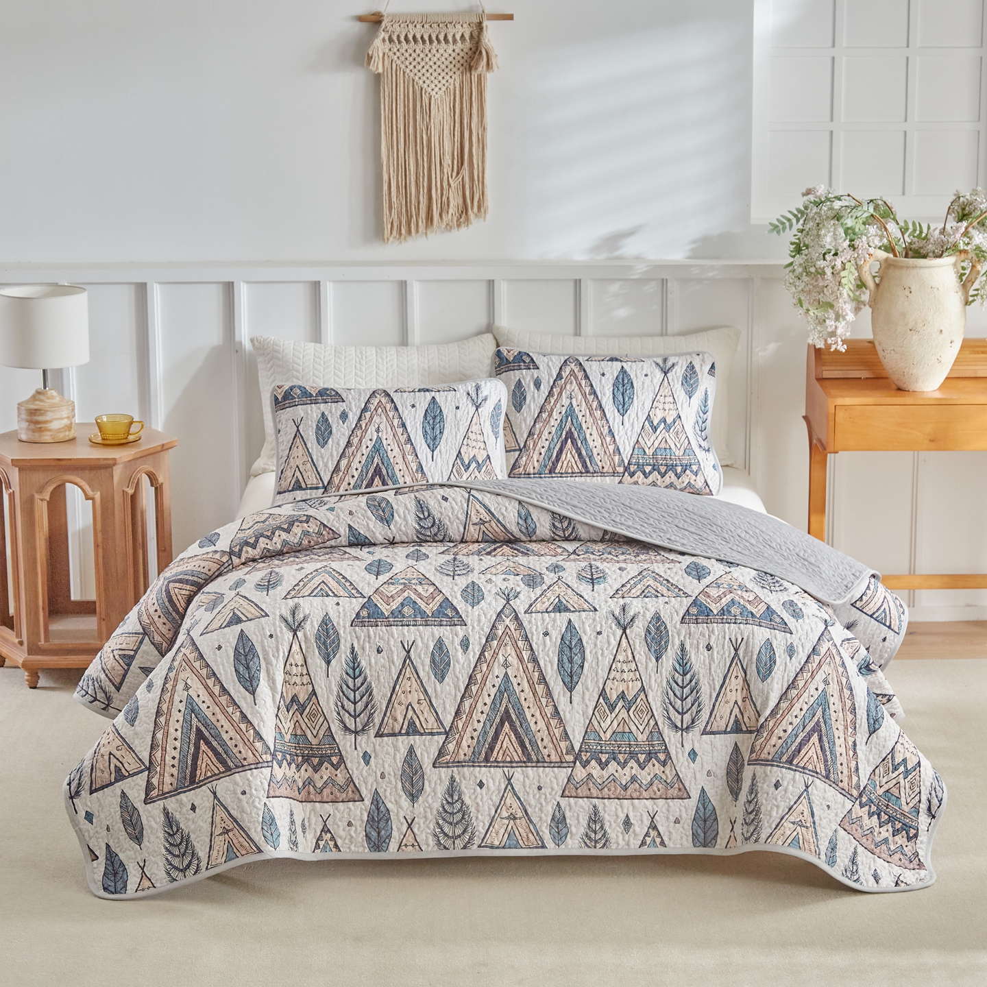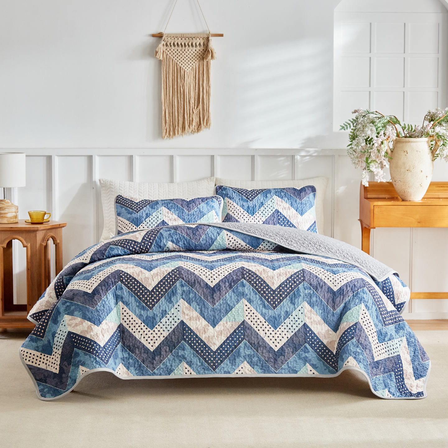 (总)温宁家纺 2025新款长方格床盖三件套 国外薄被,长方格-灰色,长方格-绿色,长方格-米色