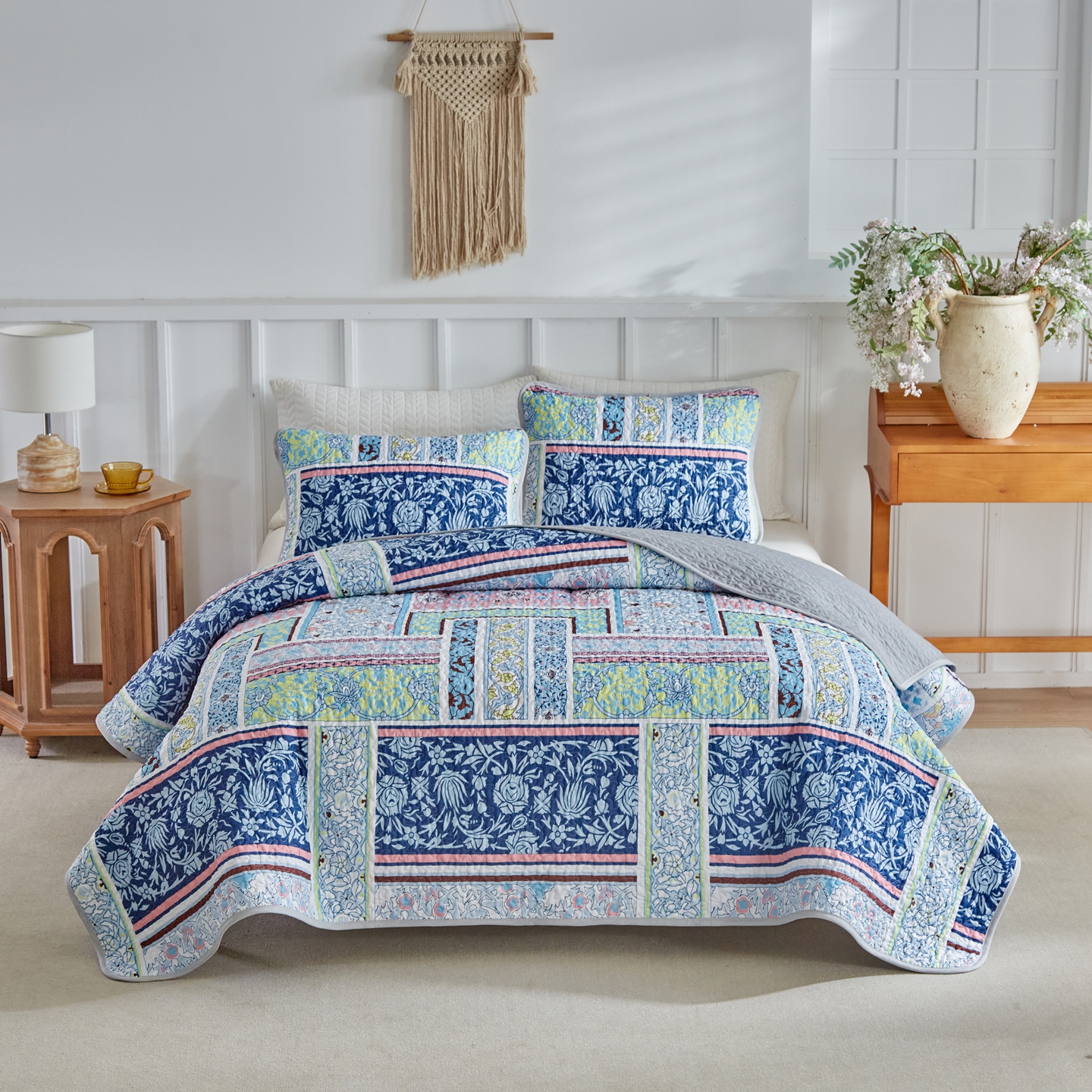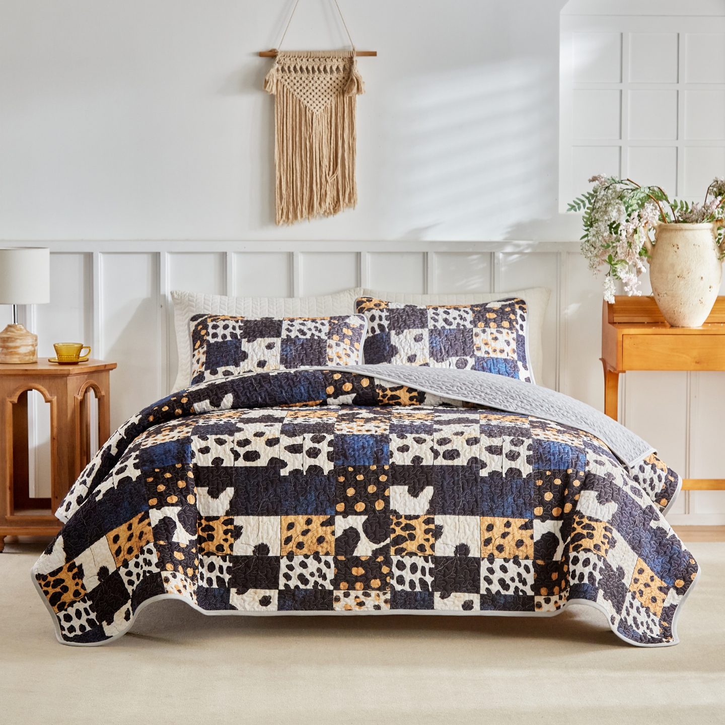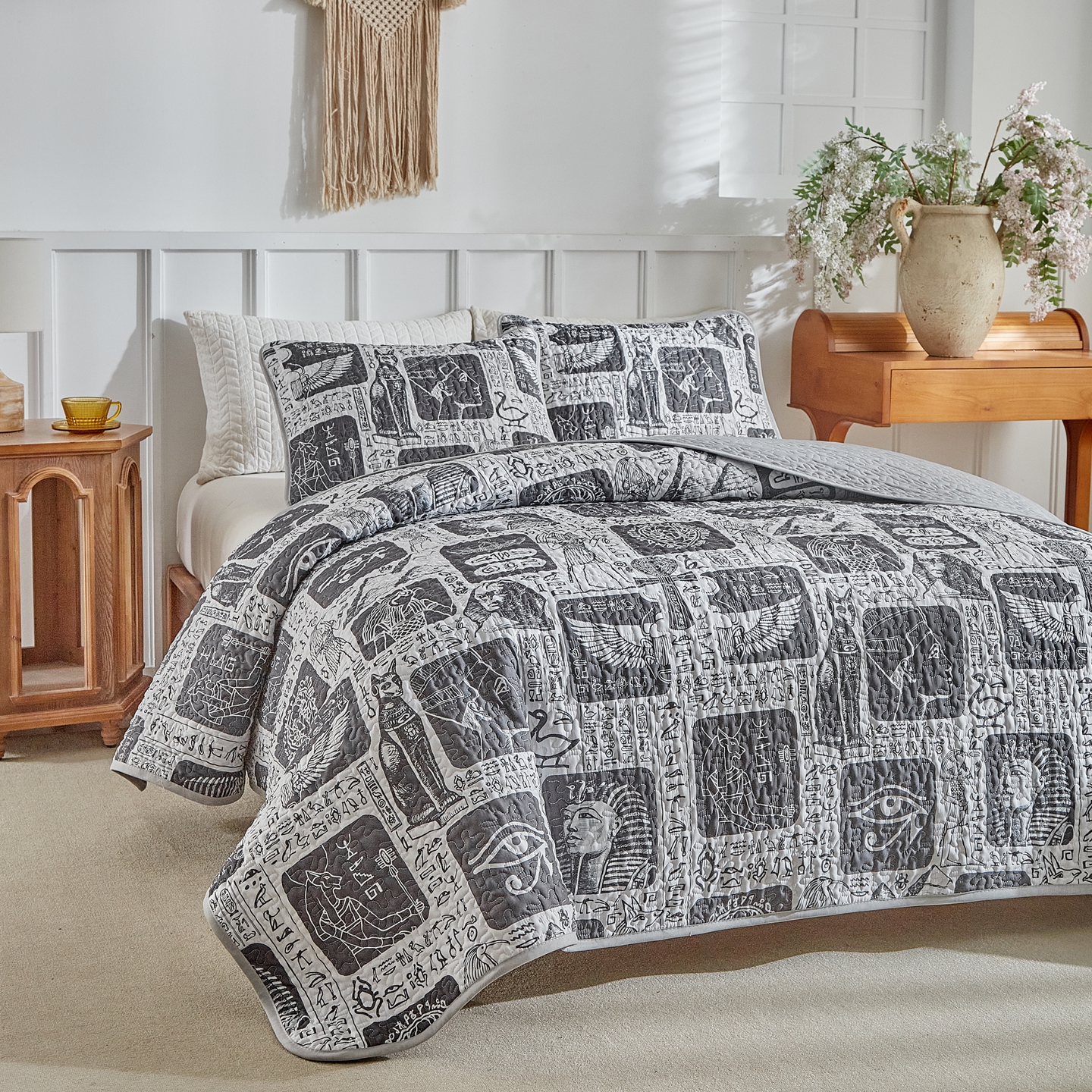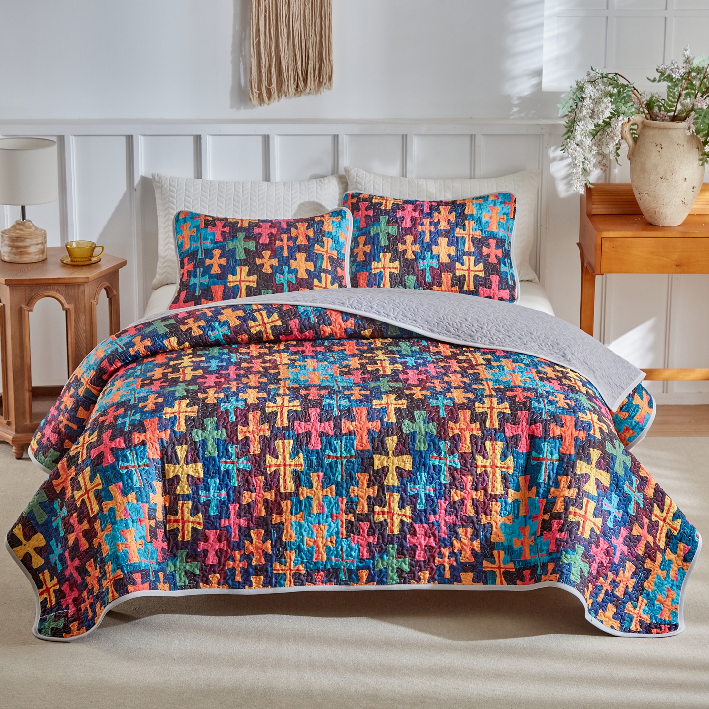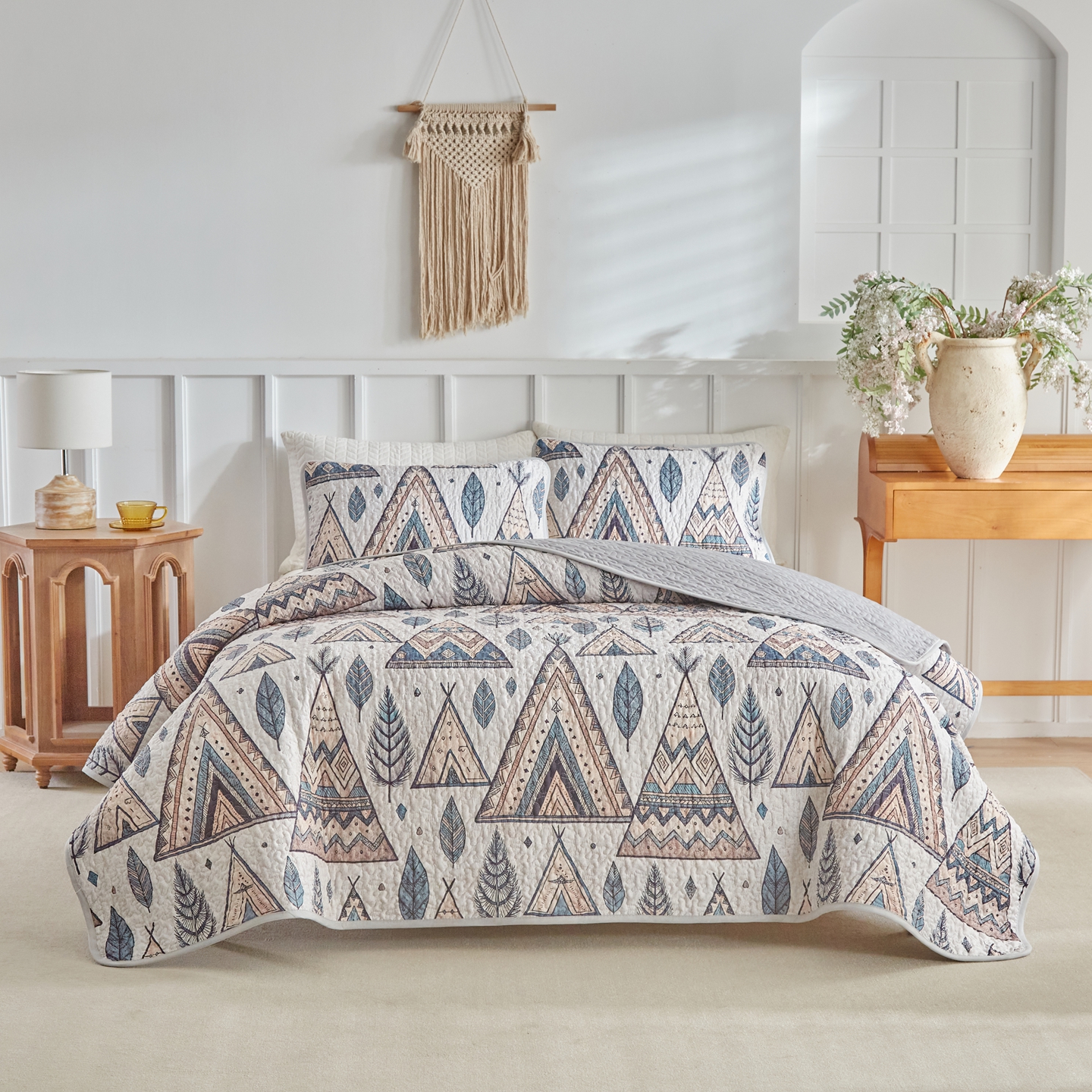 (总)温宁家纺 2025新款长方格床盖三件套 国外薄被,长方格-灰色,长方格-绿色,长方格-米色