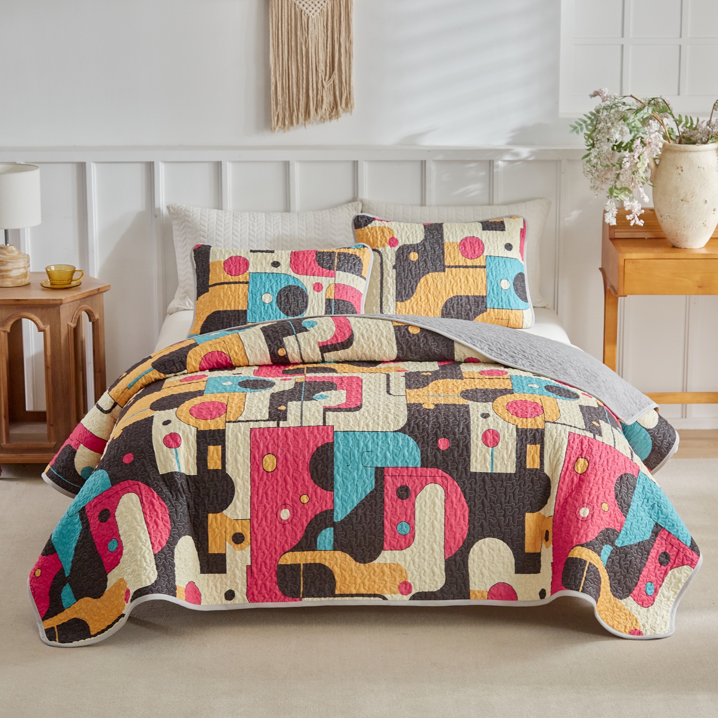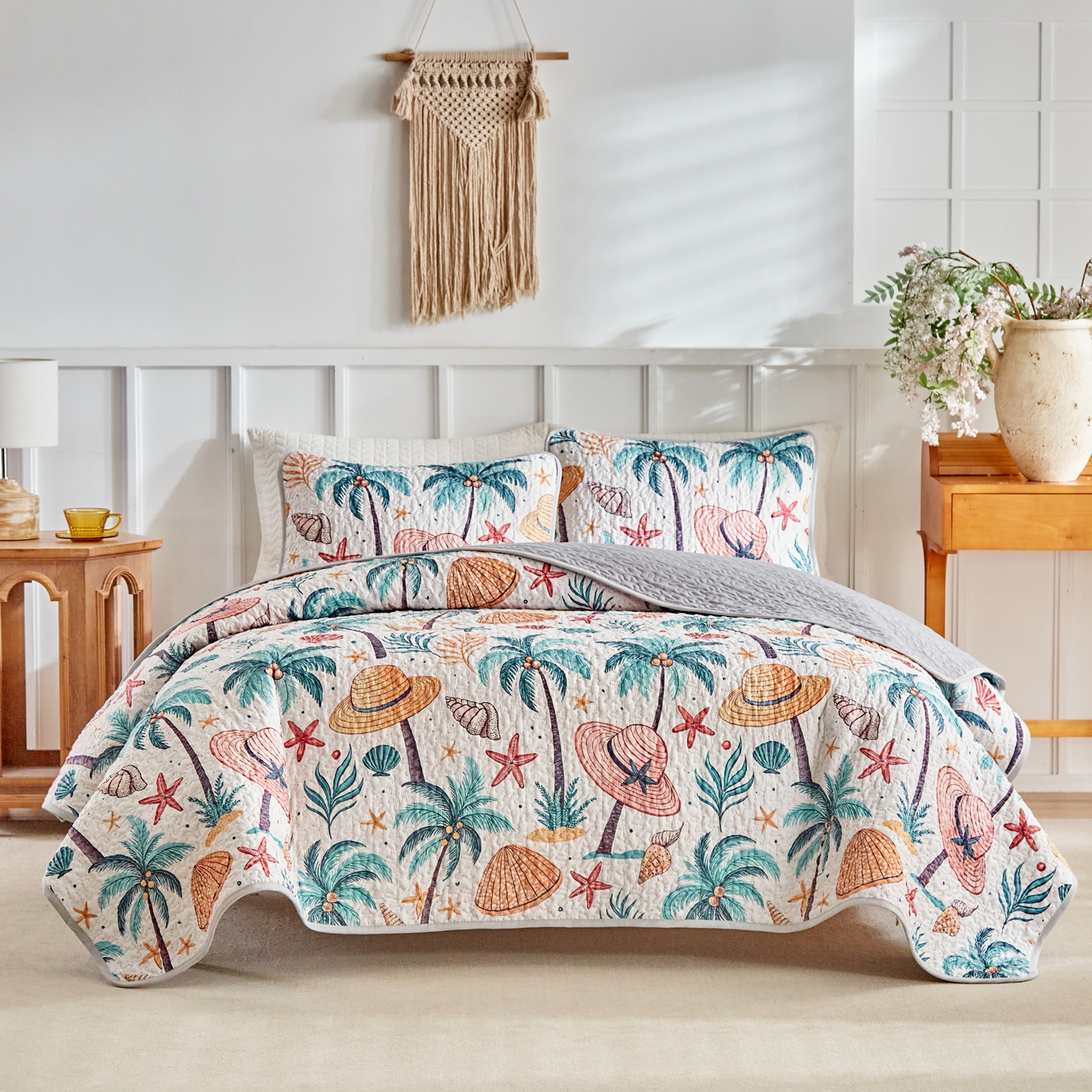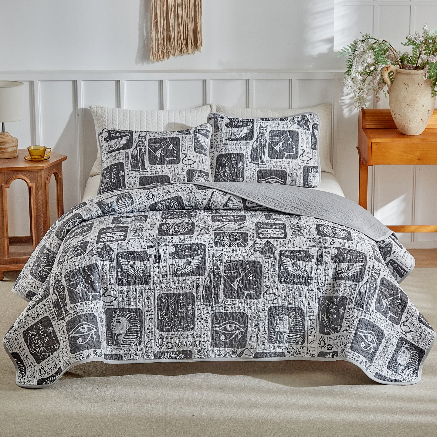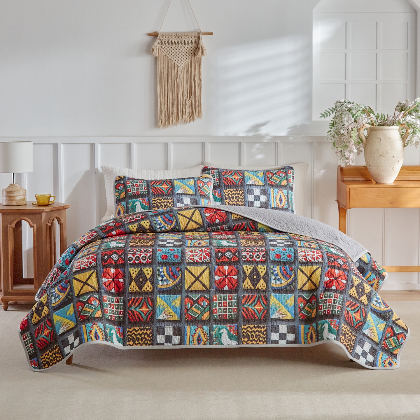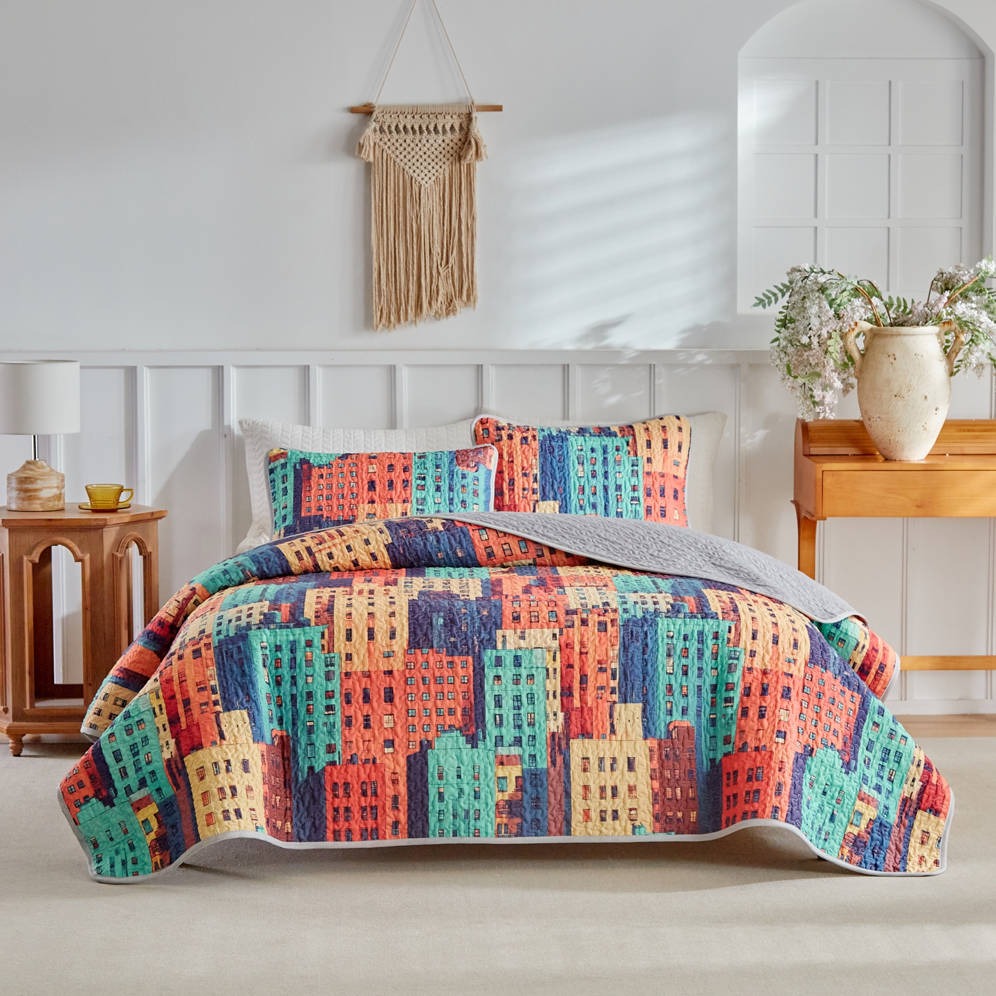 (总)温宁家纺 2025新款长方格床盖三件套 国外薄被,长方格-灰色,长方格-绿色,长方格-米色