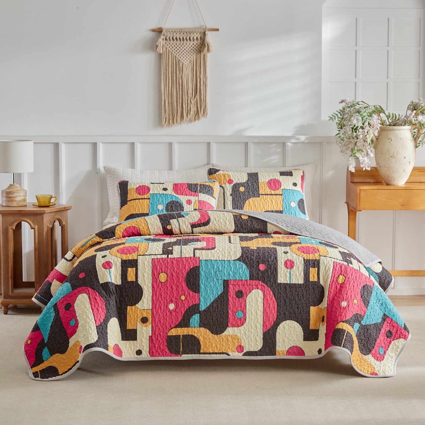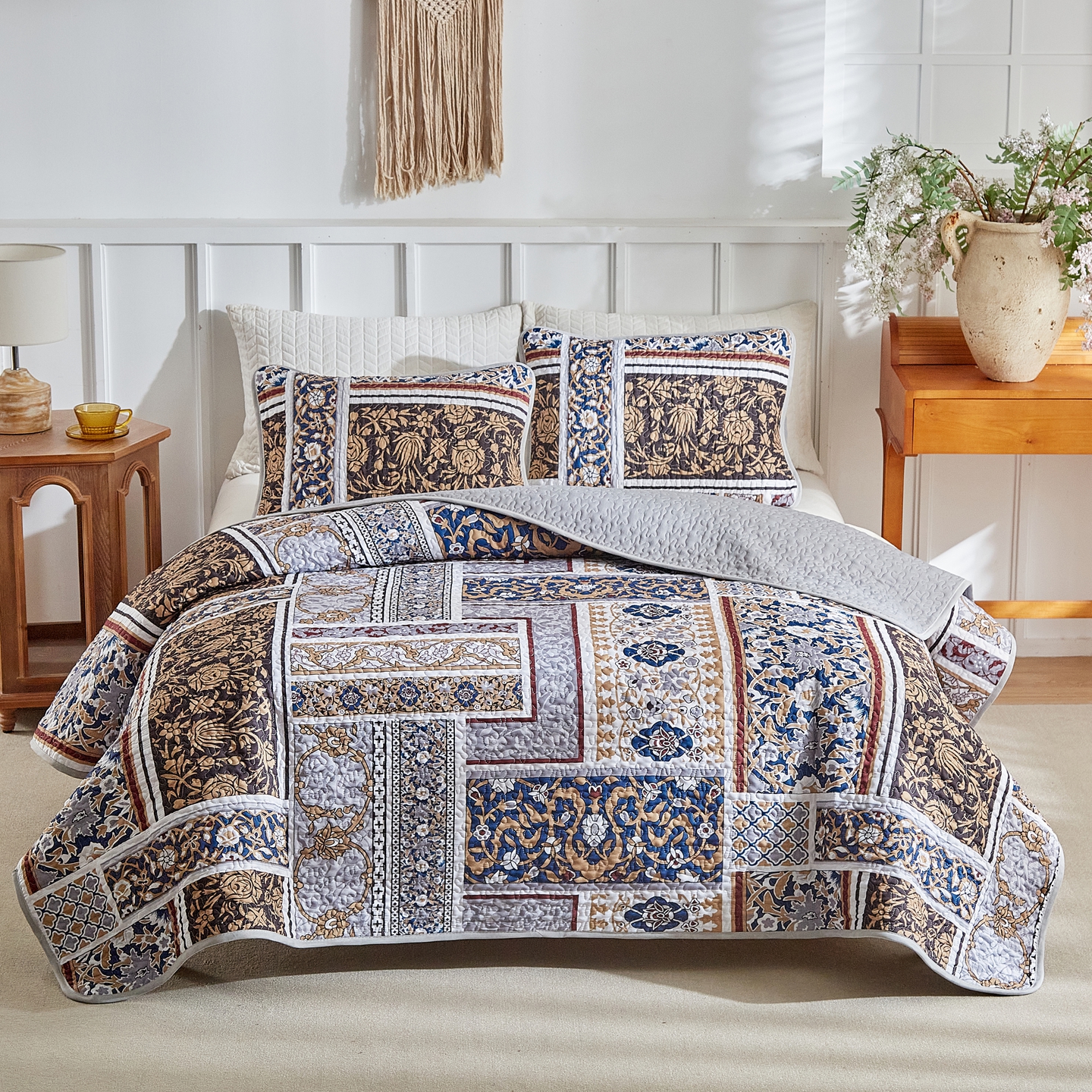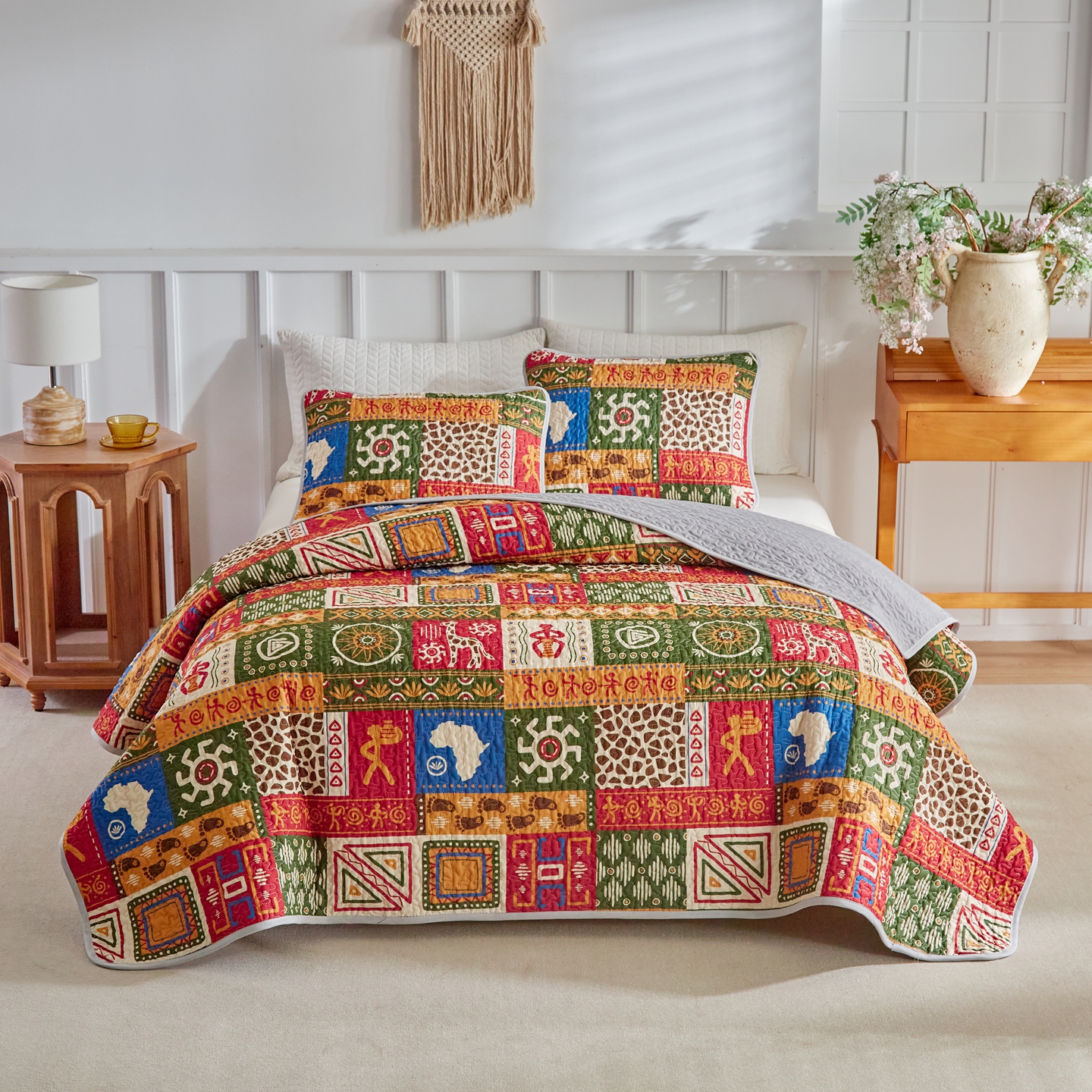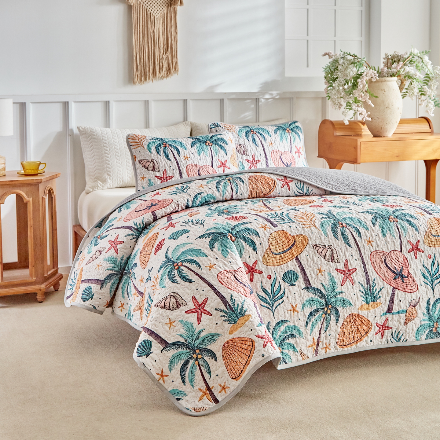 (总)温宁家纺 2025新款长方格床盖三件套 国外薄被,长方格-灰色,长方格-绿色,长方格-米色