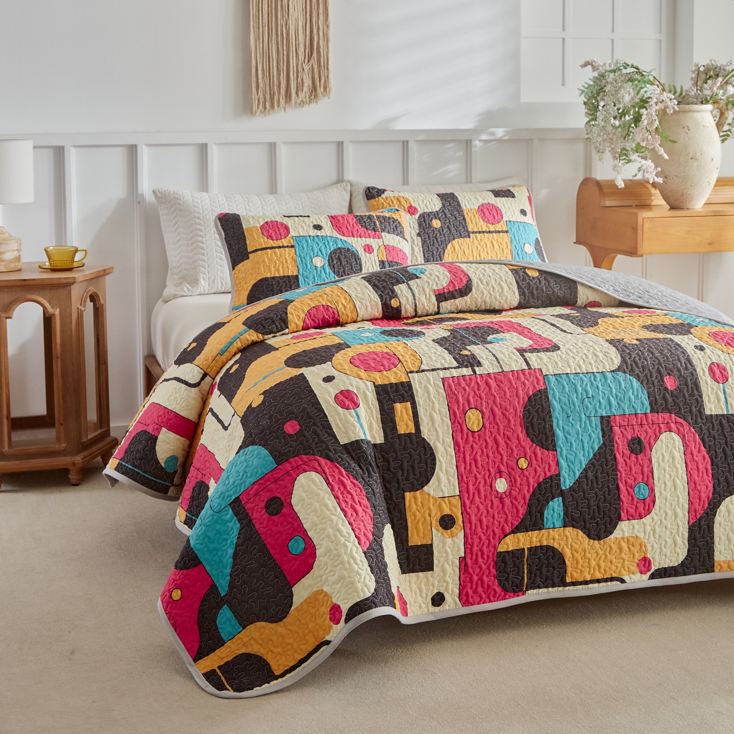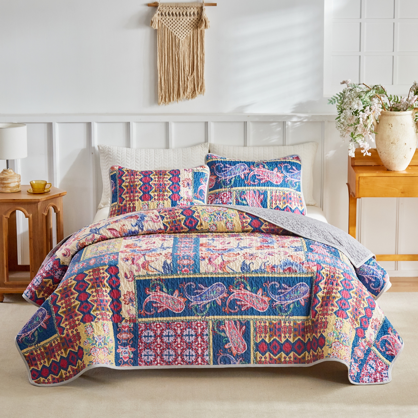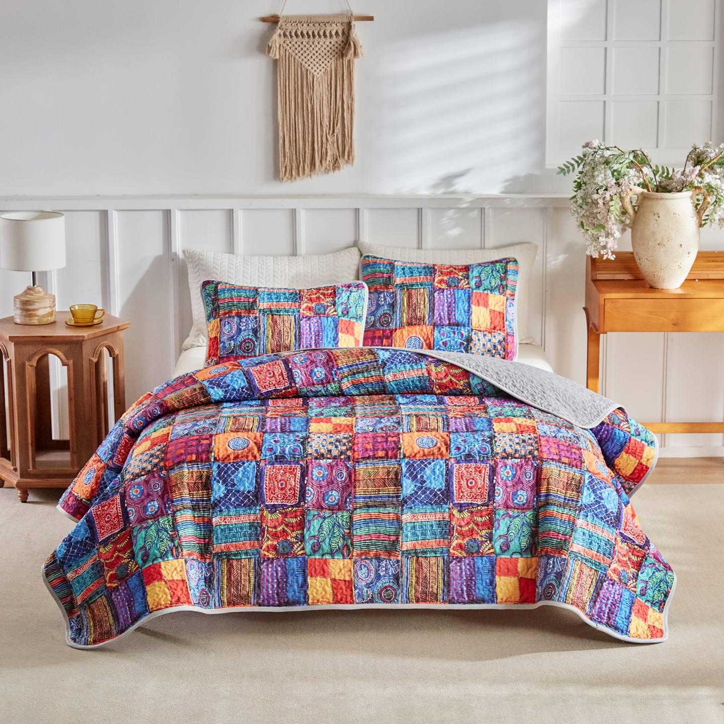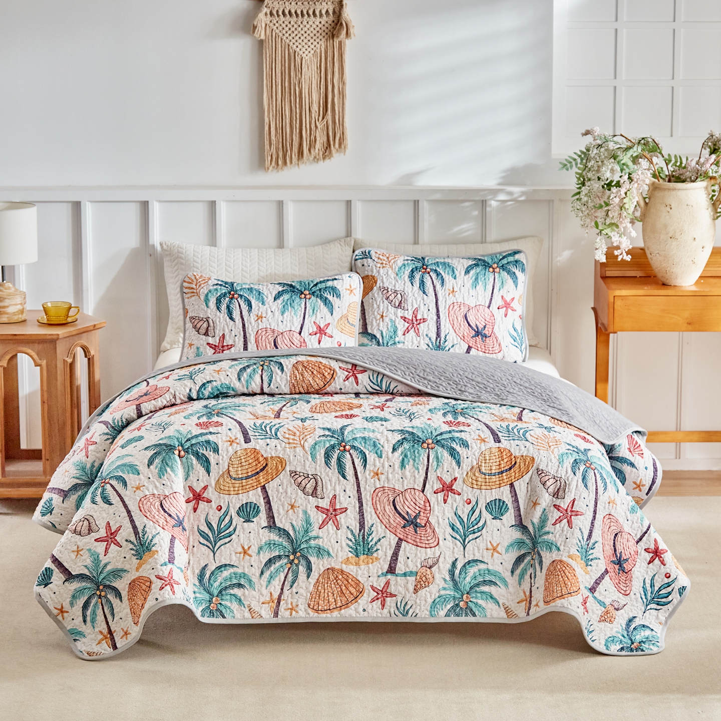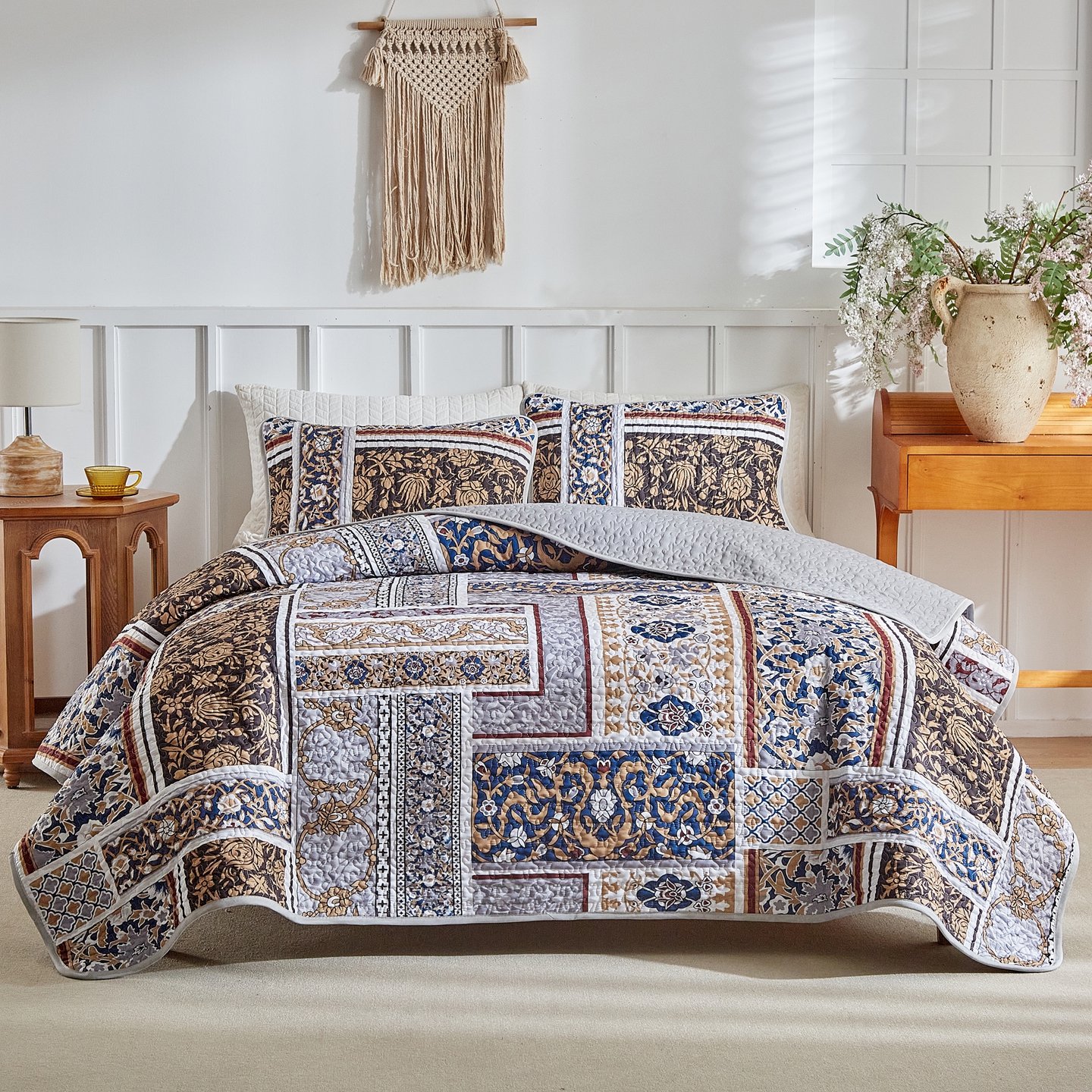 (总)温宁家纺 2025新款长方格床盖三件套 国外薄被,长方格-灰色,长方格-绿色,长方格-米色