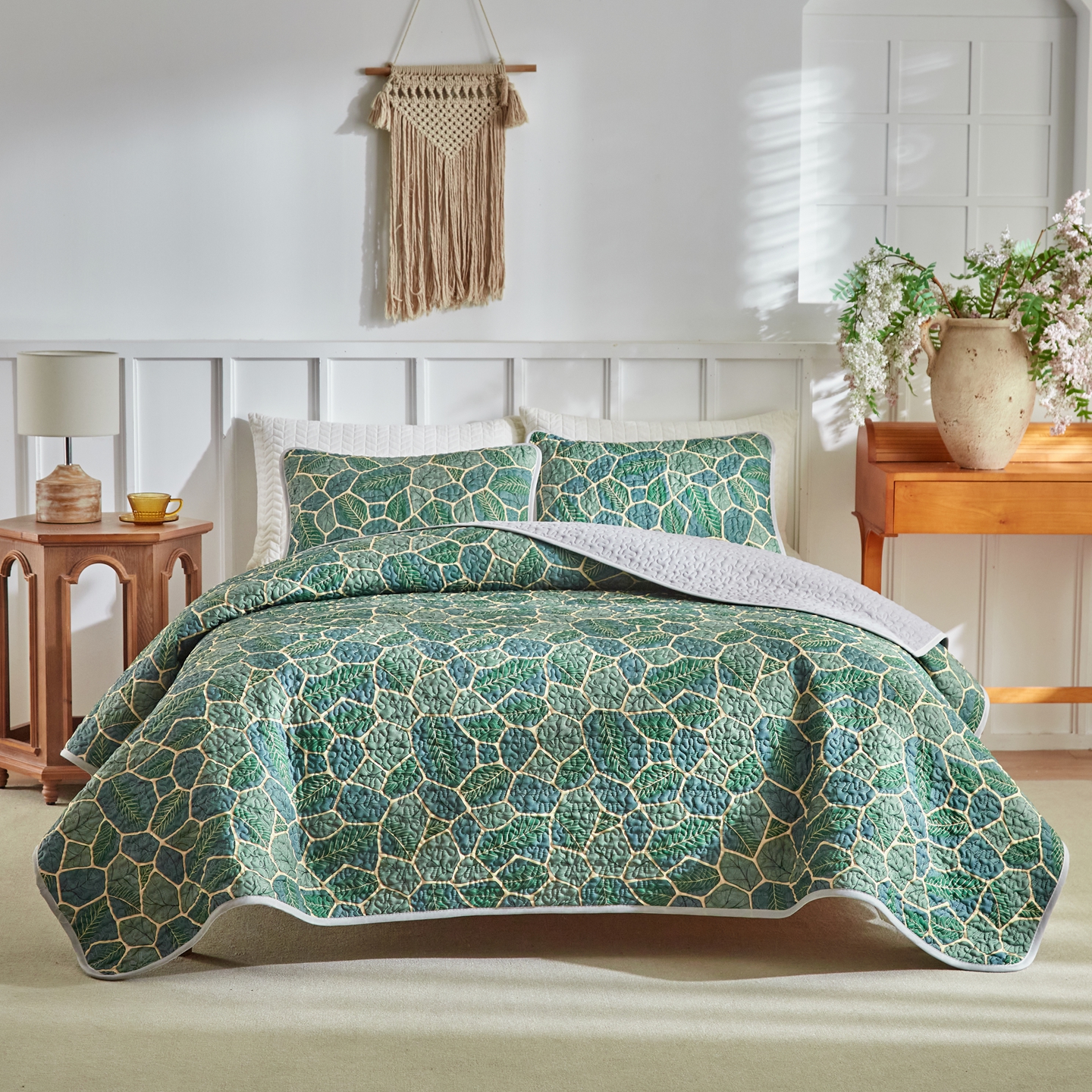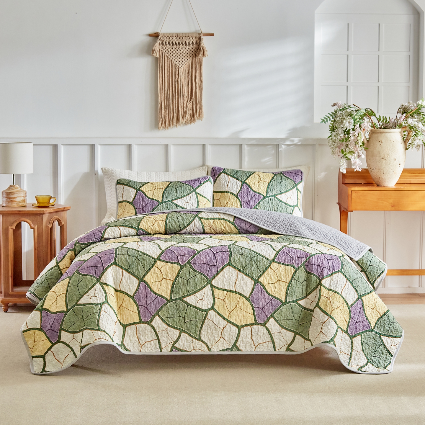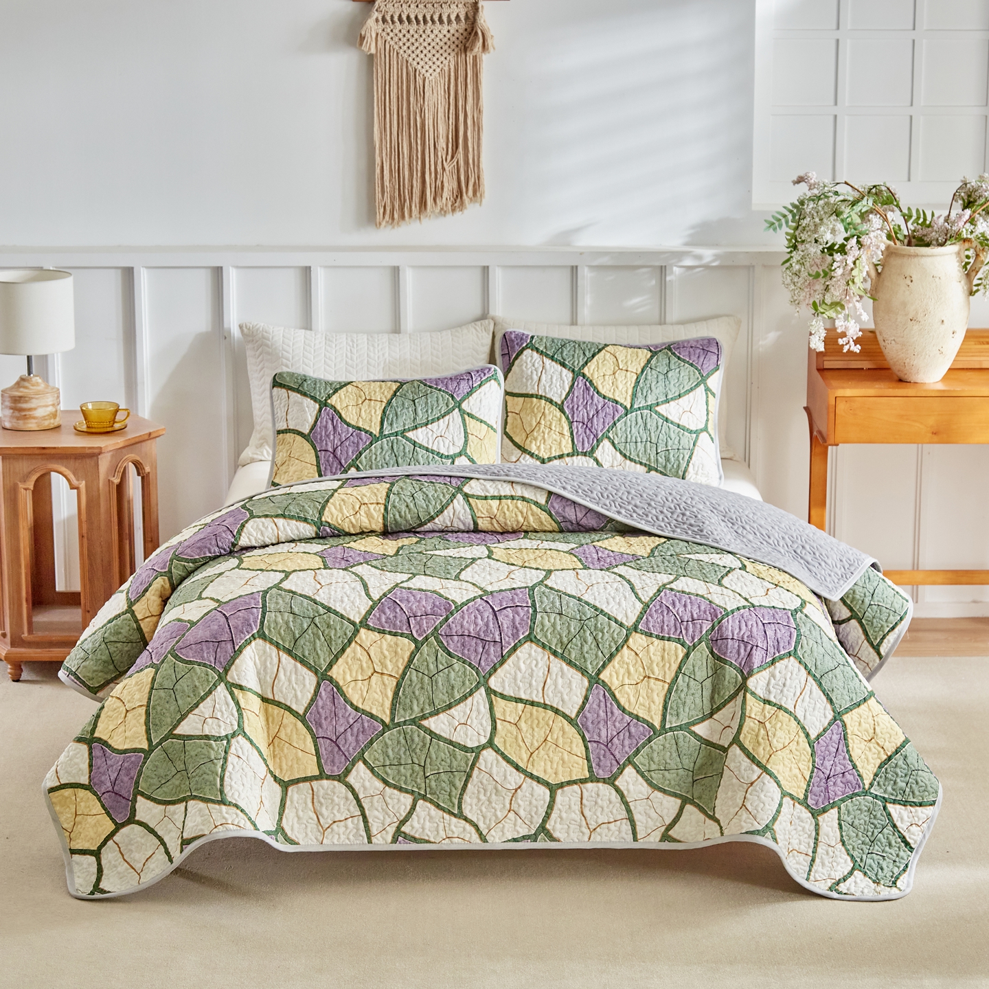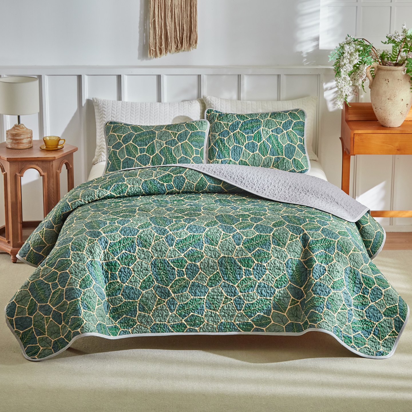 (总)温宁2025新款跨境外贸专供正方格床盖,绿色,米色,银灰