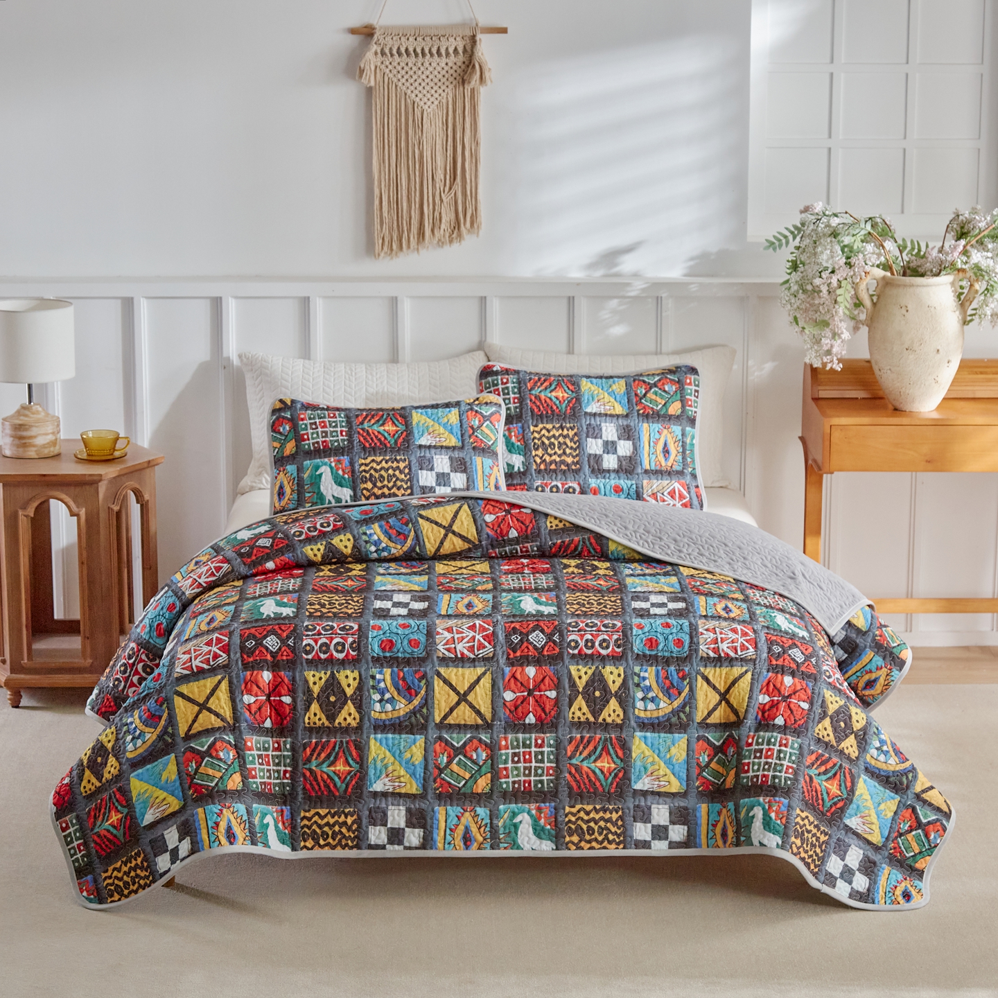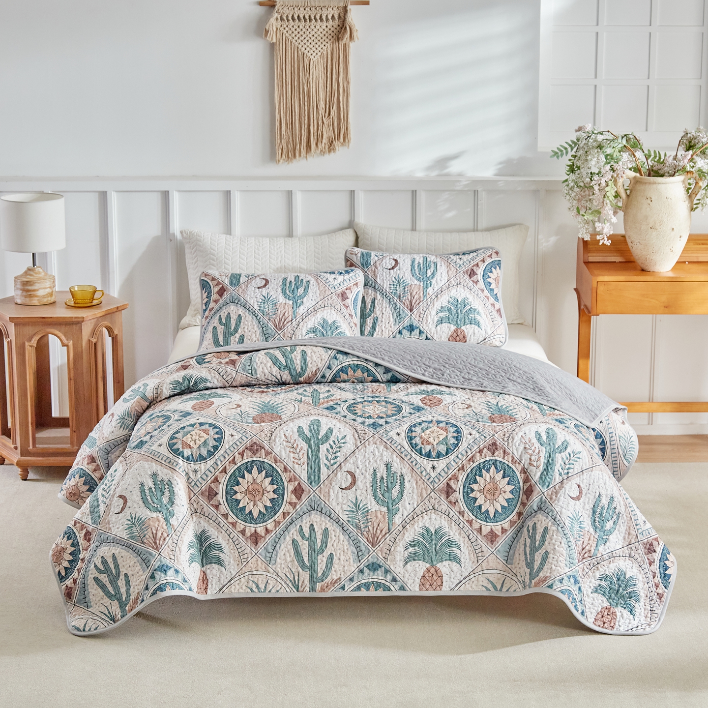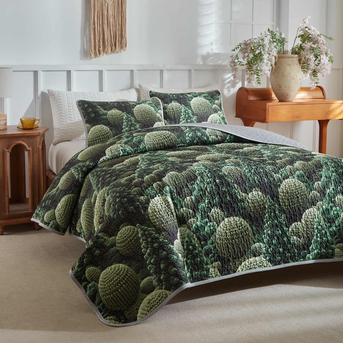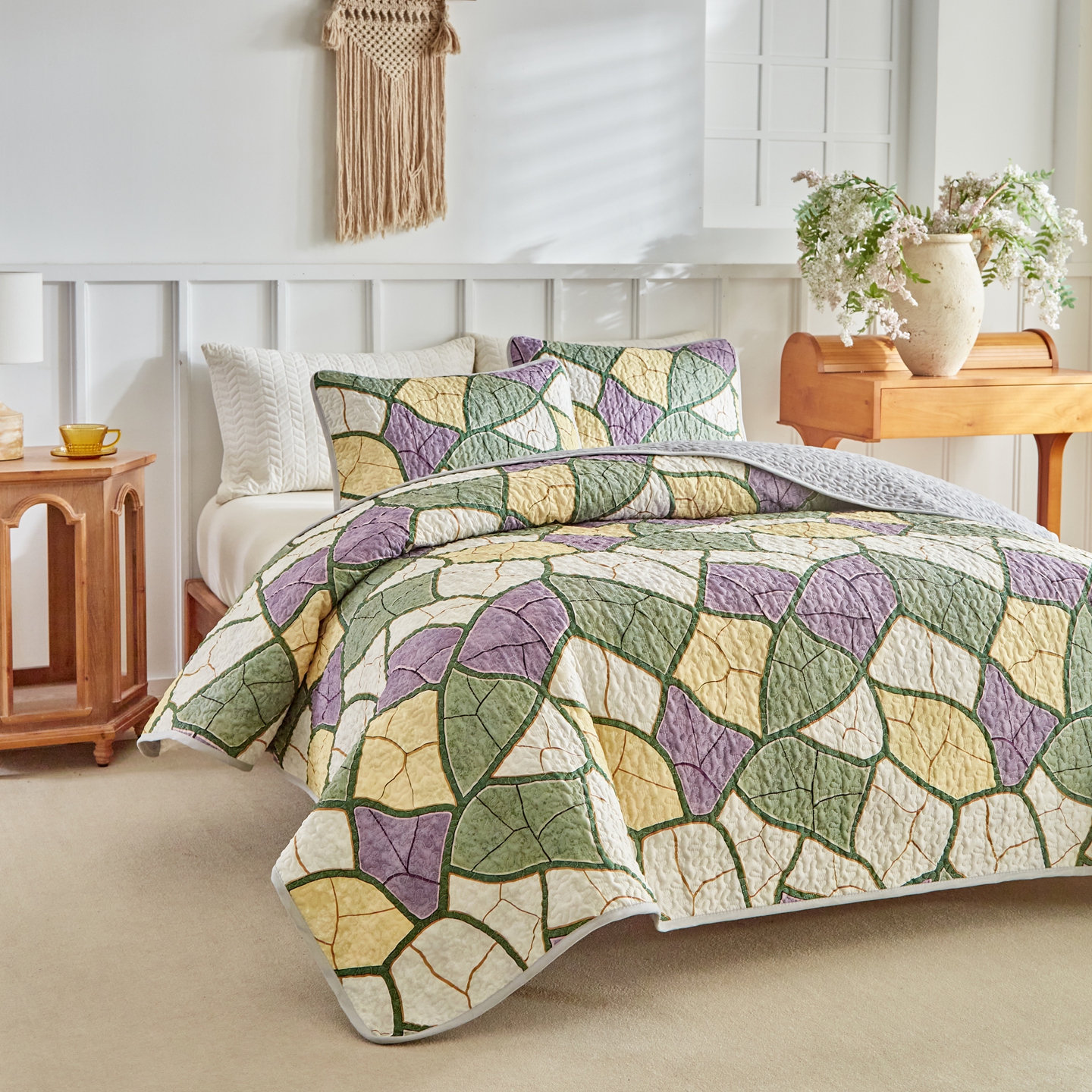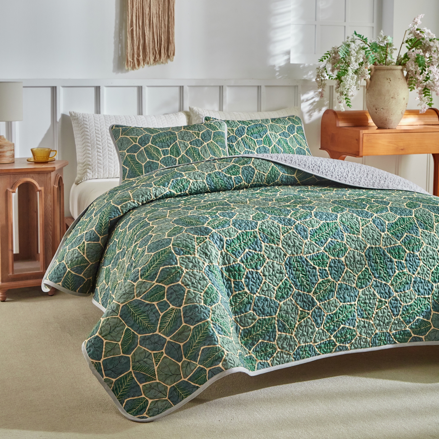 (总)温宁2025新款跨境外贸专供正方格床盖,绿色,米色,银灰