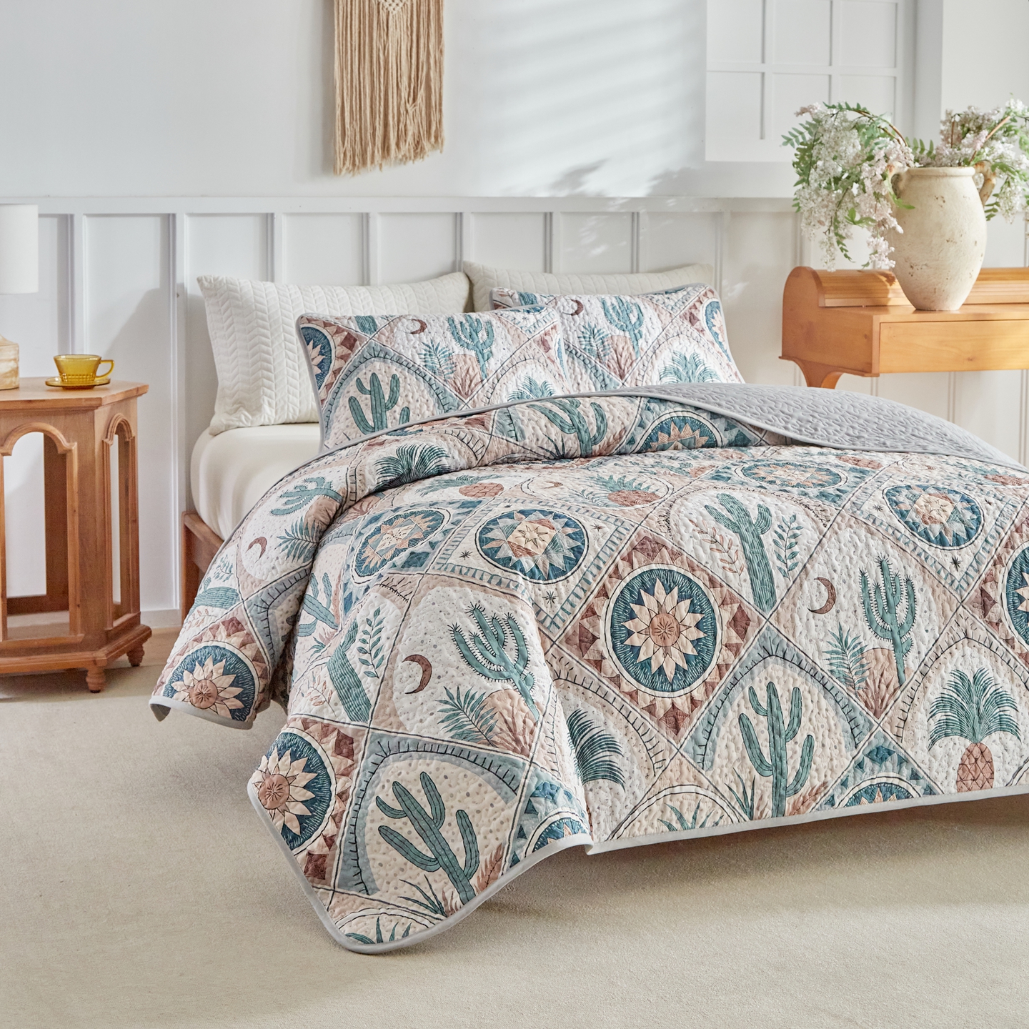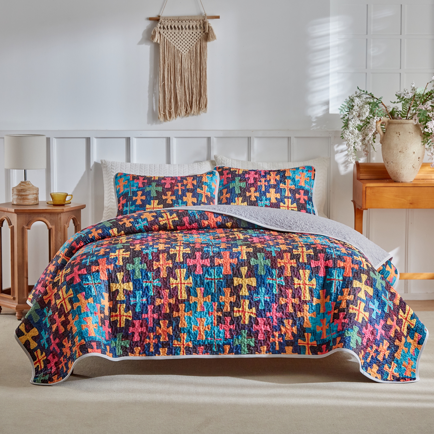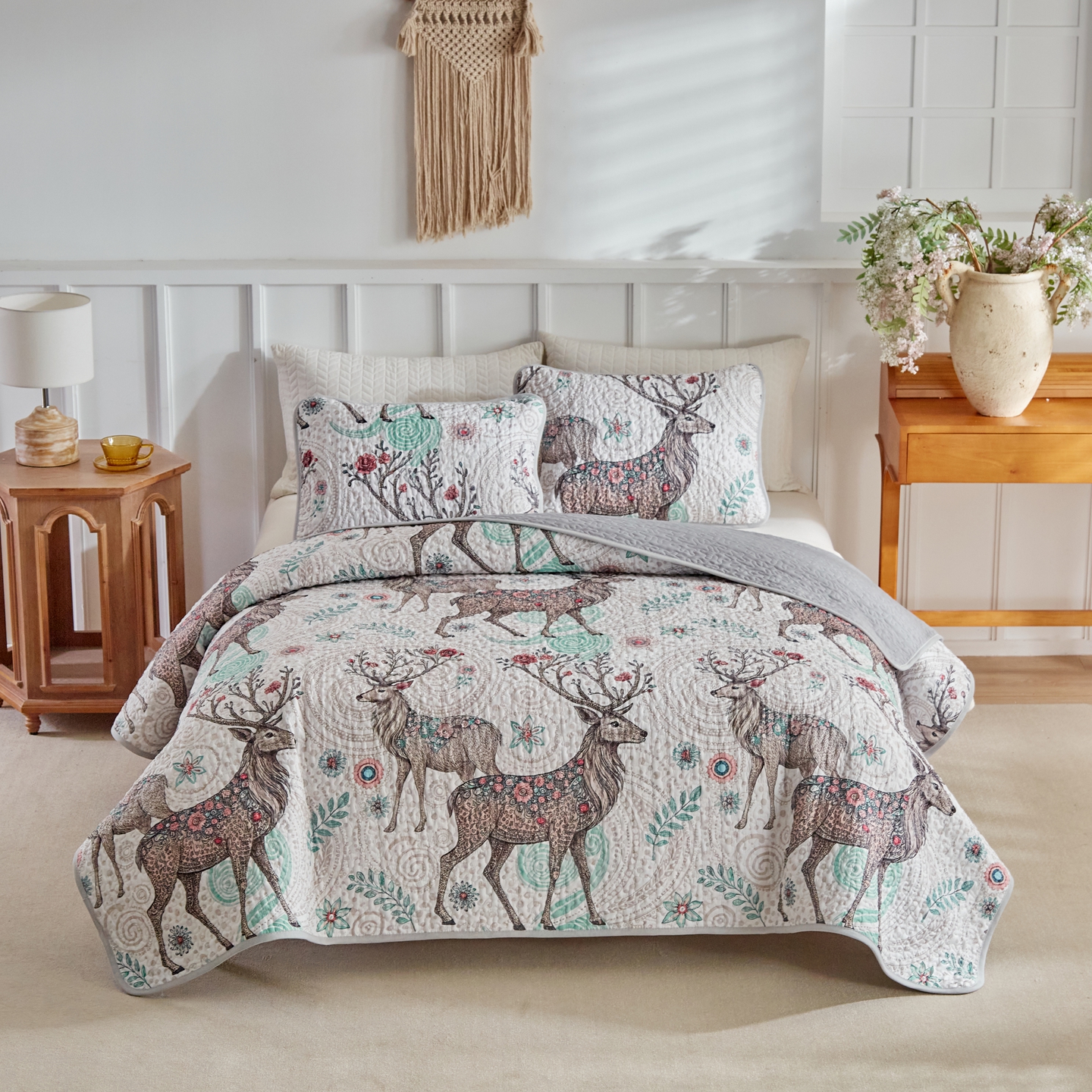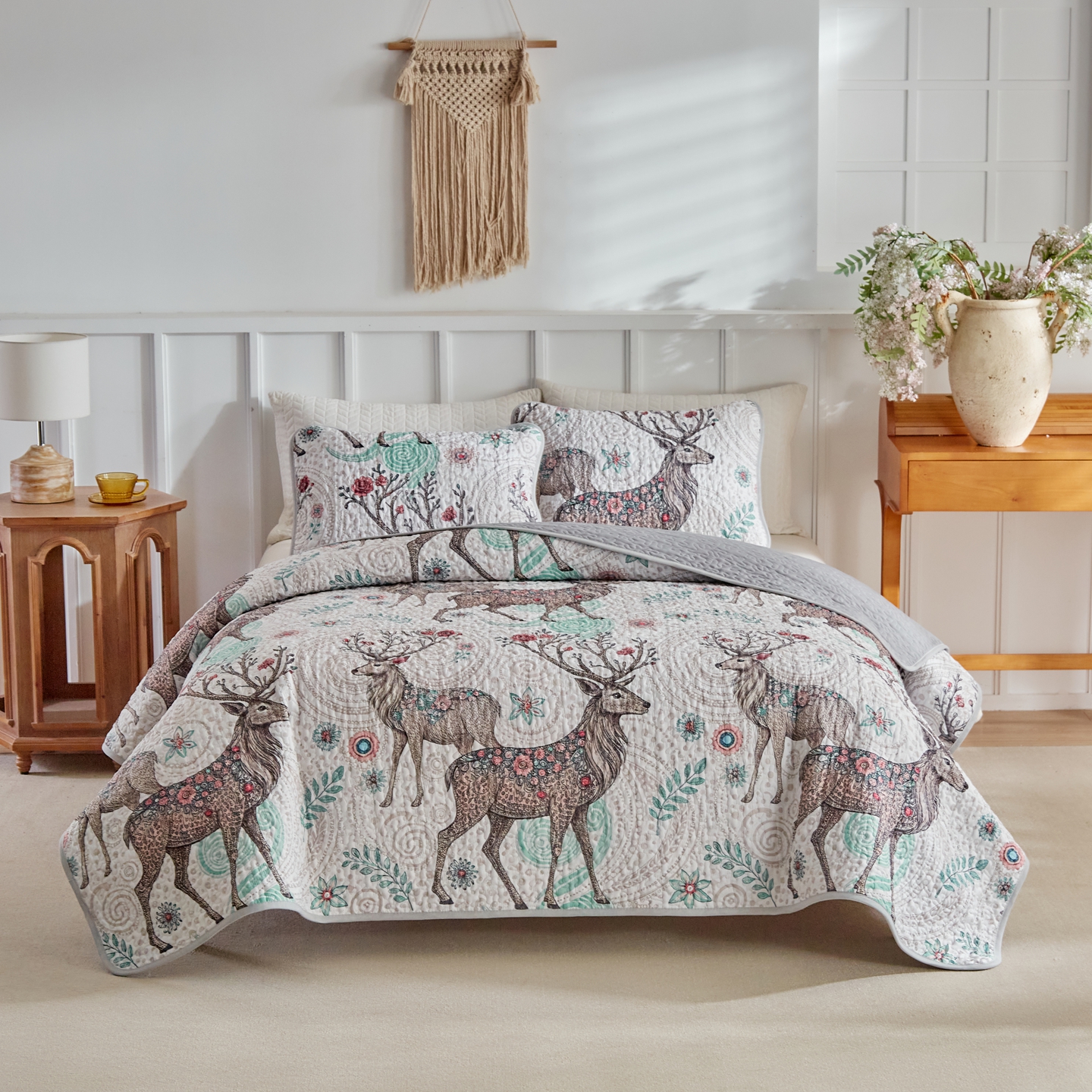 (总)温宁2025新款跨境外贸专供正方格床盖,绿色,米色,银灰