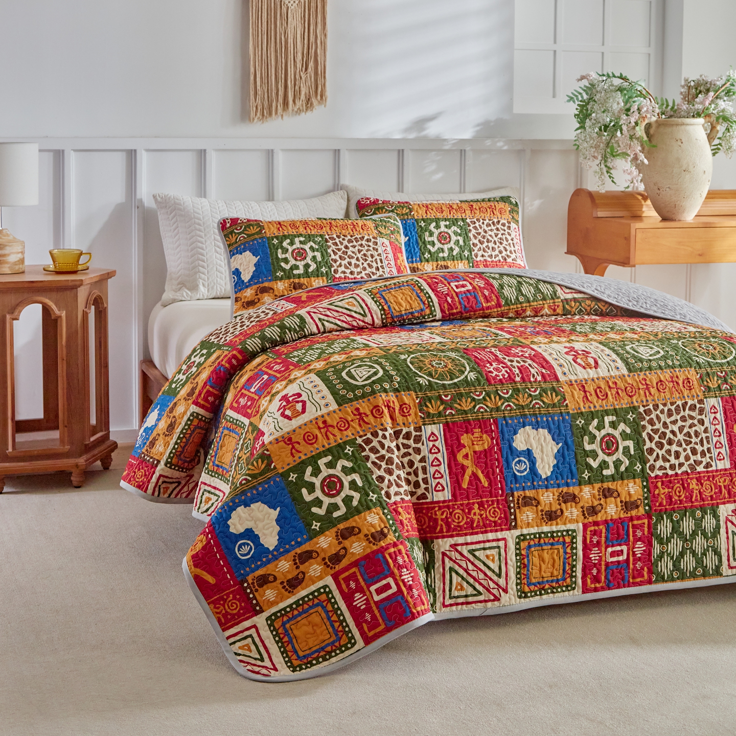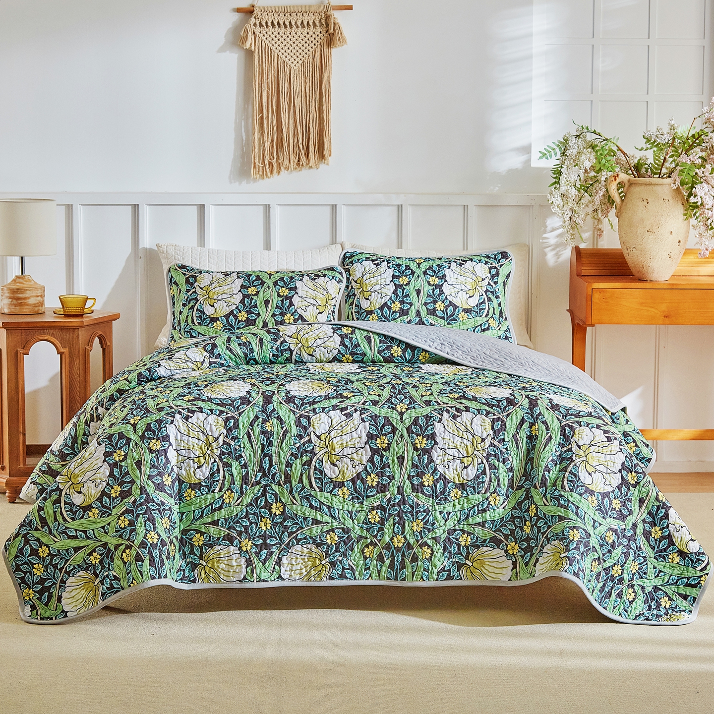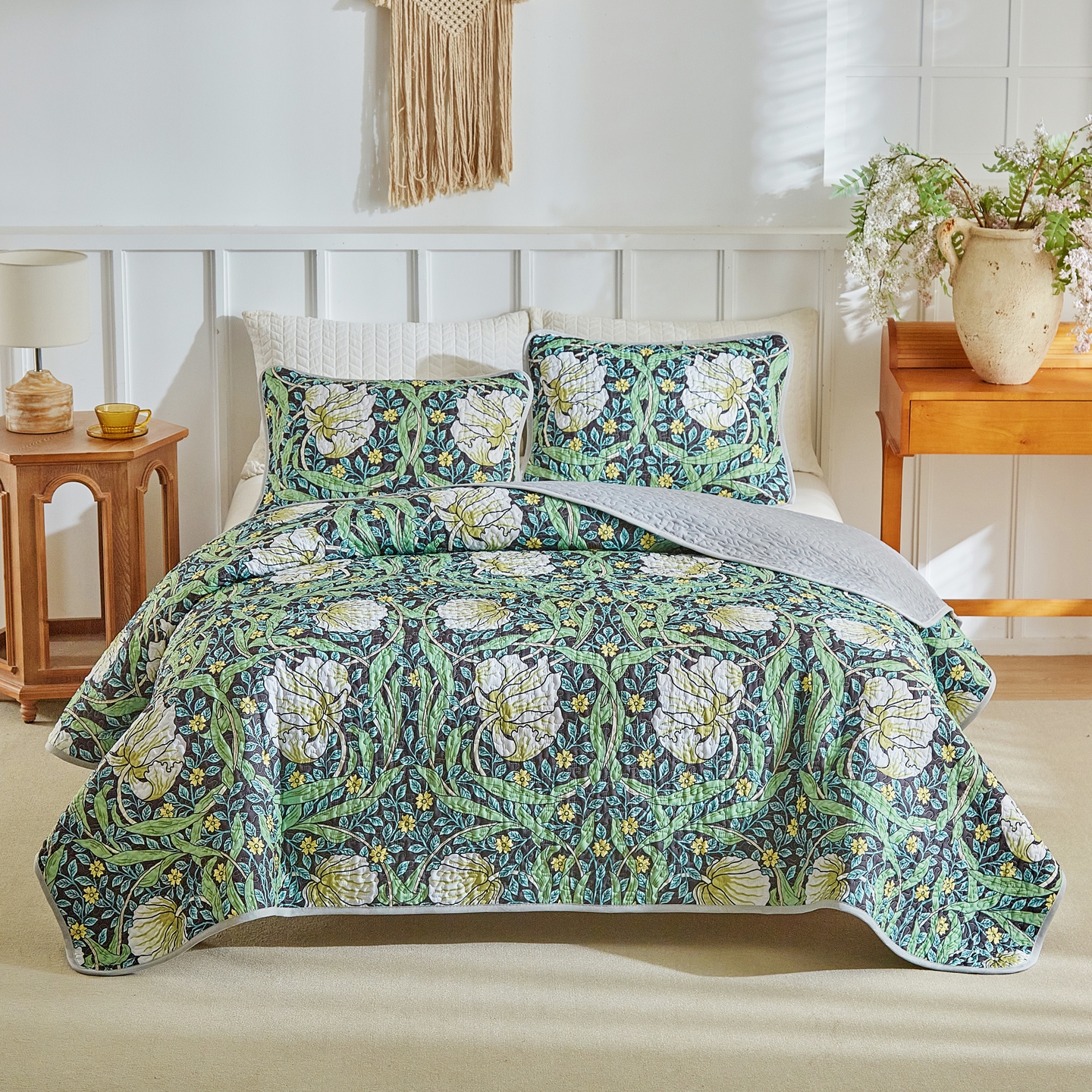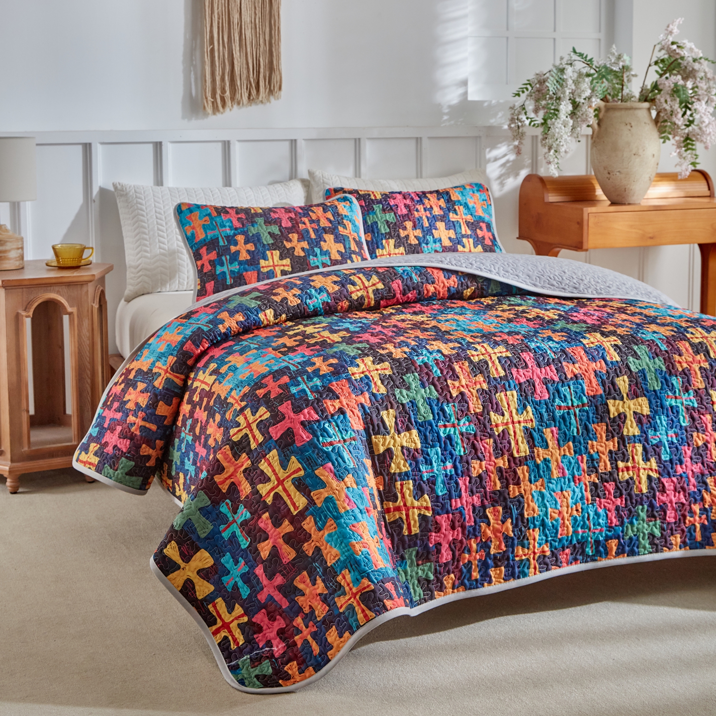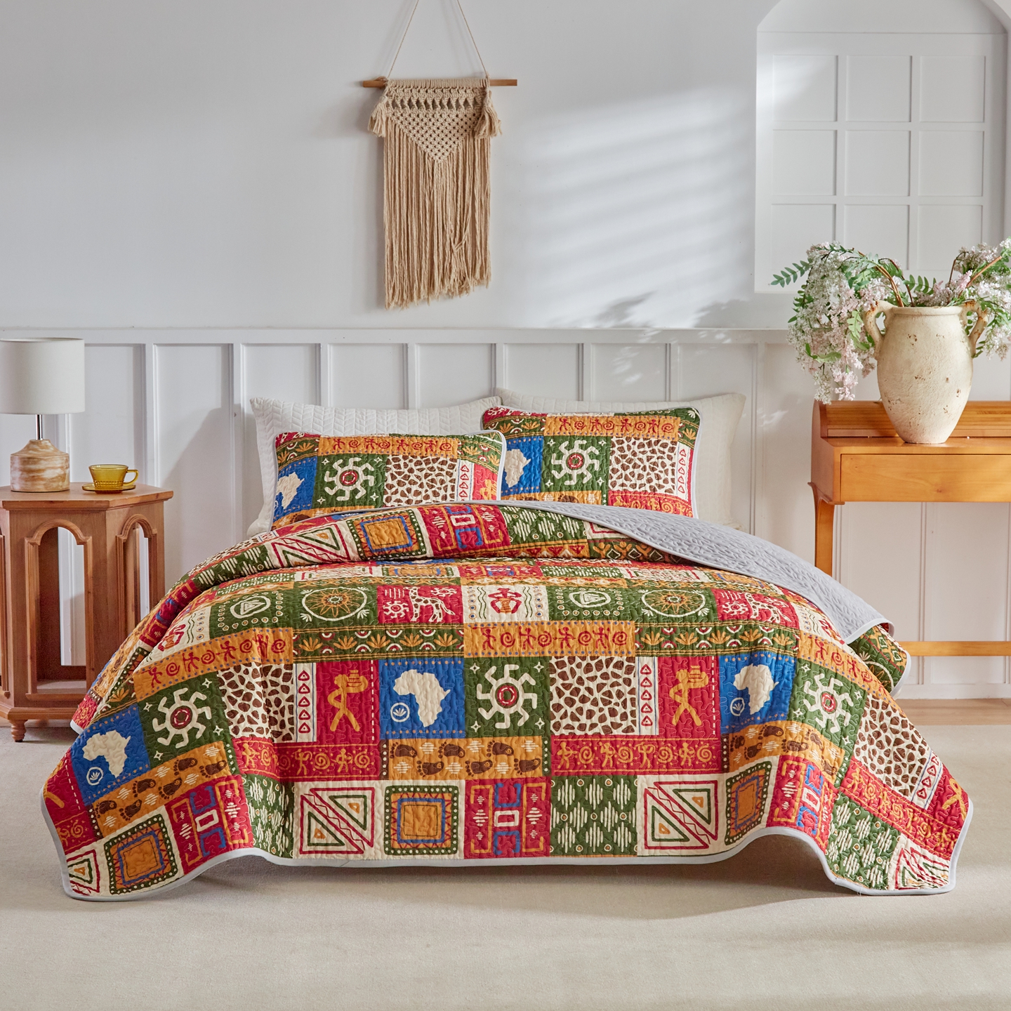 (总)温宁2025新款跨境外贸专供正方格床盖,绿色,米色,银灰